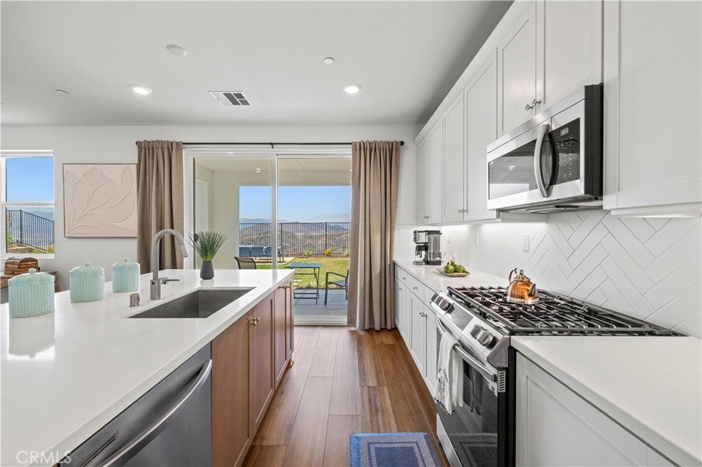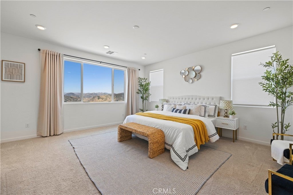 Panoramic Park & Mountain Views | Flat Backyard | Solar | Gated Williams Ranch | Covered by Both William S. Hart Union & Castaic Union School Districts Located on a premium elevated lot in gated Williams Ranch, this north-east facing 4-bedroom, 3-bathroom, 3-car garage home offers a fully flat backyard with panoramic, unobstructed views of mountains, orchards, vineyards, and the County Park below—with no rear neighbors. The home sits several stories above park level, creating exceptional privacy and openness. Designed with an open-concept modern layout, the kitchen, dining, and family areas flow seamlessly to the backyard. Two sliding glass doors open to the yard—one standard in the kitchen and a builder-upgraded second door in the family room. A full bedroom and bathroom on the main level make it ideal for guests, extended family, or a home office. The spacious backyard offers ample room for a future pool, guest casita, or RV parking. Inside, enjoy fully paid solar, AI appliances, and smart tech features throughout—all designed for comfort and efficiency. Key Highlights: Builder 3-10 structural warranty (~8 years remaining) Near I-5, shopping, and top-rated schools Dimmable recessed lighting, smart switches, moisture/rain sensors Remote hot water recirculation, soft-close cabinetry AI-enabled washer/dryer, 2 refrigerators 85” + 55” Smart TVs Pre-installed Ring video doorbell Gated community with clubhouse, pool, spa, amphitheater, winery, orchards, paseos, and parks Schedule your private showing today.