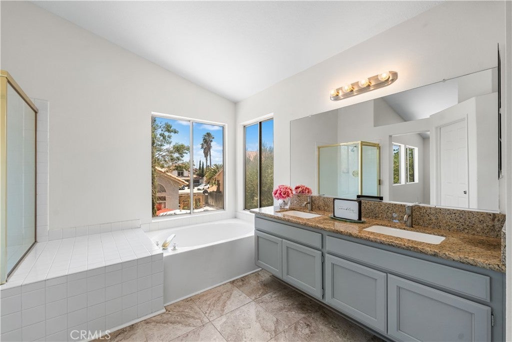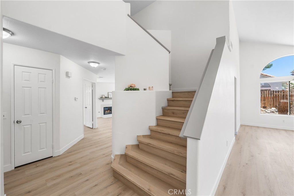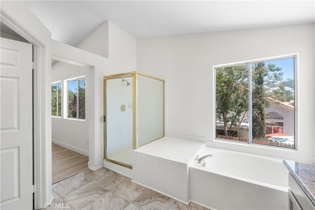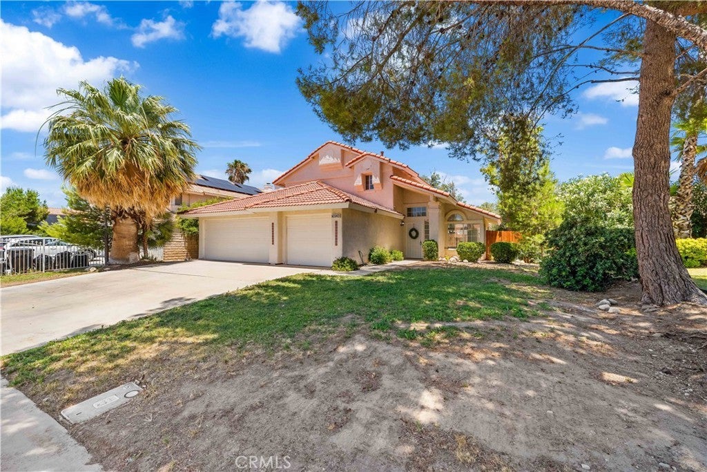 BACK ON THE MARKET! Welcome to this beautifully updated two-story home nestled in a highly convenient neighborhood just off Rancho Vista Blvd! Enjoy unbeatable access to the 14 Freeway and top local attractions including Marie Kerr Park, the Palmdale Amphitheater, Antelope Valley Mall, Cinemark theaters, Restaurant Row, and all major shopping centers. Built in 1990, this 2,112 sq ft home features soaring ceilings and an abundance of natural light throughout. With 4 bedrooms and 4 bathrooms—including a private downstairs bedroom with its own full bath—this home offers a flexible and functional floor plan ideal for multi-generational living or guests. An additional half bath is located on the main level for convenience. Step into the spacious formal living and dining rooms, perfect for entertaining. The updated kitchen boasts granite countertops, large tile flooring, refinished cabinets, stainless steel appliances, and a breakfast bar that opens to the cozy family room with a fireplace. Upstairs, you'll find two additional bedrooms with a shared main bath, along with a generously sized primary suite that features a walk-in closet, double sinks, a walk-in shower, and a separate soaker tub for relaxing. Additional highlights include new vinyl flooring throughout, fresh interior paint, spacious indoor laundry room, 3-car garage, & a private backyard with mature shade trees and patio slab—perfect for summer gatherings. This move-in ready home checks all the boxes—comfort, location, and value. Don't miss your chance to own a home in one of West Palmdale's most sought-after neighborhoods! Schedule your private showing today!