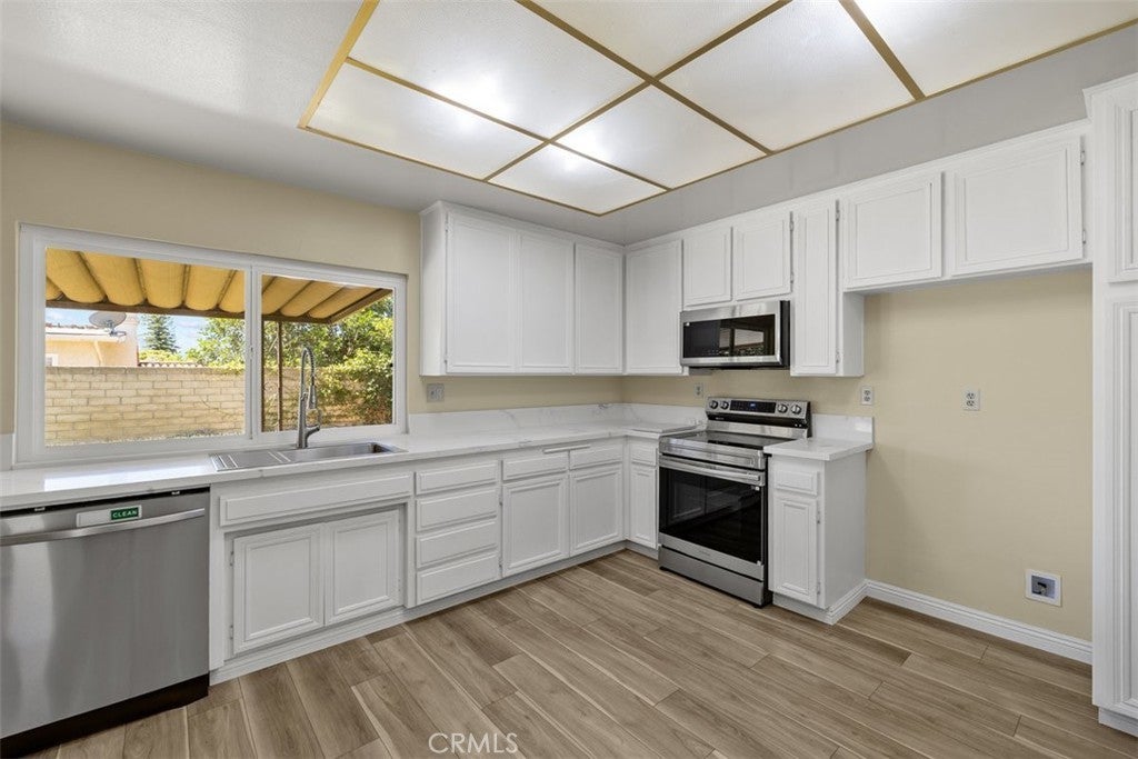 Price Reduced to Sell!! Submit all offers!! This Fountainwood home has almost everything you have dreamed of! All New Wood-Like flooring throughtout the house. This pristine 4 bedroom,2 bath home in Central Simi Valley is Perfect! A plus is almost 2100SQFT with almost 8000SQFT of flat land. Newly updated kitchen with Quartz countertops. Brand new Stainless Steel Appliances, Commercial Stainless Steel Sink, Faucets, and much more..... Two bathrooms are upgraded wih New Quartz, new Toliets,Shower Door, bathroom Cabinets. Formal Living and dining with new light fixtures. All windows have been replaced with double-pane high-efficiency hardware. All interior walls have a fresh coat of paint. A separate laundry room with a new sink next to the garage has more storage space. Spacious Quartz kitchen with white cabinets gives you natural lighting in the kitchen. A separate dining area next to the kitchen overlooking the private yard is serene. The attached two-car garage has direct access to the home. All the bedrooms are a good size for your family-updated Spanish tile roof. Enclosed patio, Space for firepit. RV access is possible. Many possibilities for backyard-Fruit trees,Swim Spa, Sport Court, use your imagination to make it your own. There is a side yard perfect for pets or vegetable gardens. North of 118FWY. Walkable to Lemon Park, Senior Center, Library,Post Office,YMCA and many more. Near Simi Hospital. Wonderfual single -story home in a sought-after neighborhood of Central Simi Valley. Must see!!!