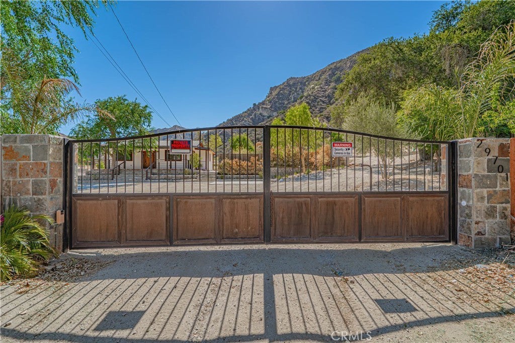 *SELLER IS WILLING TO CONSIDER OWNER FINANCING* Discover the perfect blend of seclusion and accessibility just 15 minutes from the heart of Valencia. Tucked away in the scenic hills of northern Los Angeles County, this expansive 40-acre gated estate offers rare privacy and potential, spanning two parcels in the peaceful community of Val Verde. Located at the end of Jackson Street, the property feels like a tranquil retreat while still being just minutes from the conveniences of the Santa Clarita Valley. The charming 1939-built residence features 2 bedrooms and 2 bathrooms, thoughtfully updated while maintaining its rustic character. Vaulted, beamed ceilings, brick and stone accents, recessed lighting, and rich wood details lend warmth and charm throughout. The spacious living room centers around a dramatic stone fireplace, while the open-concept kitchen boasts exposed brick, stone countertops, and upgraded fixtures—ideal for entertaining and everyday living. French doors lead to wraparound porches and a large elevated deck overlooking the canyon, perfect for soaking in the surrounding views. Outside, you’ll find multiple outbuildings, a detached garage, a concrete pad ready for future improvements, and ample flat usable land. The property is serviced by Edison electric, a private well with booster system, and propane heat. With over 40 acres of diverse terrain—including hillsides, plateaus, and buildable pads—this land holds incredible opportunity for development, expansion, or creating a secluded family compound. Enjoy the best of both worlds: rural living with easy access to Hwy 126 and I-5, just 10 minutes to Castaic and 40 minutes to Ventura or the beach. Whether you’re looking to live off the land, invest in a private retreat, or build something new, this one-of-a-kind property delivers on space, location, and endless potential