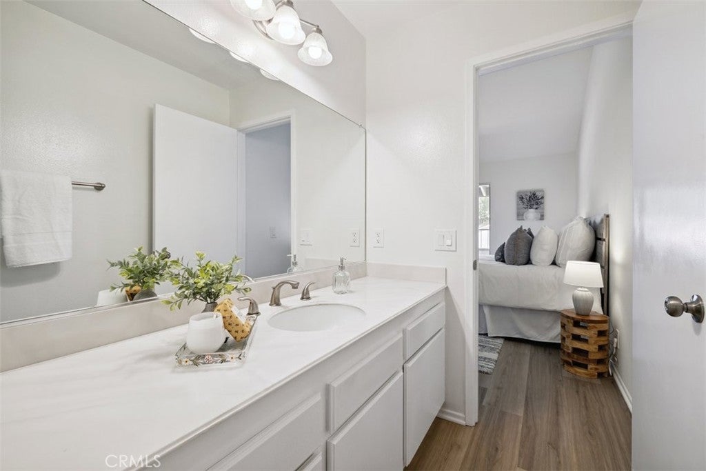 Beautifully upgraded three-bedroom townhome settled in the heart of Porter Ranch, less than a mile from premier shopping and dining! Upon entering, you will be wowed by the brand-new luxury vinyl plank flooring, all new kitchen appliances, freshly painted walls, some new fixtures, high ceilings, and the abundance of natural light. The kitchen has new quartz countertops, new cabinet pulls on all cabinetry, brand-new stainless-steel appliances, new kitchen sink and faucet, and a patio door opening to the spacious private rear patio. There is an eating area off the kitchen. The private rear patio is a perfect place to relax or dine al fresco. The light and bright main family room has high ceilings, a wet bar area, and an oversized patio door opening to the front facing balcony. The primary suite has a patio door opening to the front facing balcony and it also has an attached private bathroom with a new faucet and a walk-in shower stall. The other two rear-facing bedrooms share the hall bathroom, which has a shower/ tub combo and a new toilet. Smooth ceilings throughout. There is a two-car garage with direct access to the unit. The new electrical panel and the Washer/ gas dryer hookups are inside of the garage. This unit is located in the Park Northridge townhome community, which offers a community pool, spa and manicured common area landscaping. The desirable location places it within moments from the fabulous shopping, dining, Whole Foods, and AMC at the new Vineyards at Porter Ranch shopping center, the Porter Ranch Town Center, Limekiln Canyon Trail, freeway access, and of course top-rated schools. Ask your agent to check private remarks about $11k BUYER CLOSING CREDIT.