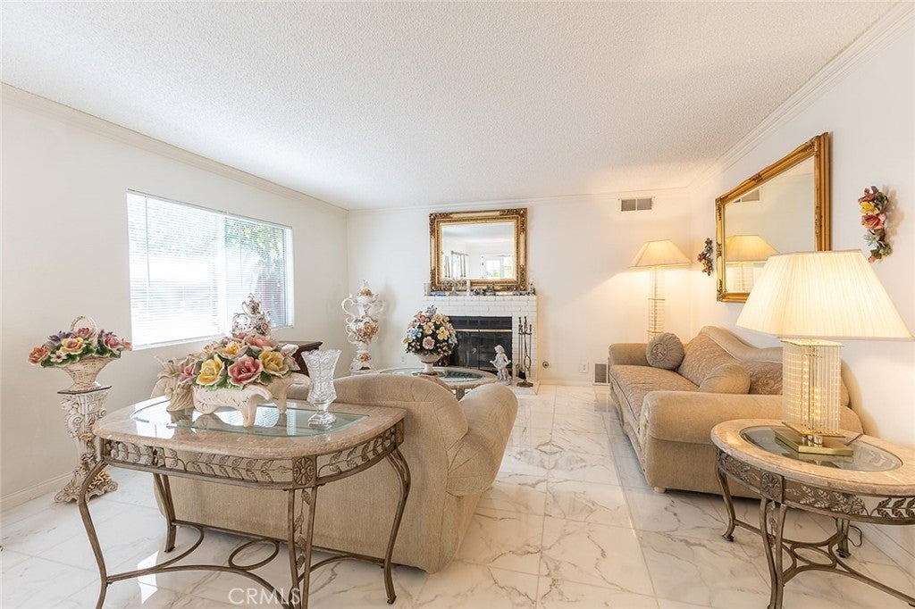 Welcome to 11465 Fox Hollow Lane, a VA Loan Approved Property—a meticulously cared for residence nestled in the desirable California Glen gated with a 24-hour guarded community. This 3-bedroom, 2.5-bath home boasts 1,926 square feet of luxurious living space, offering a refined blend of elegance, comfort, and functionality. You’ll be captivated by its curb appeal and lush trees—all set in a quiet, family-friendly cul-de-sac. Step through the front door and be greeted by sunlight-drenched interiors and Calcutta marble flooring that runs throughout the formal living and dining areas, creating a bright, airy, and opulent atmosphere.  The formal living room is adorned with designer mirrors, crown molding, and a white brick fireplace. Just beyond, the dining area showcases a custom Chandelier and two French doors that lead to your private backyard oasis. Back inside, the kitchen is warm and cheerful, featuring white cabinetry, tile countertops, and a large garden window that brings in plenty of natural light. Equipped with a stove, built-in microwave, and ample pantry storage, this kitchen is ideal for the home chef who loves to cook and entertain: a convenient breakfast bar and adjacent dining nook offer casual dining options for busy mornings or intimate evenings. The family room is designed for comfort and entertainment, featuring plush leather seating, built-in cabinetry, and a wet bar with rich, deep mahogany tones and classic, carved detailing on the front panels, showcasing artisan craftsmanship and a vintage appeal. A striking curved staircase with rich wood handrails and classic white balusters, and a grand chandelier that leads upstairs. All three bedrooms, including a master suite with its private bathroom, walk-in closet, and a charming window bench—the perfect cozy reading spot. The additional two bedrooms are light-filled and spacious, ideal for guests, children, or a home office set up.. Comfort is key here, which is why this home is equipped with central air conditioning and a Nest thermostat, ensuring year-round comfort and convenience. Additionally, it features a hidden washer and dryer closet. Wait—this isn’t just a home; it’s a lifestyle. California Glen is one of Pacoima’s hidden gems, offering residents 24-hour guard-gated security, beautifully maintained grounds, and access to a sparkling community swimming pool and spa. Located near major freeways, local parks, shopping centers, and more....