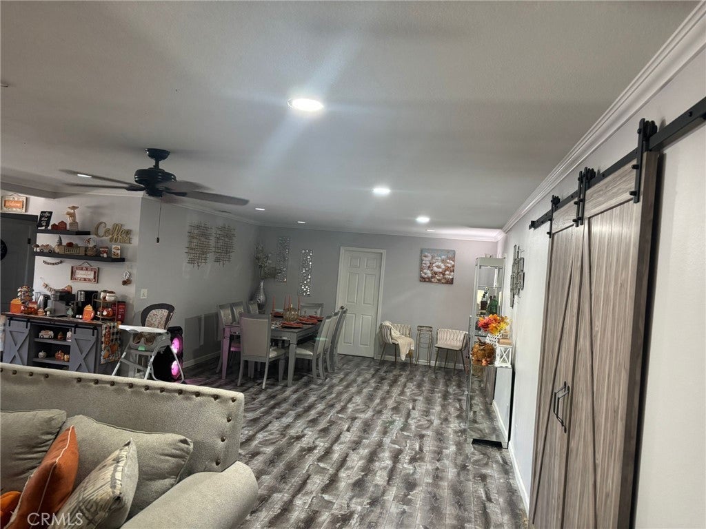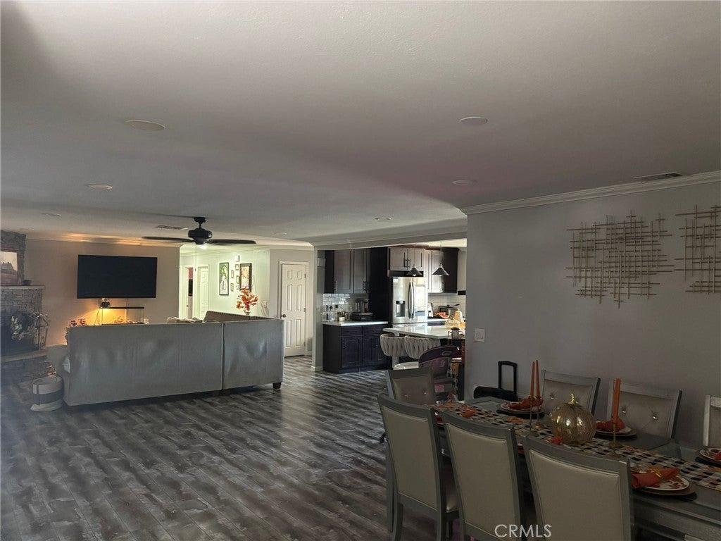Two houses in one!!! This unique home is located in the highly desirable area of Hesperia, not too far from the airport. Remodeled and approx. 3790 sq ft of living space on nearly a half acre of land, there is a lot of space to spread out! Kitchens have quartz countertops and custom cabinets and hardware and custom lighting, great ceiling fans throughout, newer air conditioning, and energy efficient windows give the house a light breezy feel. Recessed lighting accentuates the beauty of the rooms especially the bonus room which is separated by a barn door décor. Custom stacked fireplace matches the outside pillars. There is a custom suite with its own kitchen, two bedrooms living area and bathroom that has its own separate entrance for privacy. In the yard you will find a separate 450sq ft office/hobby room fully equipped with electrical and energy efficient windows as well. The four car garage and large driveway is a must see. This could be used as an older folks assisted living place or a rehab house, if properly permitted, due to the fact that there are six bedrooms and separated space for the live in care taker.