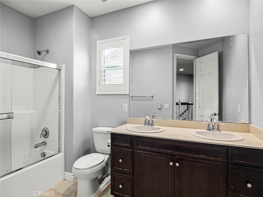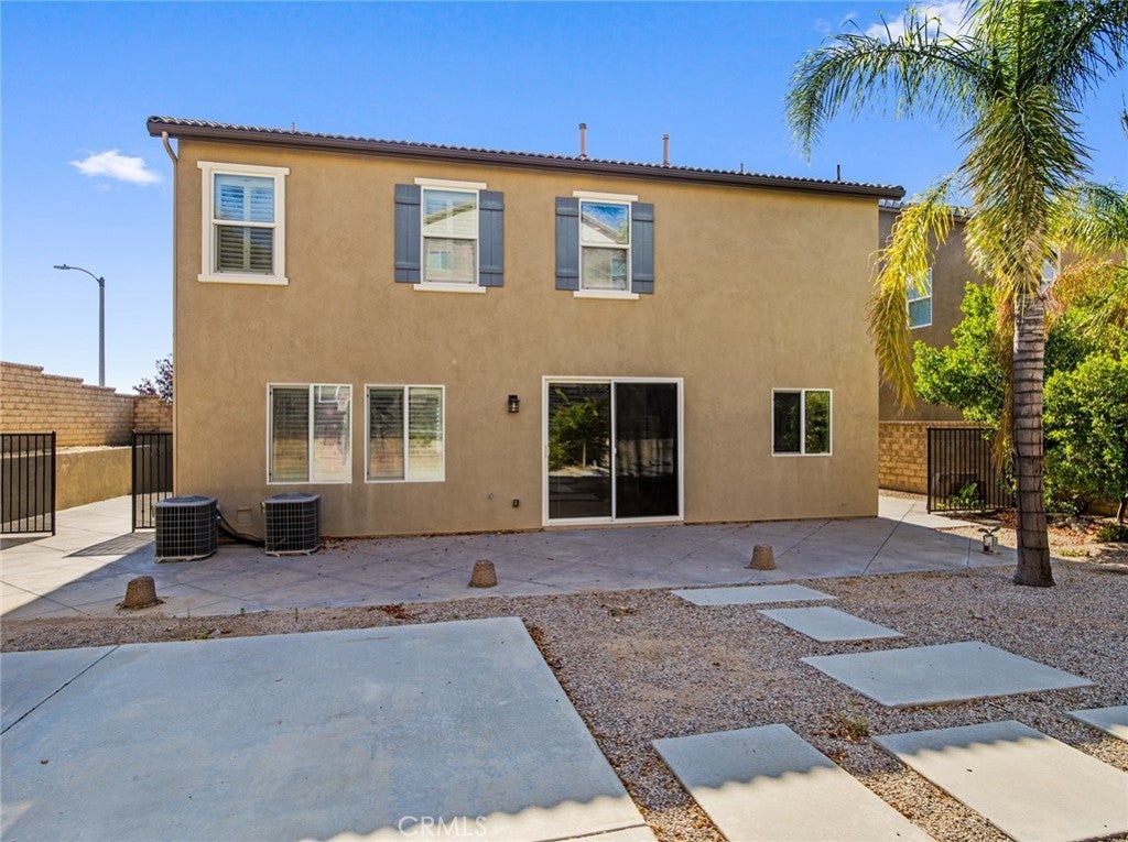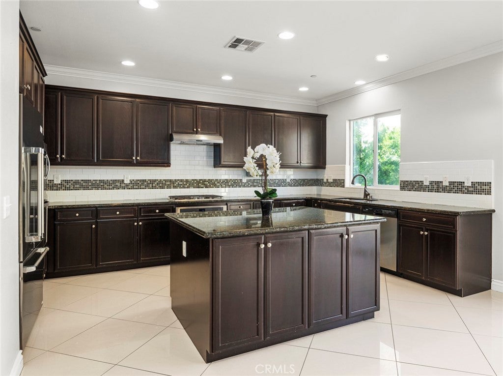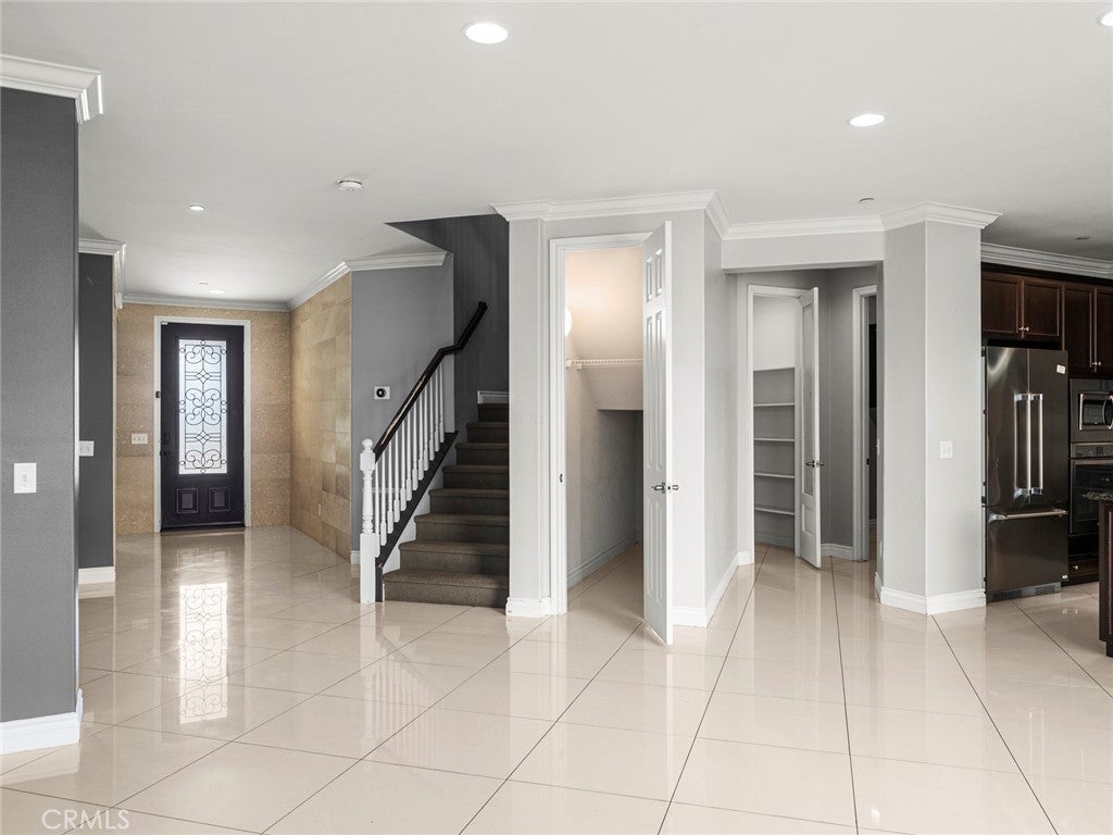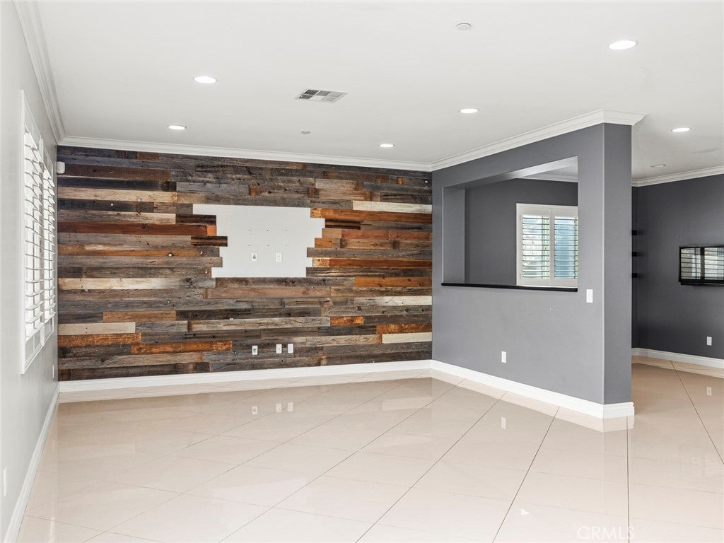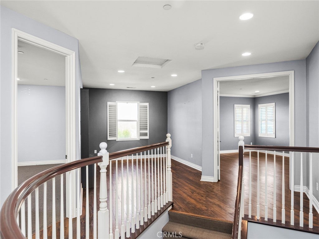 BOM! Large Spanish-style home in trendy Plum Canyon area. This two-story single family residence is situated on a large corner lot in a handsome neighborhood with views of the surrounding mountains. The sophisticated interior displays clean lines, natural colors, and details like high-gloss tile floors, recessed lighting, modern wall tiles, and crown moldings. The lower level’s open floor plan includes a large, modern kitchen with stainless steel appliances, a kitchen island, a walk-in pantry, and ample space for informal dining. The living room is open to the kitchen on one side, and a wall with a pass-through window keeps it separate, but open to the adjacent formal dining room. There is also a laundry room, a carpeted secondary bedroom, and a full bath on the main floor. Upstairs, in addition to the remaining four bedrooms, there is a large loft with wood laminate floors that may be used as a family room. The primary suite also has laminate flooring, as well as double doors, a walk-in custom closet, and a private full bath with dual sink vanities and a separate shower and soaking tub. The three secondary upstairs bedrooms feature carpeting and plantation shutters. One of these bedrooms has its own private full bath, while there is a full bath in the hallway for the other two. Out back, find a large yard with a patio, a basketball hoop, and tall palms. This home’s size, design, and excellent condition, along with its prime location near schools, shopping, and parks, make it a must-see! Solar is paid off as well.