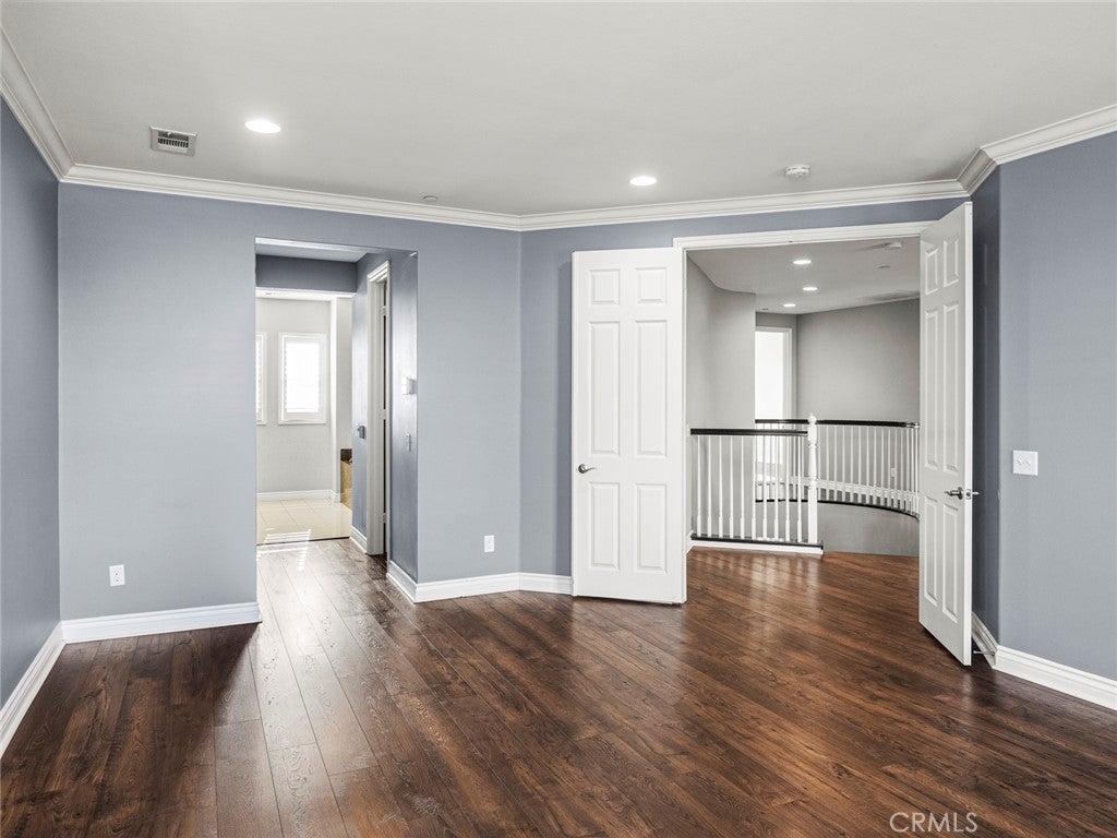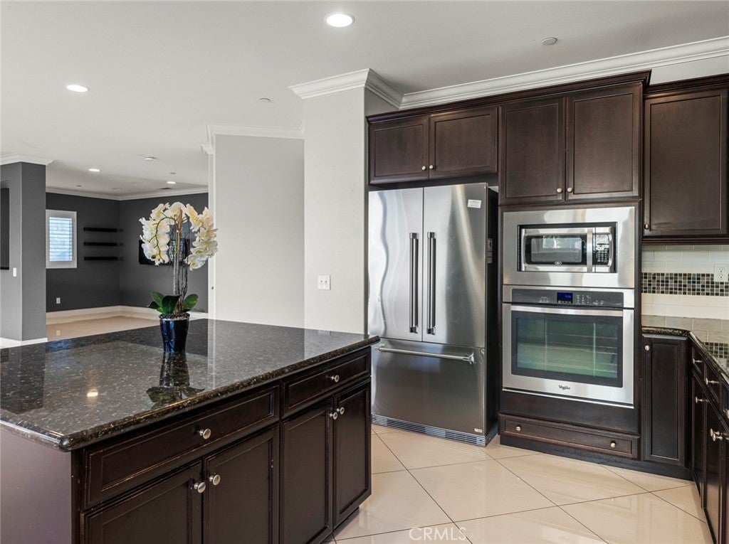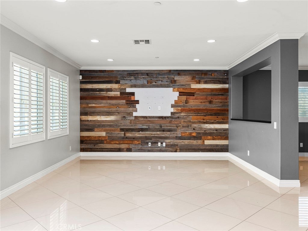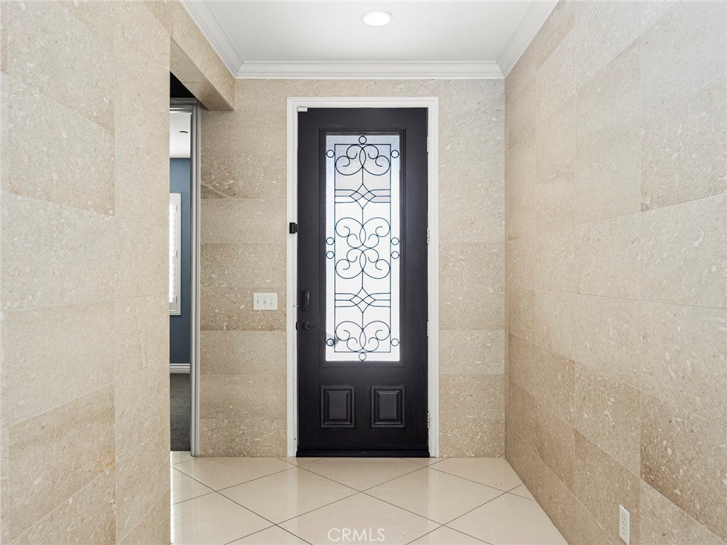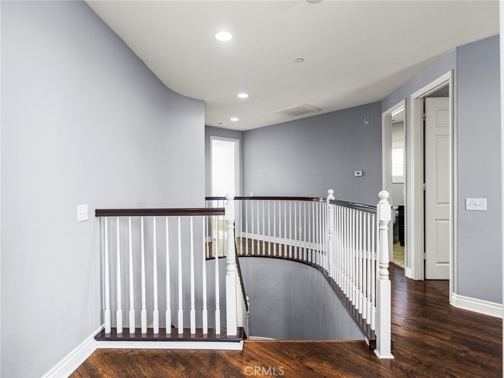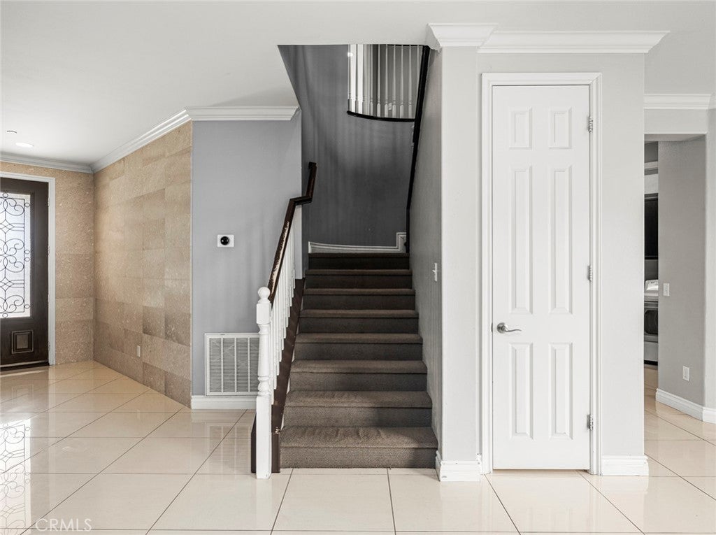 BOM! Large Spanish-style home in trendy Plum Canyon area. This two-story single family residence is situated on a large corner lot in a handsome neighborhood with views of the surrounding mountains. The sophisticated interior displays clean lines, natural colors, and details like high-gloss tile floors, recessed lighting, modern wall tiles, and crown moldings. The lower level’s open floor plan includes a large, modern kitchen with stainless steel appliances, a kitchen island, a walk-in pantry, and ample space for informal dining. The living room is open to the kitchen on one side, and a wall with a pass-through window keeps it separate, but open to the adjacent formal dining room. There is also a laundry room, a carpeted secondary bedroom, and a full bath on the main floor. Upstairs, in addition to the remaining four bedrooms, there is a large loft with wood laminate floors that may be used as a family room. The primary suite also has laminate flooring, as well as double doors, a walk-in custom closet, and a private full bath with dual sink vanities and a separate shower and soaking tub. The three secondary upstairs bedrooms feature carpeting and plantation shutters. One of these bedrooms has its own private full bath, while there is a full bath in the hallway for the other two. Out back, find a large yard with a patio, a basketball hoop, and tall palms. This home’s size, design, and excellent condition, along with its prime location near schools, shopping, and parks, make it a must-see! Solar is paid off as well.