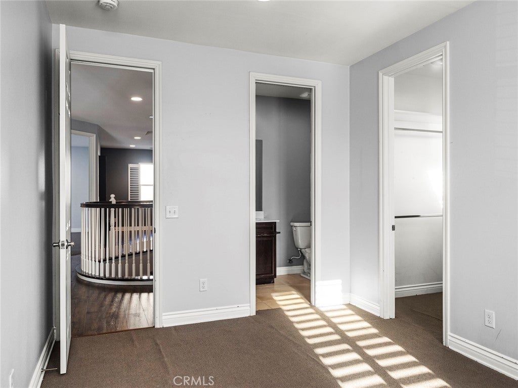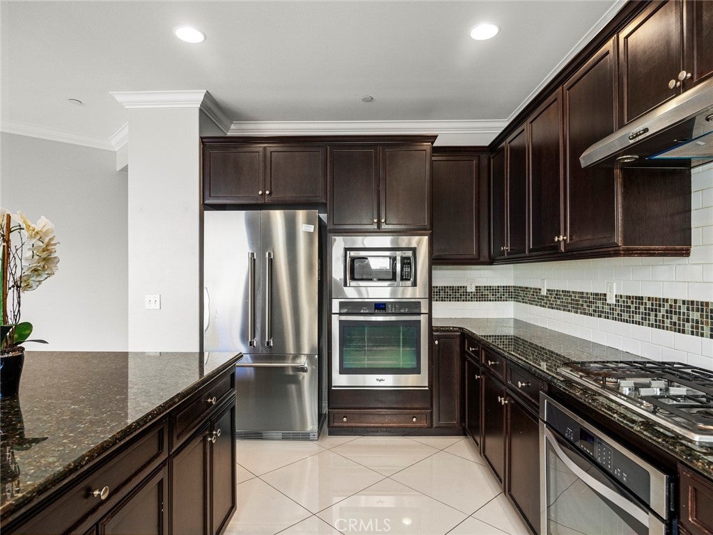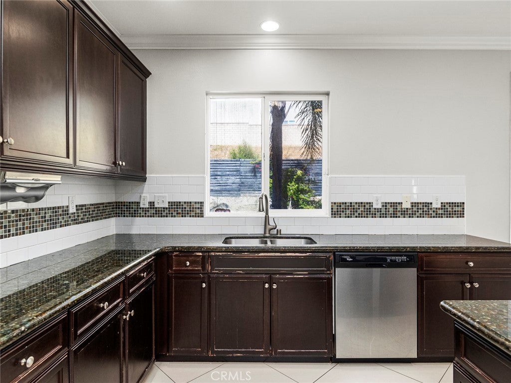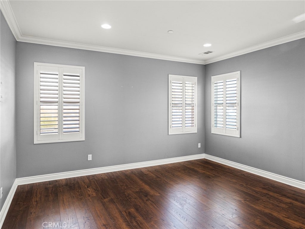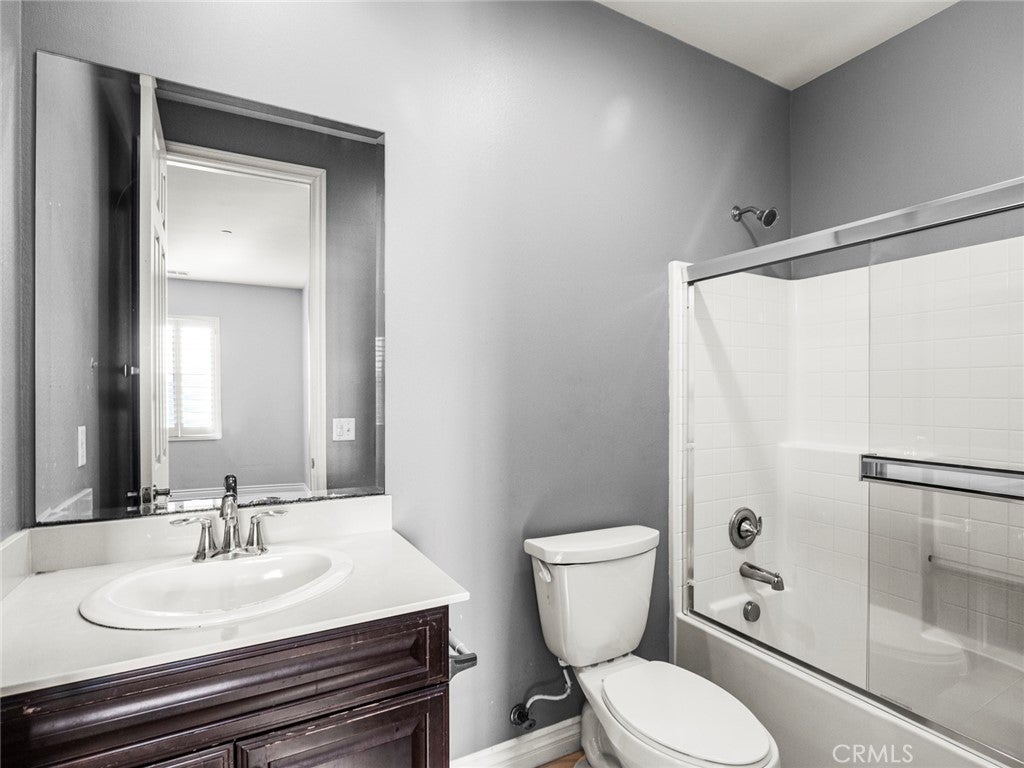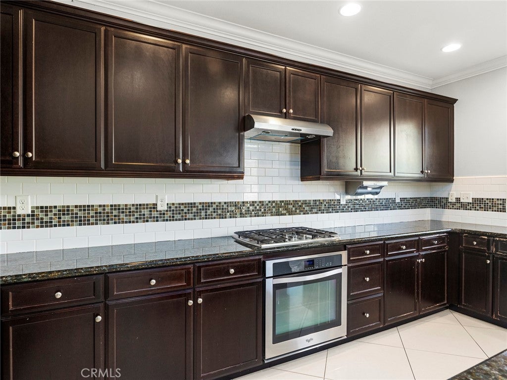 BOM! Large Spanish-style home in trendy Plum Canyon area. This two-story single family residence is situated on a large corner lot in a handsome neighborhood with views of the surrounding mountains. The sophisticated interior displays clean lines, natural colors, and details like high-gloss tile floors, recessed lighting, modern wall tiles, and crown moldings. The lower level’s open floor plan includes a large, modern kitchen with stainless steel appliances, a kitchen island, a walk-in pantry, and ample space for informal dining. The living room is open to the kitchen on one side, and a wall with a pass-through window keeps it separate, but open to the adjacent formal dining room. There is also a laundry room, a carpeted secondary bedroom, and a full bath on the main floor. Upstairs, in addition to the remaining four bedrooms, there is a large loft with wood laminate floors that may be used as a family room. The primary suite also has laminate flooring, as well as double doors, a walk-in custom closet, and a private full bath with dual sink vanities and a separate shower and soaking tub. The three secondary upstairs bedrooms feature carpeting and plantation shutters. One of these bedrooms has its own private full bath, while there is a full bath in the hallway for the other two. Out back, find a large yard with a patio, a basketball hoop, and tall palms. This home’s size, design, and excellent condition, along with its prime location near schools, shopping, and parks, make it a must-see! Solar is paid off as well.