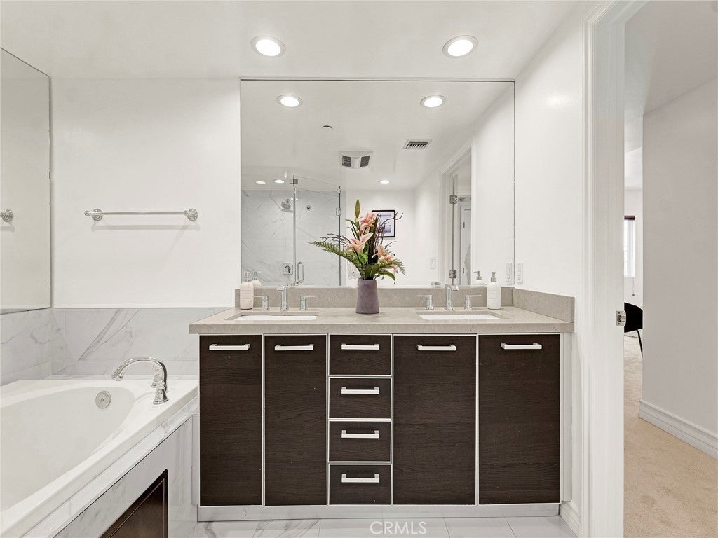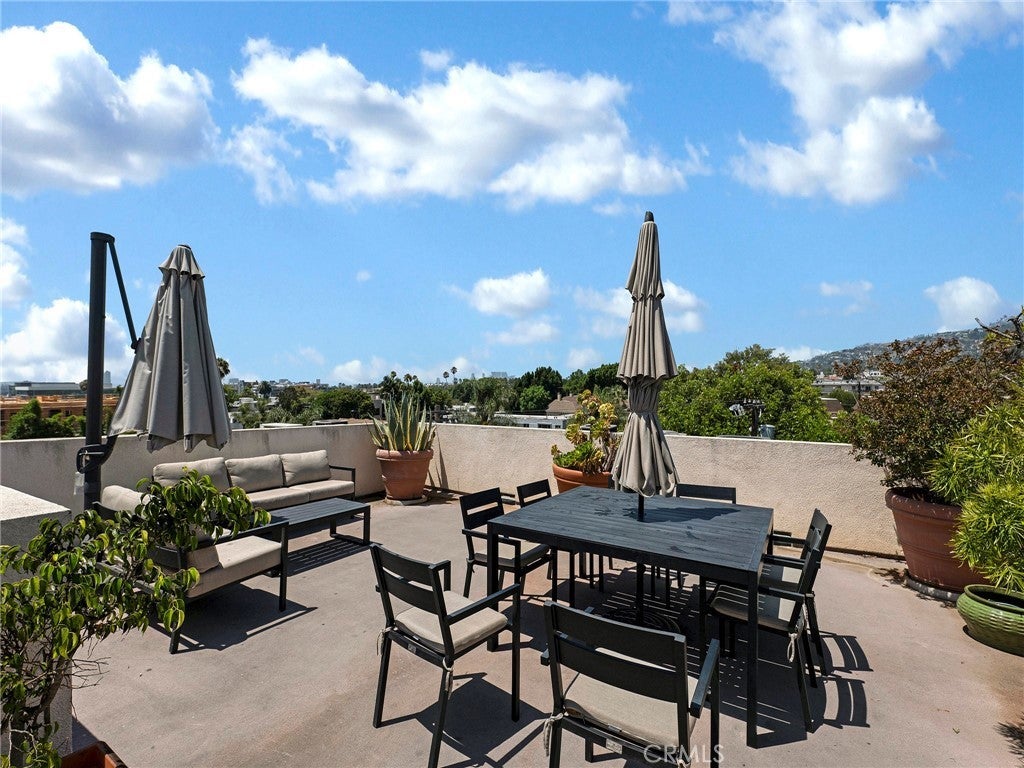 Live at the center of it all in Hollywood. Just moments from Plummer Park, Runyon Canyon, and the energy of West Hollywood, this stylish 3-bedroom, 3-bath condo offers the perfect blend of comfort and location. Inside, an open-concept layout welcomes you with hardwood floors, new carpet in the bedrooms, recessed lighting, and a private north-facing balcony—ideal for relaxing or entertaining. The updated kitchen features stone countertops, stainless steel appliances, and modern European cabinetry, along with a chic breakfast bar for casual dining. The sun-filled primary suite faces west and includes a spacious walk-in closet and a spa-like ensuite with an oversized shower, soaking tub, and dual vanity. Enjoy sweeping views of the city and Hollywood Hills from the expansive rooftop deck. The building offers secure entry, underground tandem parking for two, and private storage. With quick access to grocery stores, hiking trails, parks, and the 101, and just minutes from Sunset Blvd’s top restaurants, shops, and nightlife—this is true L.A. living. Hollywood is the place to be.