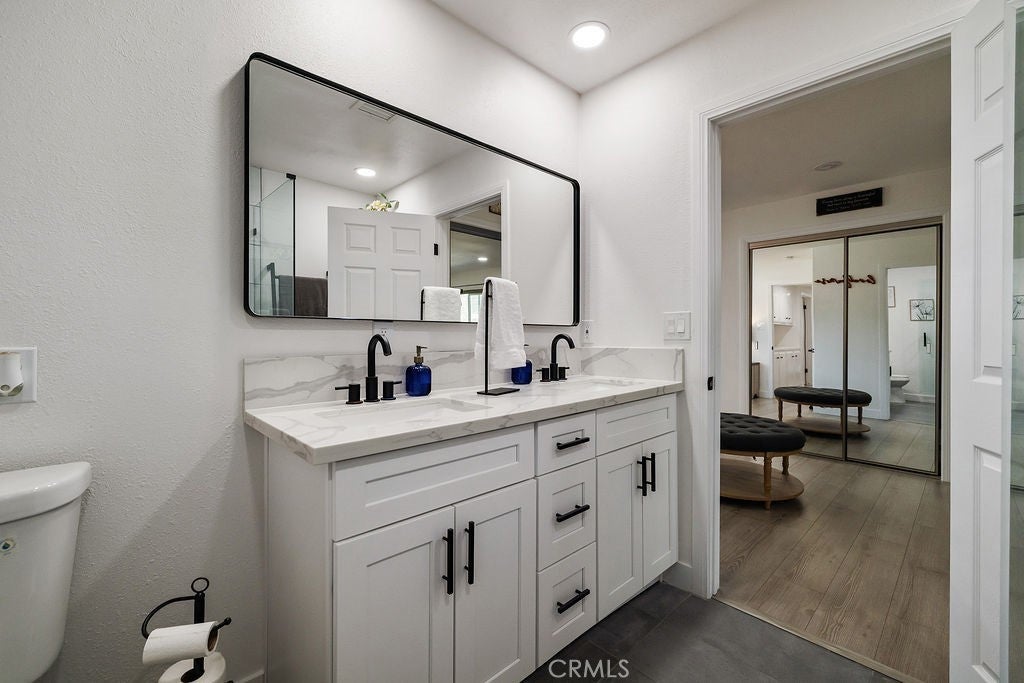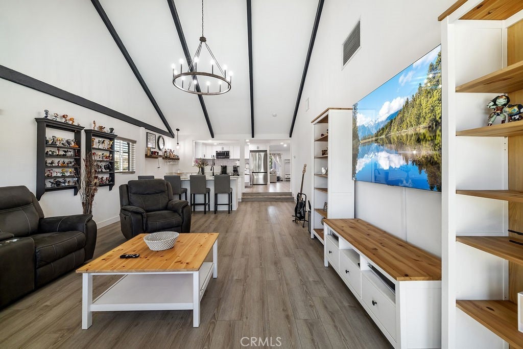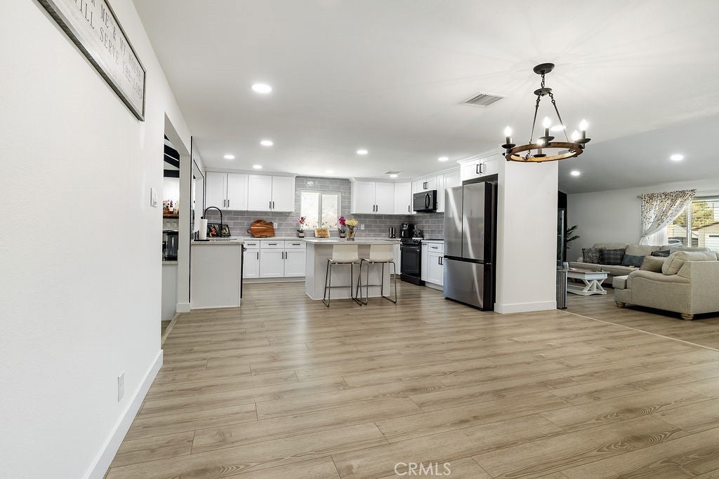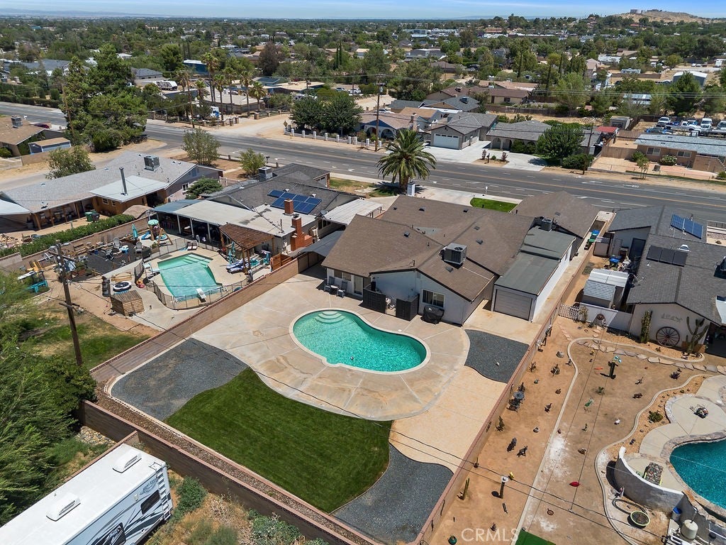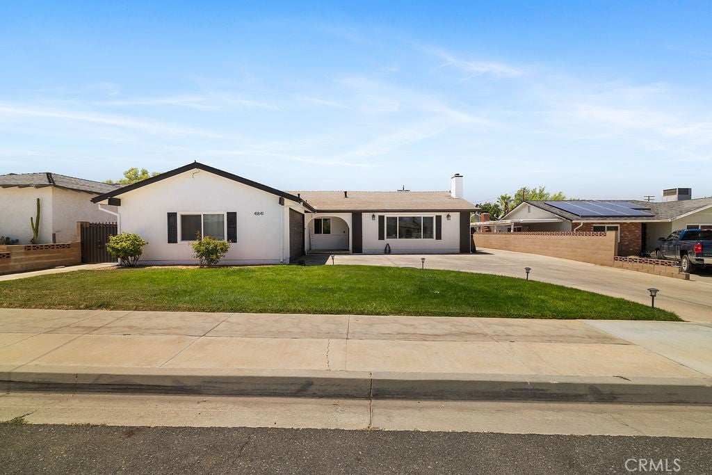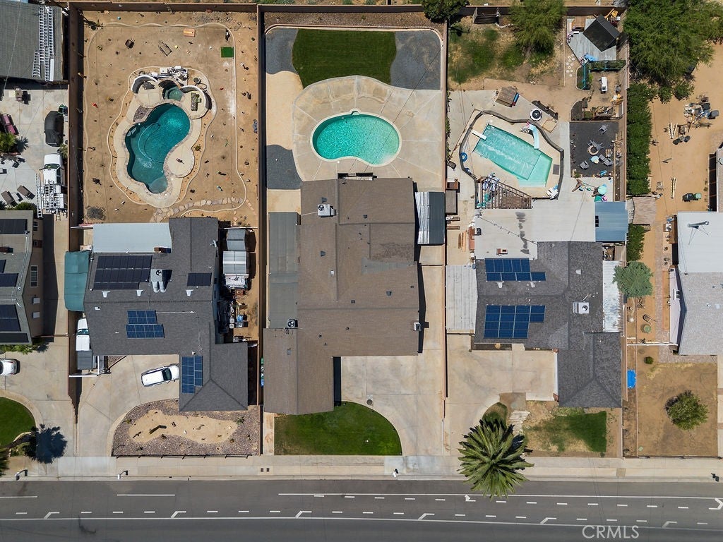 Price Reduced! Gorgeous, newly remodeled 5 room, 2 bath, single story, pool house. Farmhouse inspired. Amazing 2,430 sq foot living space that welcomes you with an open-concept floor plan. The entire house flows effortlessly. Formal living room with fireplace. Modern kitchen featuring quartz counter tops, a chic tile backsplash, a center island and stainless-steel appliances. Microwave, dishwasher, refrigerator and stove are included with the sale! A second island is found in the wet bar that is connected to the second living room creating the perfect setting for entertaining! Sit down and enjoy a glass of wine or a cup of coffee watching the sunset or the sparkling pool. Everything in this sleek home is 2 yrs old, floors, fans, chandeliers, doors, windows, blinds, garage door, pool equipment and heater, you name it! Independent laundry room equipped with cabinets and a utility sink. Electric washer & dryer also included. A custom-built shower glass door was made for the master bedroom along with dual sink quartz counter tops. Property includes a back shed/storage room, RV access, covered parking and exterior lighting throughout. Welcome to your new home!