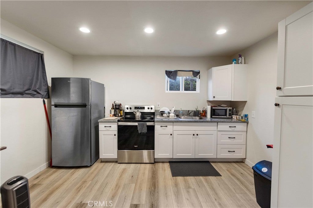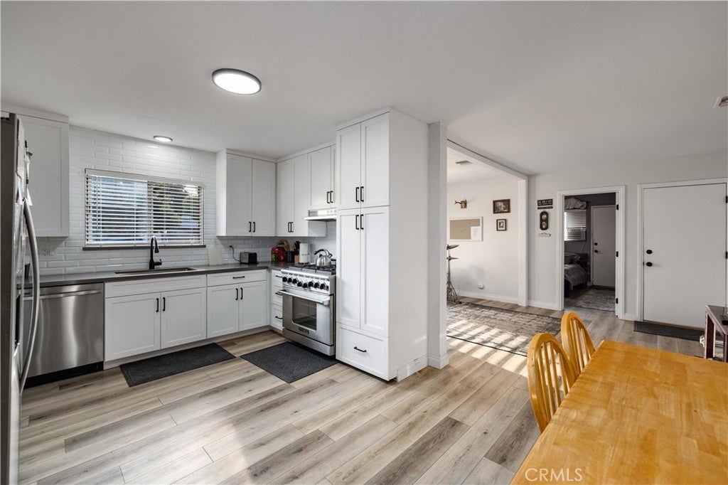 Gorgeous home with an ADU in Northridge. This home features beautiful curb appeal with a spacious corner lot. Inside you will find an open floor plan perfect for entertaining. The living room offers plenty of space with connection to the kitchen & dining room. The kitchen has been updated with beautiful white cabinets, stainless steel appliances, classic white subway tile backsplash & beautiful countertops. There are 3 bedrooms and 2 bathrooms in the main house. Outside you will find a patio, mature landscaping and a shed for extra storage. The ADU has its own entrance with a living room, kitchenette, bedroom and bathroom. In addition, this home has a new roof, flooring, exterior paint and a new water heater. This home is a MUST see!