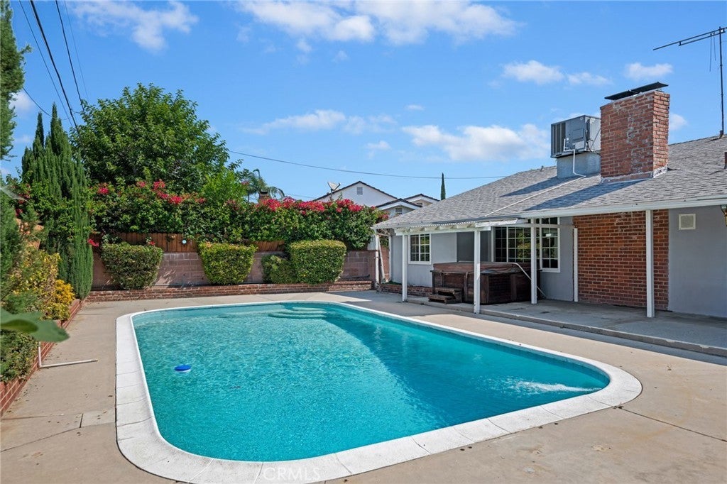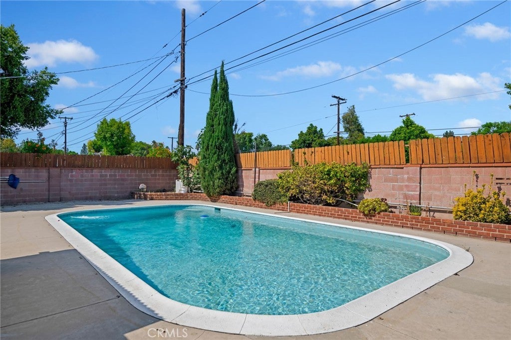 Nestled on a quiet street close to shopping, dining, schools and parks nearby, this three bedroom, two bathroom home with a pool is ready for you to call home. This home has hardwood floors and the interior was recently repainted and has features of new and old. The living, dining and kitchen areas are spacious with plenty of room for entertaining. The den area off the kitchen has a small fireplace area that you can use for grilling, and opposite to that, in the living area, is a wood burning fireplace. There are two bedrooms off the living area with a full bathroom in the hallway, and the primary bedroom with a 3/4 bathroom with double vanity. The backyard features an in-ground pool and above ground jacuzzi. The garage is a two car, non-direct access garage with plenty of storage. There are several parks, schools, grocery stores and restaurants nearby. Come make this home your next home.