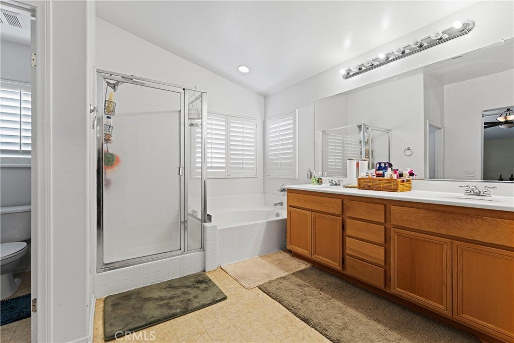 Beat the summer heat and rising utility costs with *PAID* solar and a brand new dual HVAC system in this beautifully maintained two-story home! Nestled on a large lot, this property also features RV access with an iron gate, extended concrete for additional parking or projects, and a 3-car garage — offering ample space for your vehicles, toys, and storage needs. Step inside to an updated kitchen with modern countertops and plentiful cabinetry, flowing into a spacious family room and a large laundry room perfect for busy households. Throughout the home, you’ll find ceiling fans for added comfort and energy efficiency. Upstairs, the primary suite boasts a walk-in closet you have to see to believe, while three additional well-sized bedrooms offer flexibility for all your needs. Downstairs, a convenient 3/4 bathroom sits next to a flexible space, making it possible to add a 5th bedroom or home office — buyer to verify with appropriate professionals. The pool-sized backyard is a blank canvas ready for your dream oasis, enclosed by block walls on all sides for privacy and peace of mind. An updated water heater adds even more value for the next homeowner. This home blends modern updates, future potential, and outdoor possibilities — all at a price that beats what you'd find in the Valley. Schedule your private showing today!