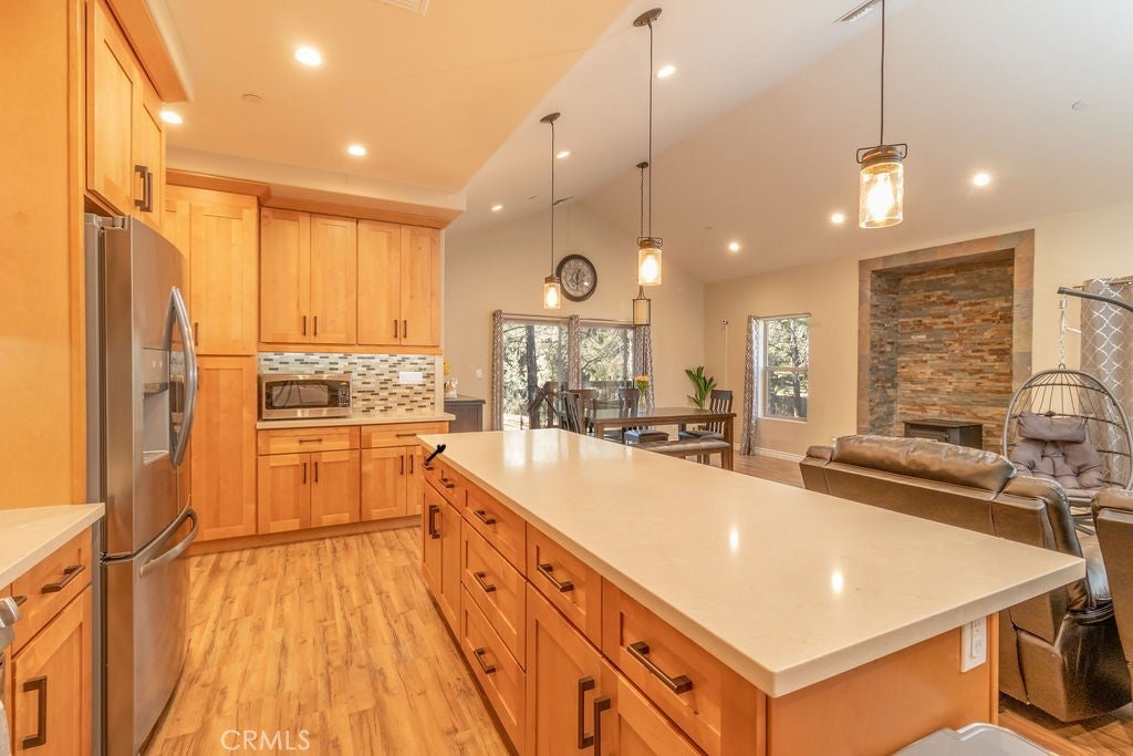 A spacious, 2019-built one-story home with a large deck, 3 bedrooms, 2 baths and a 2-car garage with electric charger and direct access into the house is available now in Pine Mountain Club! Enjoy this newer home with a huge great room with plenty of space for seating and dining as well as an open modern kitchen with an island. Entertain friends and family here and on the front deck as well with view of the mountains and the pines. The primary suite features a walk-in closet and a bathroom with double vanity and step-in shower as well as a private room for the commode. The guest hallway bathroom has a shower over tub and a vanity with storage. Central heat and a a pellet stove offer options for convenient and cost-effective warmth with a cozy atmosphere. A gracious mountain home with modern conveniences can be yours! Make an appointment today to see this beauty.
