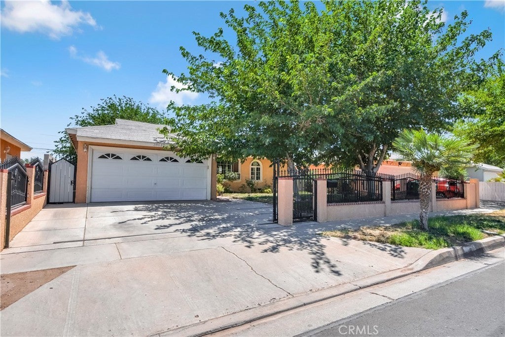 Welcome to this move-in ready single-story home offering comfort, style, and functionality in the heart of Palmdale. Featuring 4 spacious bedrooms and 2 bathrooms across 1,278 sq ft of living space, this residence sits on a generous 7,248 sq ft lot, providing plenty of room to live, relax, and entertain. Step inside to an open floor plan highlighted by crown molding, ceiling fans, and abundant natural light streaming through double-pane windows. The living room flows seamlessly into the dining area and a remodeled kitchen complete with granite countertops, a large kitchen island, pots & pan drawers, and stainless steel appliances including a dishwasher, gas cooktop, microwave, and refrigerator. The bathrooms feature modern upgrades such as a walk-in shower and shower-in-tub combination. All bedrooms are conveniently located on the main floor, with the primary suite offering a private retreat and direct access to its own bath. Outdoors, enjoy both a covered patio and deck, perfect for summer barbecues or relaxing evenings. The large front and backyard are secured with brick and wrought iron fencing, offering privacy and security. The attached 2-car garage and RV parking potential add valuable convenience. With additional features like tile flooring throughout, mirrored closet doors, and gated parking, this home is move-in ready. Located in a friendly neighborhood with sidewalks and close proximity to schools, parks, and shopping, it’s the perfect blend of comfort and practicality. Don’t miss the opportunity to make this Palmdale gem yours — whether you’re a first-time buyer, upgrading for more space, or looking for a great investment. Schedule your private showing today!