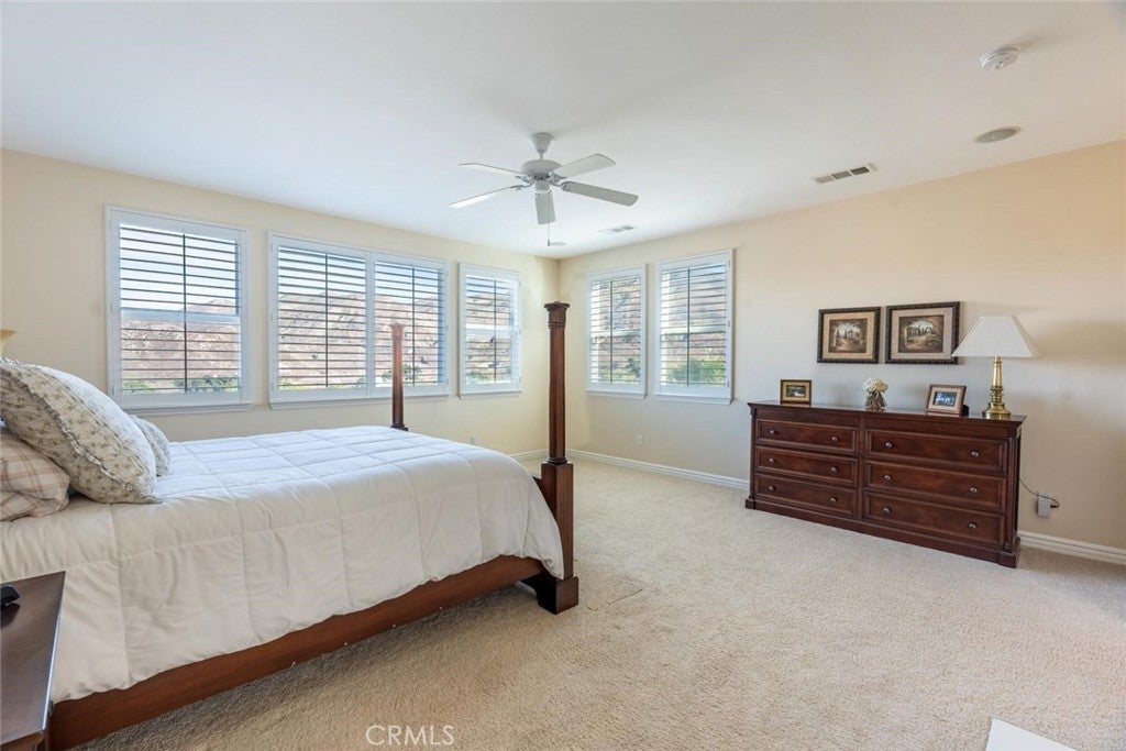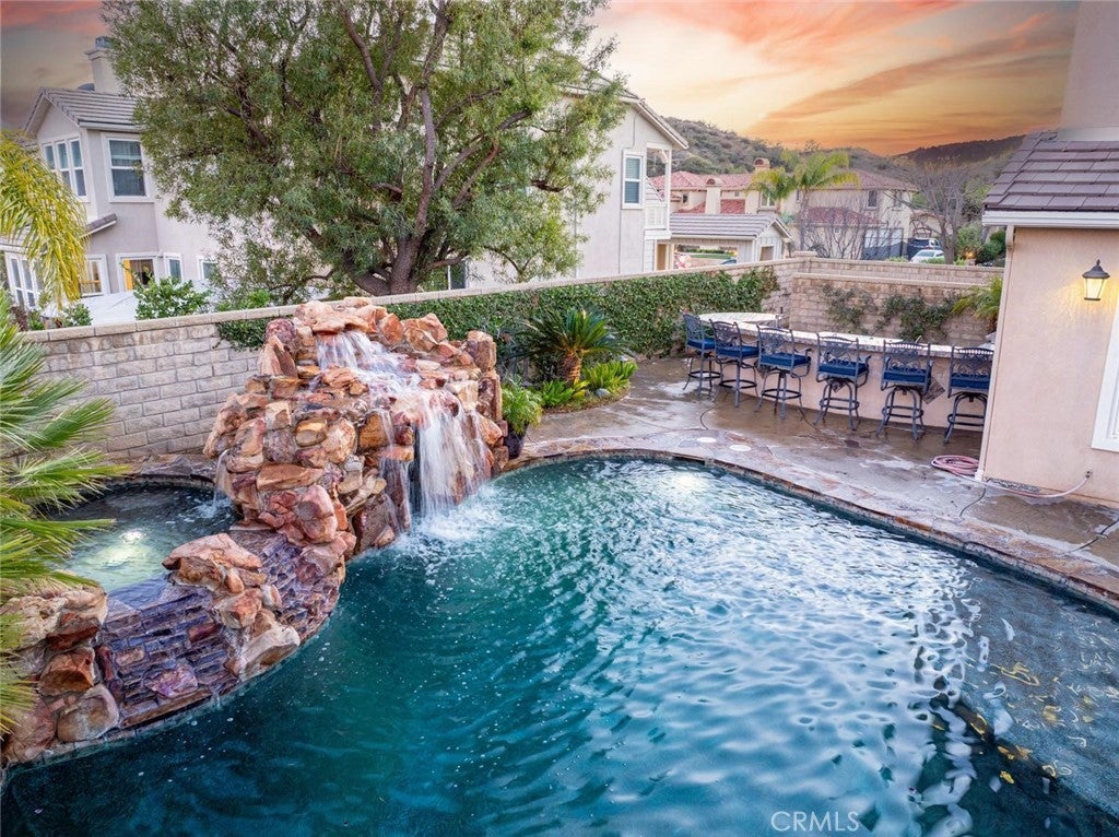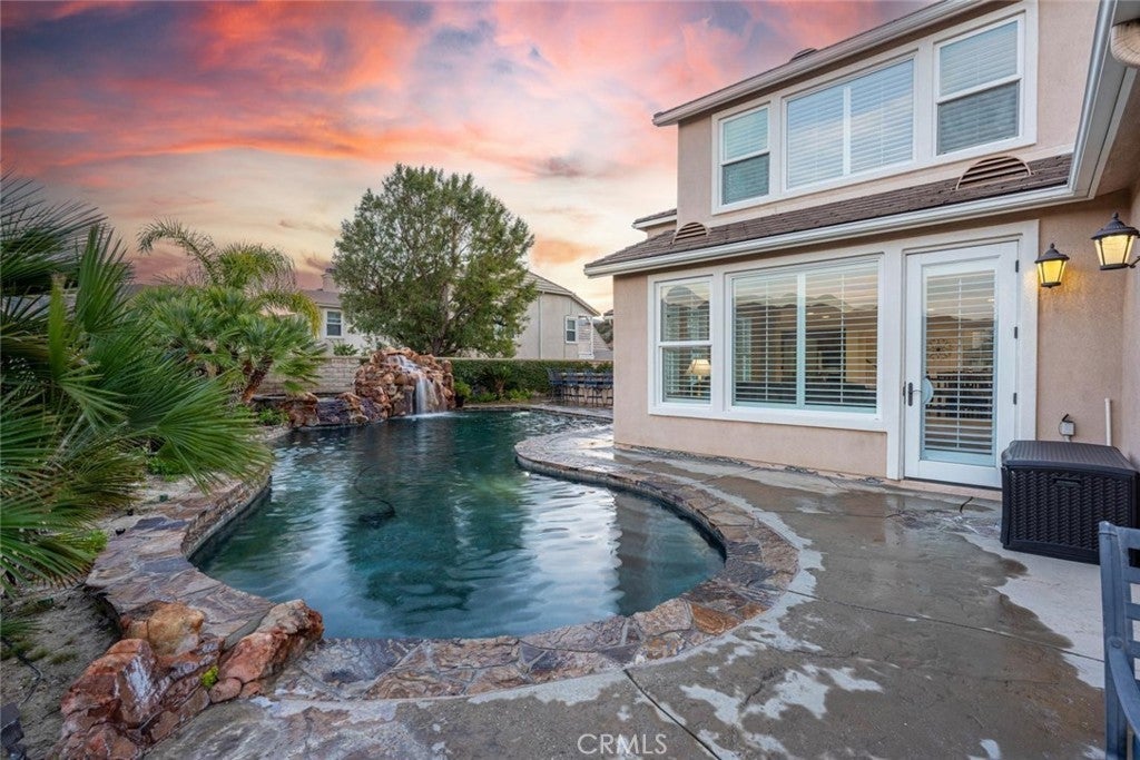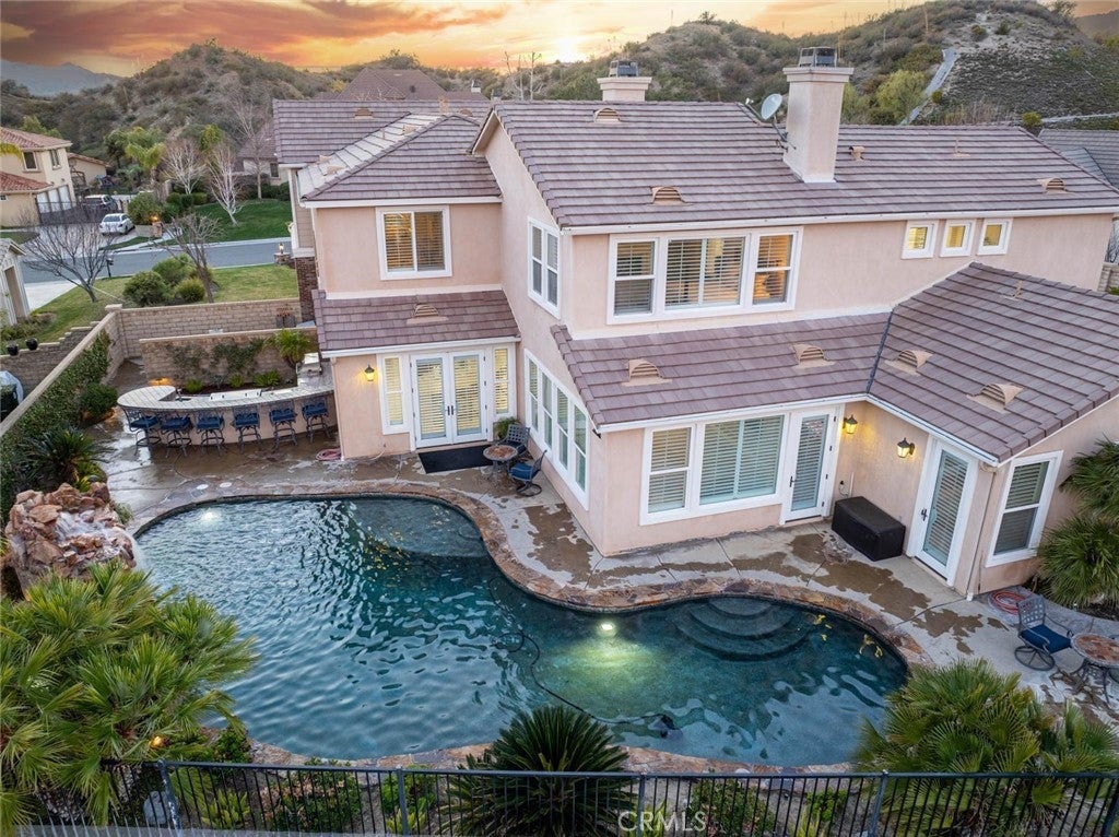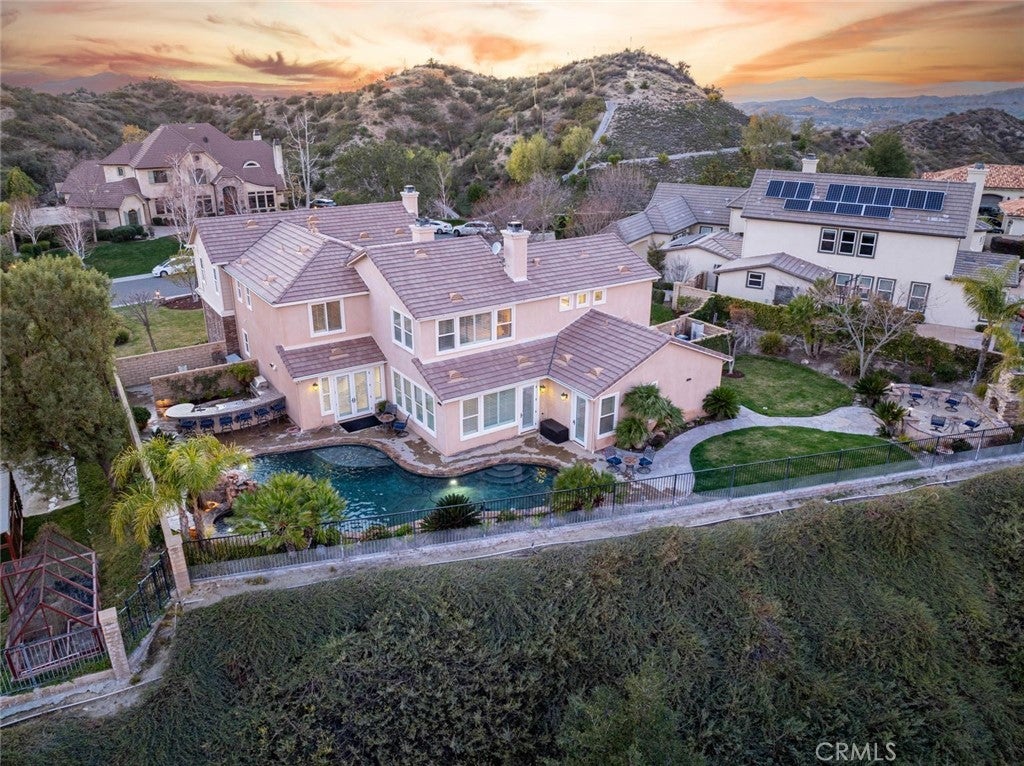 Special location & maybe the best value in Sand Canyon! The beauty of the Canyon is on full display from this oversized view lot at the end of the cul-de-sac, 27016 Cliffie Way! This spectacular entertainer’s yard features a saltwater pebble tech pool and spa, awesome BBQ/Cook station with Teppan Yaki grill, plenty of grass and a custom fireplace/conversation area with jaw dropping views of the hills and golf course in the distance. Hard to find views like this and the privacy is exceptional because of the location and lack of rear neighbors. Also, with a lot that is over a third of an acre you have a long driveway with room for multiple vehicles and a 3-car tandem garage. Inside you can enjoy the open feeling that this floorplan, the largest that Greystone built, offers. Downstairs has a junior suite with private full bath. Upstairs has 4 large bedrooms with the primary being especially well laid out. The closet is the size of some bedrooms (it's big!) and the retreat has a fireplace too. Both front bedrooms enjoy a deck with views of the hills from the front and have private baths. Truly plenty of room for everyone. Finally, the kitchen/family room is the largest in the Platinum collection so there is a true open feeling in every part of the home and the GE Monogram stainless package looks sharp against the granite island. More upgrades include shutters throughout, nice tile floors and sharp paint, all very neutral and move-in ready. The Robinson Ranch community is popular for the large homes available with good-sized lots and plenty of room between neighbors, all in a newer part of Sand Canyon. No Mello Roos taxes and a reasonable HOA which oversees community open space and the gate. Great home!