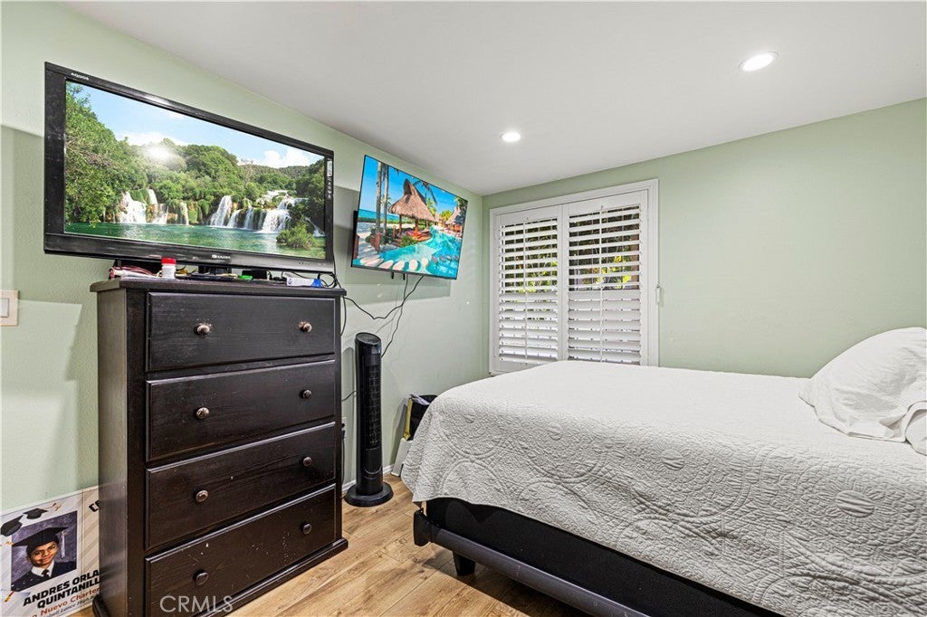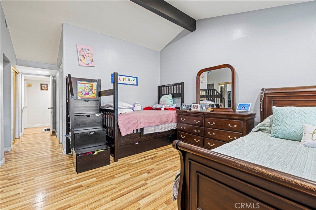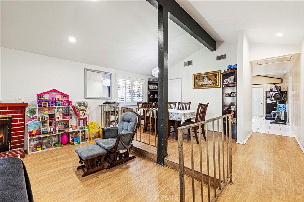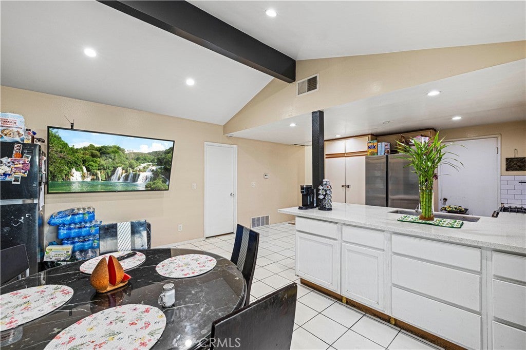 Welcome to this beautifully maintained 4-bedroom and 2-bathroom home in the heart of Pacoima! Built in 1969, this 1,660 sq ft residence sits on a generous 5,729 sq ft lot and is in MOVE-IN-CONDITION. The living room, informal dining area, and primary bedroom feature VAULTED CEILINGS with decorative black beams, creating an open and airy feel. The living room also boasts a charming brick fireplace, perfect for cozy gatherings. Furthermore, the home features RECESSED LIGHTING throughout. Natural light fills the living area, which flows seamlessly into the formal dining space—perfect for entertaining. The kitchen is a chef’s dream with RECESSED LIGHTING, ABUNDANT CABINETS, QUARTZ COUNTERTOPS with TILE BACKSPLASH, and an adjacent INFORMAL DINING AREA for casual meals. The spacious primary bedroom boasts ample closet space and a recently REMODELED BATHROOM with a mirrored vanity and glass-enclosed shower. The three additional bedrooms are spacious, each featuring large closets and SHUTTER BLINDS for privacy. Additional features include CENTRAIL AIR AND HEAT, an attached 2-car garage with a functional laundry area, and plenty of storage. Step outside to enjoy a large backyard with an enclosed patio, ideal for outdoor gatherings. Conveniently located near Costco, major shopping centers, schools, Hansen Dam Recreational area and golf course, and multiple freeways for an easy commute. Don’t miss your chance to call this Pacoima gem your new home!