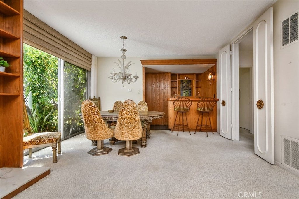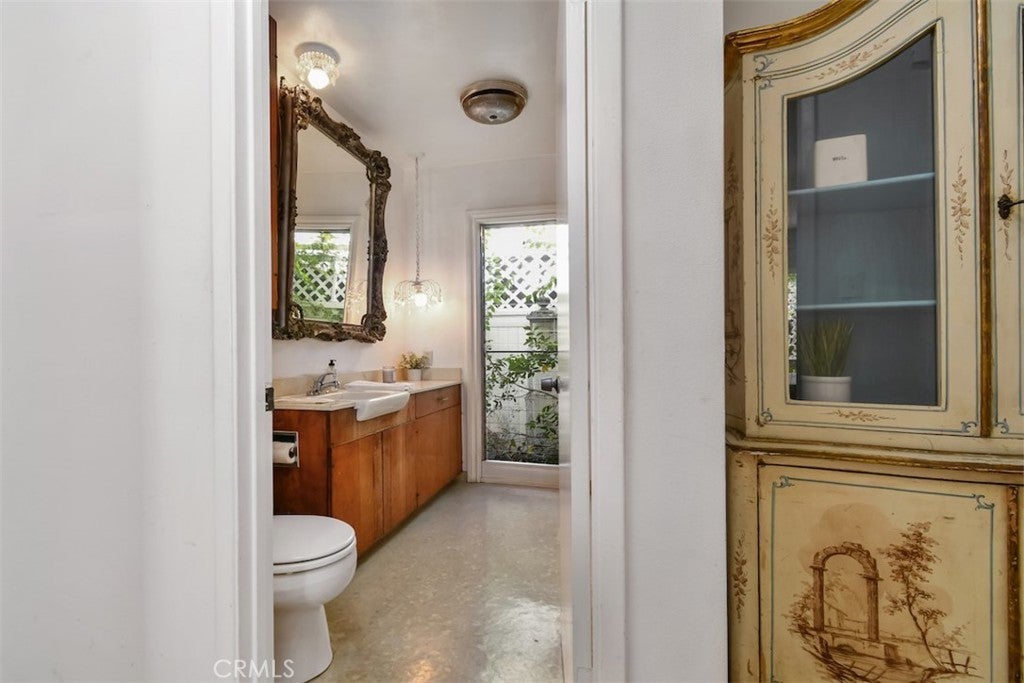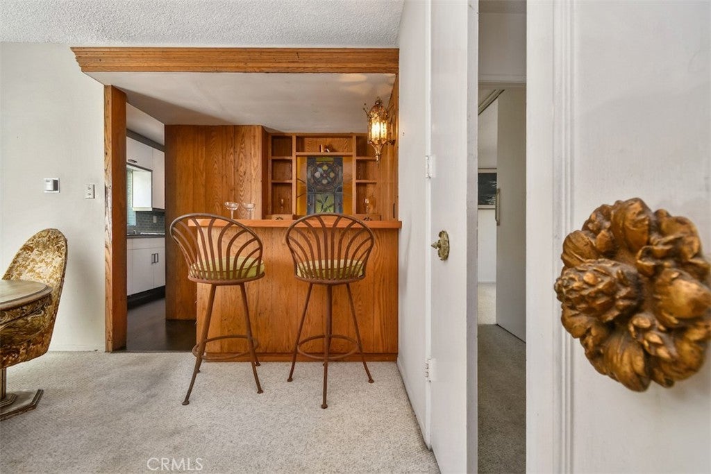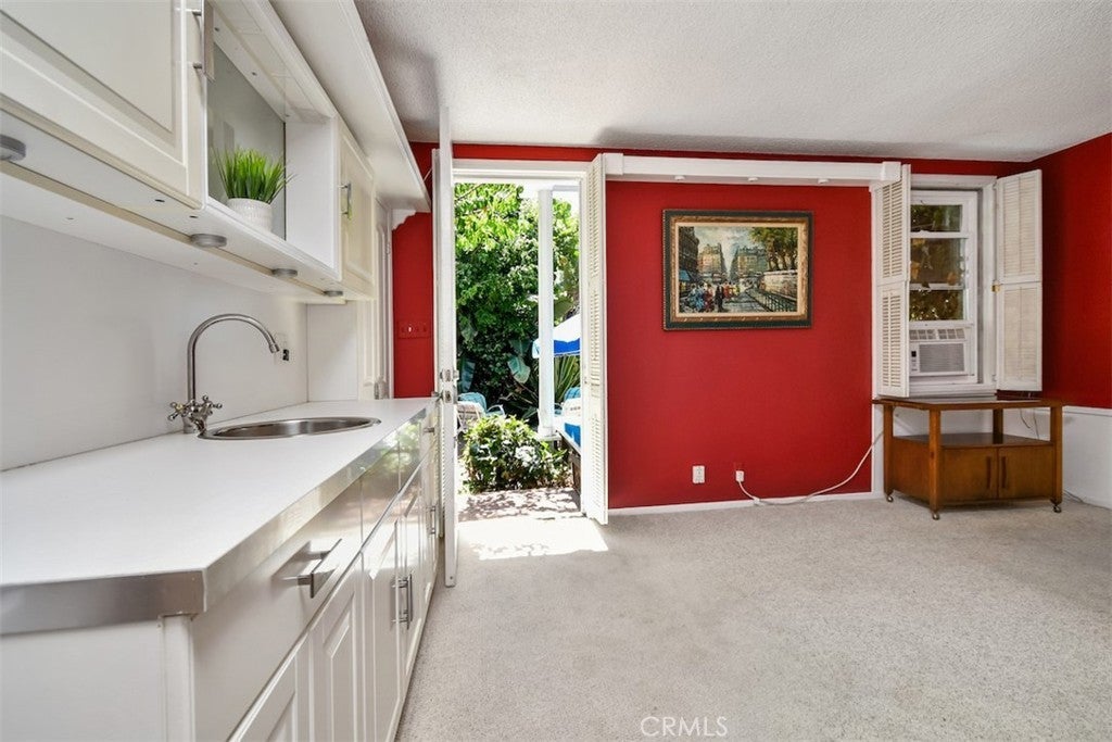 Located in the heart of West Hollywood, just blocks from Cedars-Sinai and a short drive to Beverly Hills, Melrose, and LA’s best shopping and dining, this unique mid-century home offers both practical living and endless possibilities. Towering shade trees, charming sidewalks, and mature landscaping define this highly sought-after neighborhood near Rodeo Drive, The Grove, and LACMA. Lovingly maintained by the same owners since 1960, the home is an architectural showpiece filled with character. The living room features handcrafted moldings, detailed woodwork, and a striking walnut wall unit framing the fireplace. The dining area glass doors open to a landscaped side yard, while the adjacent bar crafted from rare Wormy Chestnut and illuminated by stained glass adds vintage charm. Nearby the updated kitchen blends modern style with mid-century flair, showcasing glass tile, new cabinetry, and stainless appliances. A bright breakfast nook, highlighted by a period light fixture and large window, brings in abundant natural light. Three spacious bedrooms offer unique details; the large front bedroom has three closets and built-in shelving, the middle is ideal for an office or bedroom, and the rear bedroom offers versatile possibilities. The backyard is a private retreat, with multiple seating areas, a fire pit and spa. The bonus room offers versatile space as a studio, with ample closets and shelving ideal for creative projects or additional storage. Mature fruit trees, including orange, white peach, and lemon, complete the serene setting. Additional features include a carport with storage and a premium location that can’t be beat. Combining timeless design, comfort, and charm, this home has been the setting for decades of happy memories ready for you to create your own.