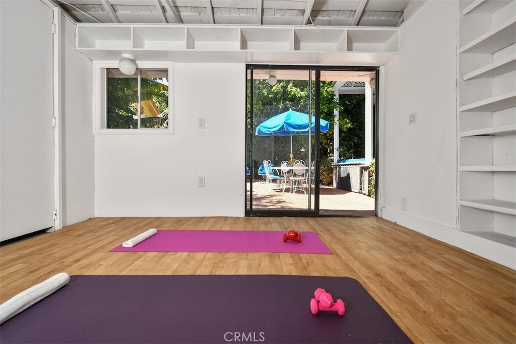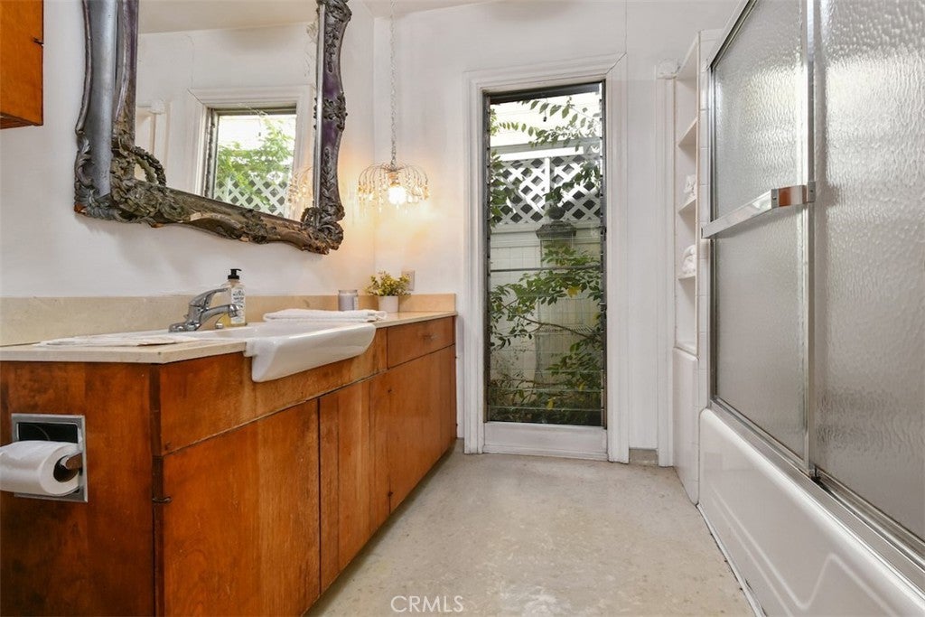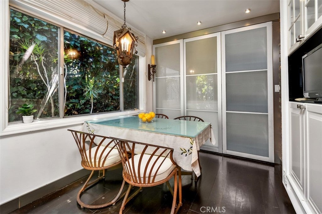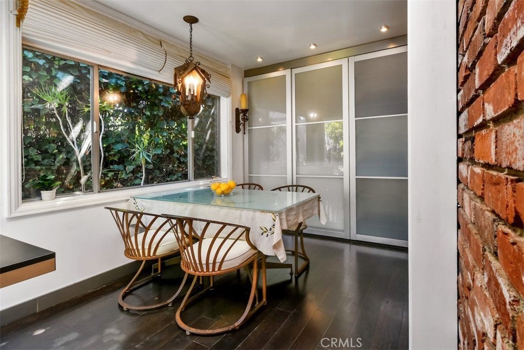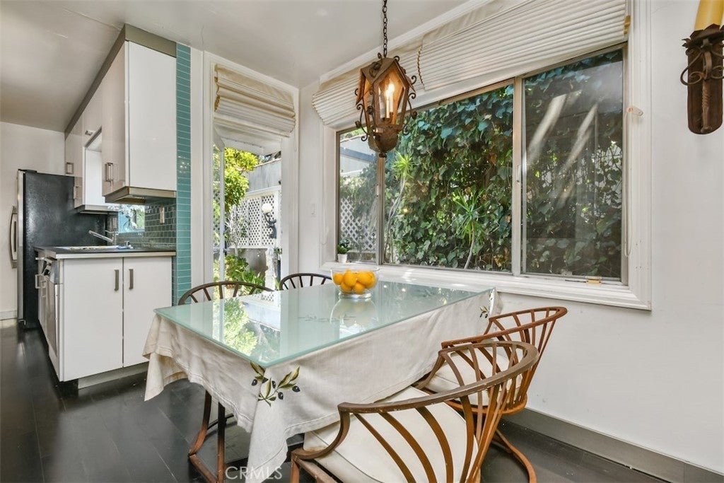 Located in the heart of West Hollywood, just blocks from Cedars-Sinai and a short drive to Beverly Hills, Melrose, and LA’s best shopping and dining, this unique mid-century home offers both practical living and endless possibilities. Towering shade trees, charming sidewalks, and mature landscaping define this highly sought-after neighborhood near Rodeo Drive, The Grove, and LACMA. Lovingly maintained by the same owners since 1960, the home is an architectural showpiece filled with character. The living room features handcrafted moldings, detailed woodwork, and a striking walnut wall unit framing the fireplace. The dining area glass doors open to a landscaped side yard, while the adjacent bar crafted from rare Wormy Chestnut and illuminated by stained glass adds vintage charm. Nearby the updated kitchen blends modern style with mid-century flair, showcasing glass tile, new cabinetry, and stainless appliances. A bright breakfast nook, highlighted by a period light fixture and large window, brings in abundant natural light. Three spacious bedrooms offer unique details; the large front bedroom has three closets and built-in shelving, the middle is ideal for an office or bedroom, and the rear bedroom offers versatile possibilities. The backyard is a private retreat, with multiple seating areas, a fire pit and spa. The bonus room offers versatile space as a studio, with ample closets and shelving ideal for creative projects or additional storage. Mature fruit trees, including orange, white peach, and lemon, complete the serene setting. Additional features include a carport with storage and a premium location that can’t be beat. Combining timeless design, comfort, and charm, this home has been the setting for decades of happy memories ready for you to create your own.
