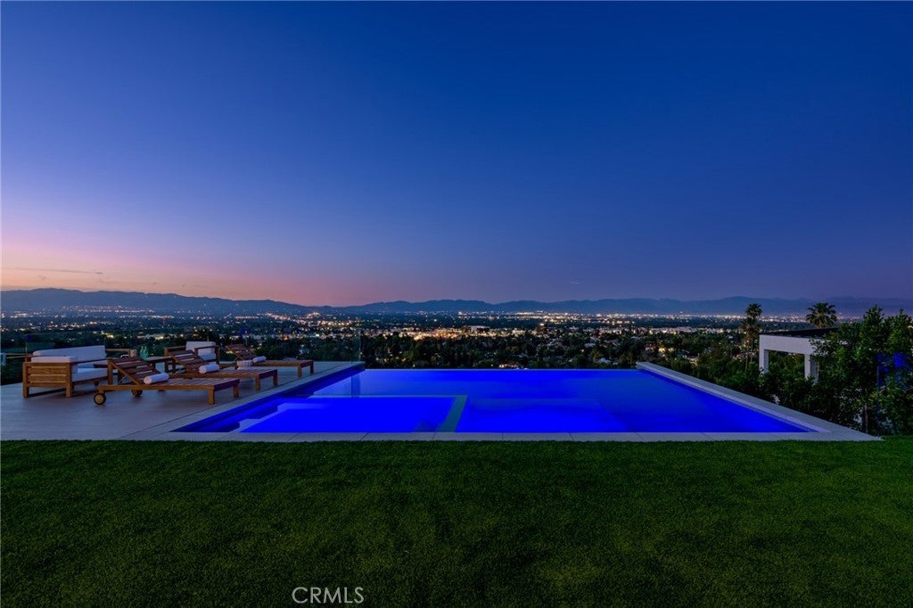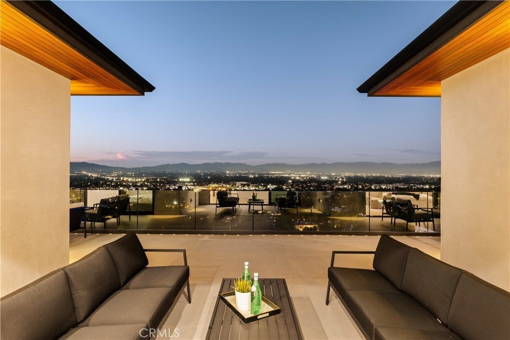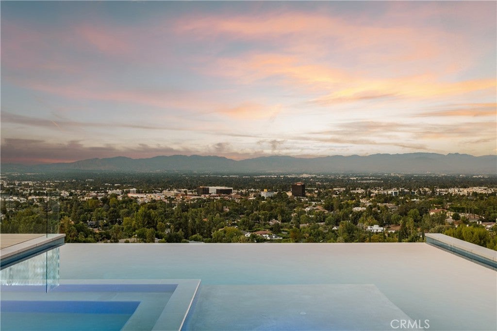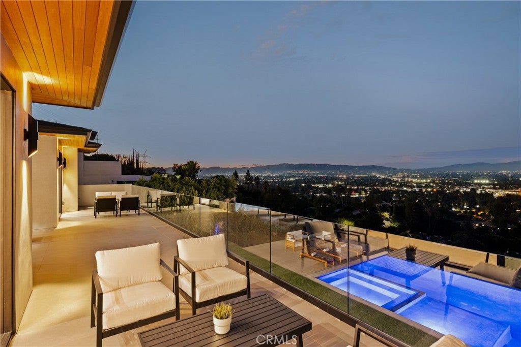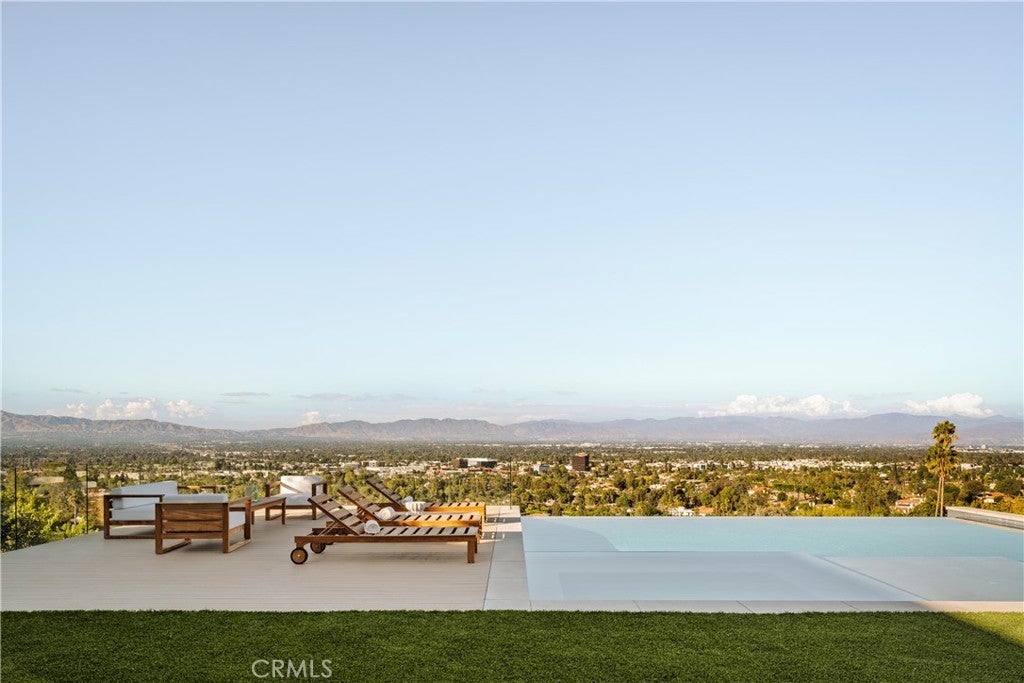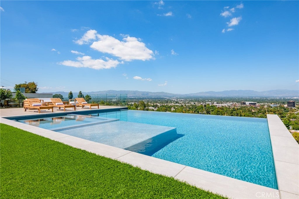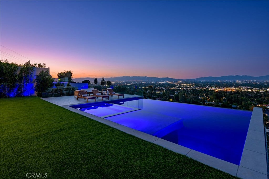 A one-of-a-kind architectural masterpiece where striking design meets endless views. Perched on a quiet, wide street, this brand-new 2025 estate showcases unobstructed panoramas of city lights, rolling hills, and golden sunsets—arguably the most breathtaking vantage point in Tarzana. Every inch of this contemporary showpiece has been meticulously crafted to frame and celebrate the views. Walls of glass and disappearing pocket doors erase the boundary between indoors and out, opening to a private outdoor paradise with an infinity-edge plunge pool spilling into the skyline. Inside, soaring 11-foot ceilings, wide-plank oak floors, and an open layout create a grand yet effortless flow. The sunlit great room combines living, dining, and a chef’s kitchen with custom cabinetry, an oversized island, and top-of-the-line Thermador appliances. The primary suite is a private retreat, elevated with mesmerizing views, dual showers, a sculptural soaking tub, and balcony escapes. Beyond its five bedrooms and six baths, this home elevates lifestyle with a three-level theater, gym, sauna, home office, and a bar & billiards lounge designed for unforgettable entertaining. This is more than a home—it’s an experience. Step inside and look out. You’ve never seen anything like it.