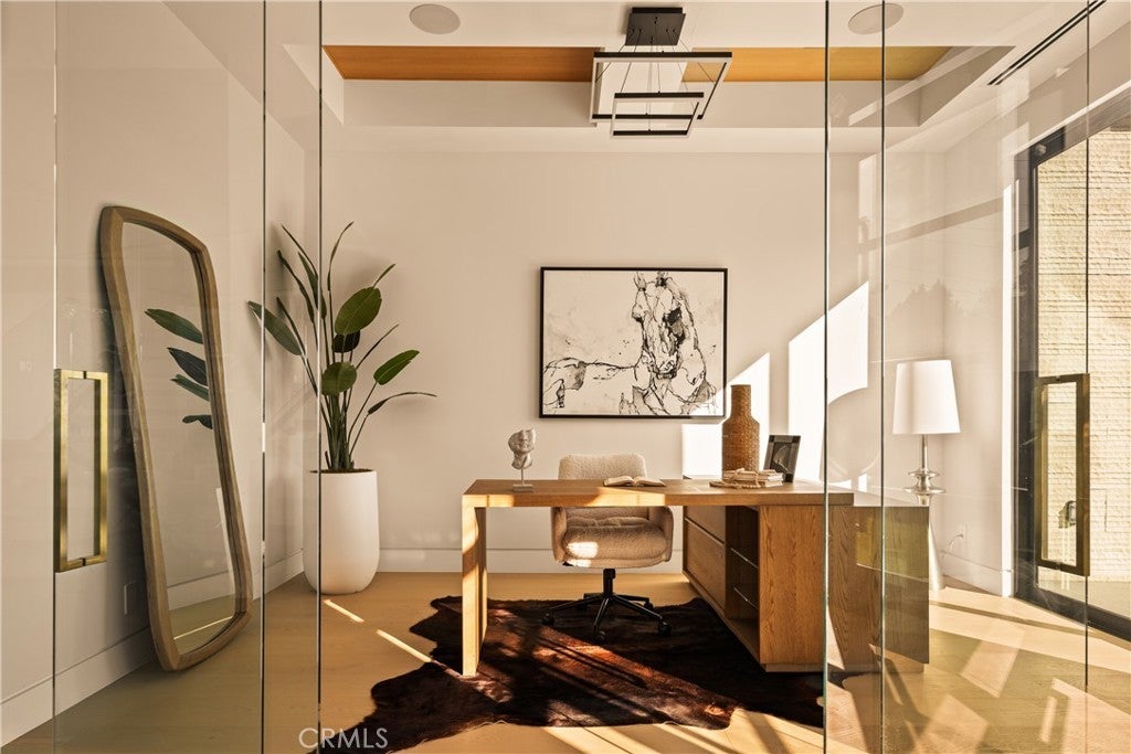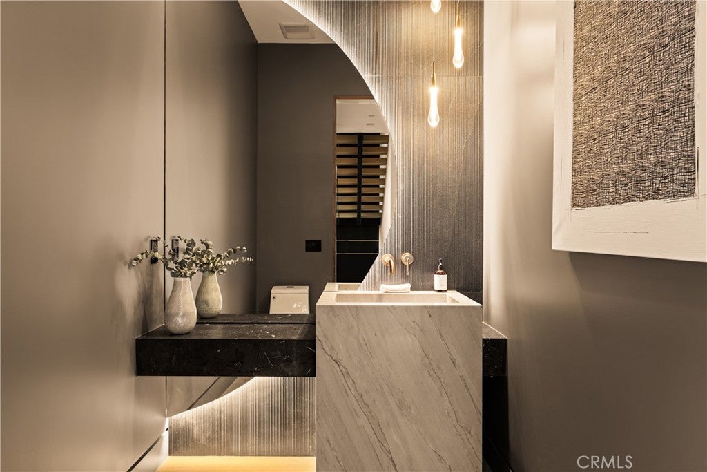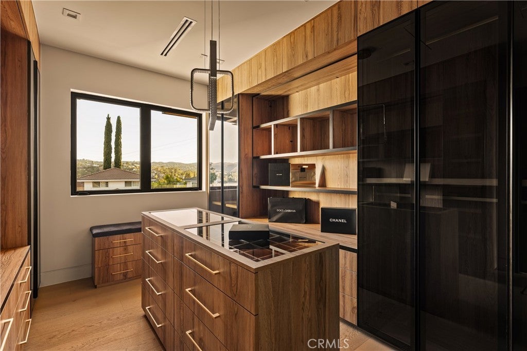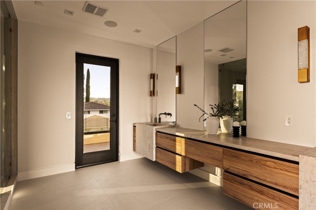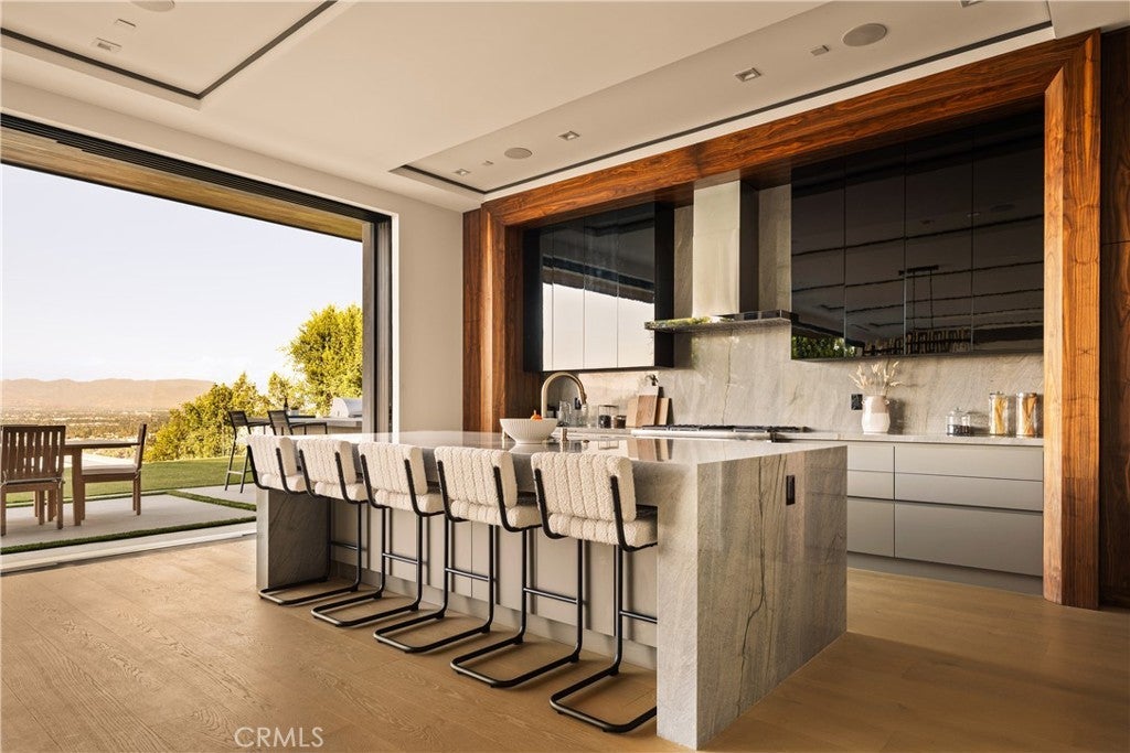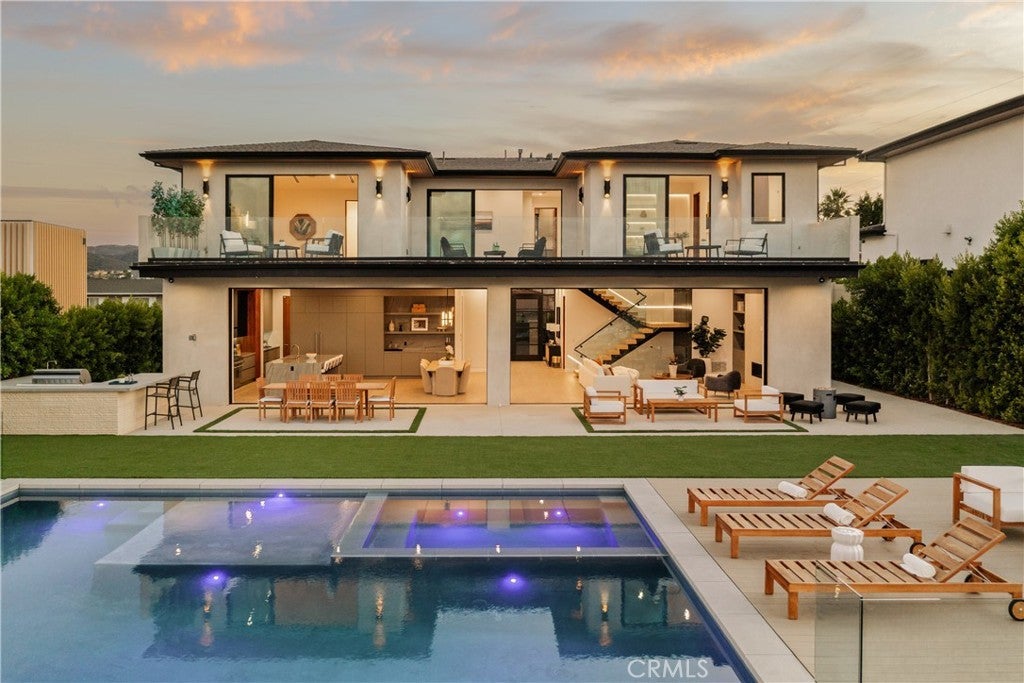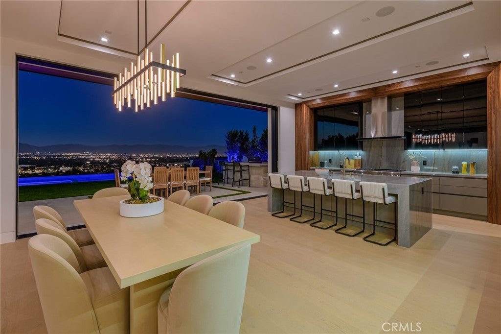 A one-of-a-kind architectural masterpiece where striking design meets endless views. Perched on a quiet, wide street, this brand-new 2025 estate showcases unobstructed panoramas of city lights, rolling hills, and golden sunsets—arguably the most breathtaking vantage point in Tarzana. Every inch of this contemporary showpiece has been meticulously crafted to frame and celebrate the views. Walls of glass and disappearing pocket doors erase the boundary between indoors and out, opening to a private outdoor paradise with an infinity-edge plunge pool spilling into the skyline. Inside, soaring 11-foot ceilings, wide-plank oak floors, and an open layout create a grand yet effortless flow. The sunlit great room combines living, dining, and a chef’s kitchen with custom cabinetry, an oversized island, and top-of-the-line Thermador appliances. The primary suite is a private retreat, elevated with mesmerizing views, dual showers, a sculptural soaking tub, and balcony escapes. Beyond its five bedrooms and six baths, this home elevates lifestyle with a three-level theater, gym, sauna, home office, and a bar & billiards lounge designed for unforgettable entertaining. This is more than a home—it’s an experience. Step inside and look out. You’ve never seen anything like it.