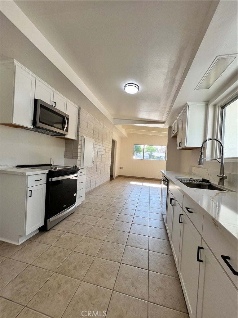 Beautifully updated single-story with 4 bedrooms, 2 baths, plus a versatile den/game room. Originally a 3-bedroom, the home now includes a thoughtfully added 4th bedroom that can serve as an office, nursery, or flex space. Over 2,100 sq. ft. of living with fresh interior/exterior paint, all-tile flooring, and a completely remodeled kitchen featuring new cabinets, quartz counters, and stainless-steel appliances. Both bathrooms have been tastefully upgraded with quartz vanities, new fixtures, and showers. Spacious living areas throughout. Property is ideally situated close to major freeways and shopping centers, providing convenience and accessibility. It's also within walking distance to an elementary school and just minutes away from a high school, making it a perfect choice for families.