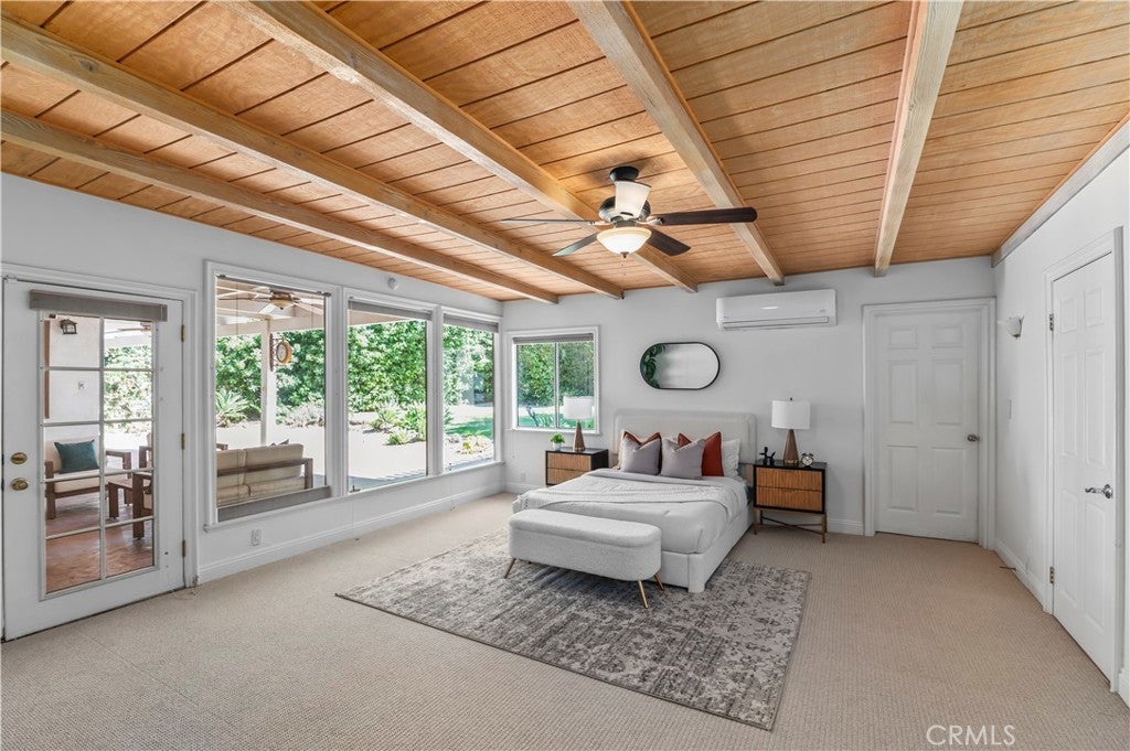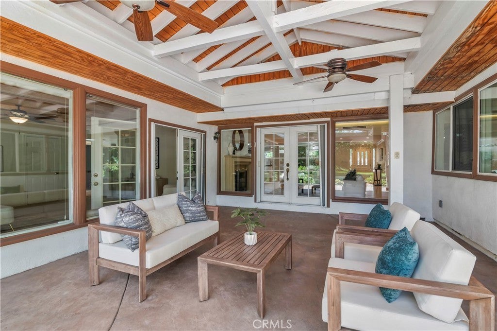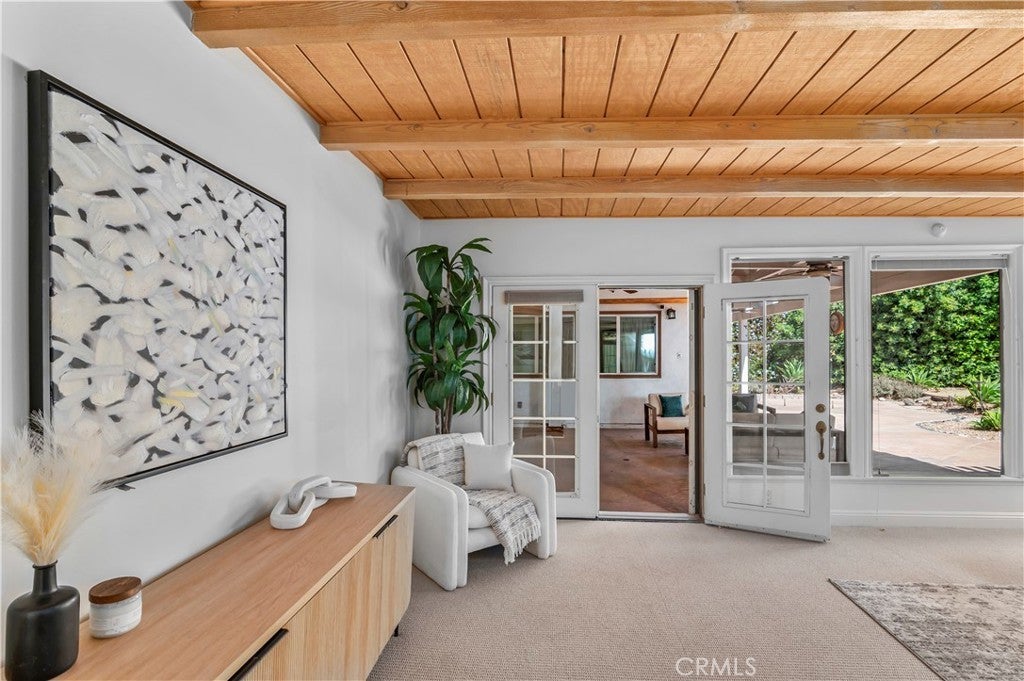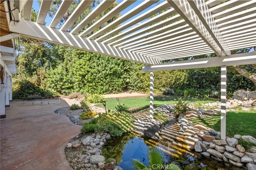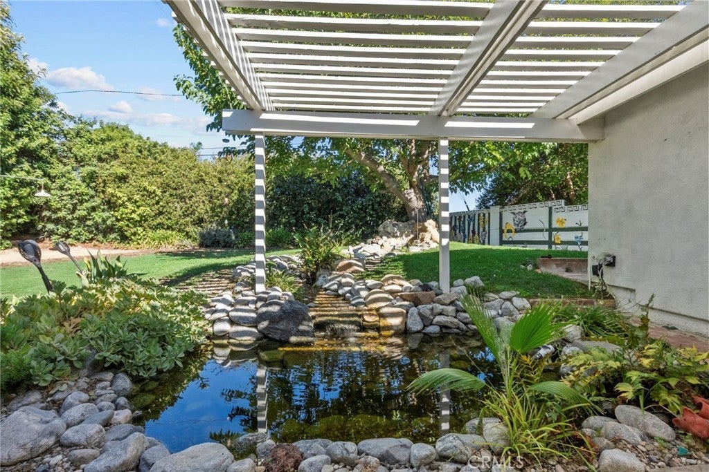 New Price! Rare opportunity to score the best deal in Woodland Hills on this amazing property! Positioned on a serene cul-de-sac, this sprawling, single level mid-century estate with nearly 3,600 sq. ft. combines space, privacy, and style in one of Woodland Hills’ most sought-after neighborhoods. Set on a flat 16,000 sq. ft. lot with a grand circular driveway, this unique property has so much to offer at an incredible price! A charming brick front porch creates a warm and welcoming entrance. Inside, natural light pours in through endless windows & skylights, generous public rooms with vaulted beam ceilings and wide open spaces. A beautifully appointed designer kitchen anchors the home with modern finishes, top of the line Cafe’ appliances, custom cabinetry, and a layout that balances design and function. The large primary suite boasts gorgeous wood ceilings, a large bathroom and expansive closets all overlooking the property’s lovely grounds. Enjoy cozy nights in the Movie theater, or conversations around the stunning dual sided fireplace, and hosting parties with the indoor-outdoor flow. Step outside to a huge rear wood beamed covered patio with water & gas hook-ups already in place for your outdoor kitchen. A tranquil water feature w/ babbling brook & waterfall leading to a beautiful pond sets the scene for this expansive yard with ultimate privacy! The grounds also feature a shuffle board court & an awesome enclosed dog run! This residence provides an abundance of square footage and versatile living areas, ready to be tailored to any lifestyle vision—whether reimagined as a contemporary showpiece, a timeless retreat, or an entertainer’s dream, your possibilities here are endless! Convenience is unmatched: the property is located very close to the coveted Lockhurst Elementary, Hale Charter Academy, and El Camino Real Charter High School, and just minutes from the 101 freeway, Calabasas Commons, Westfield Topanga & The Village, a premier destination for dining, shopping, and entertainment! Even more notable, this home is offered at the lowest price per square foot in the neighborhood—a remarkable opportunity to secure both size and value in a highly desirable location.