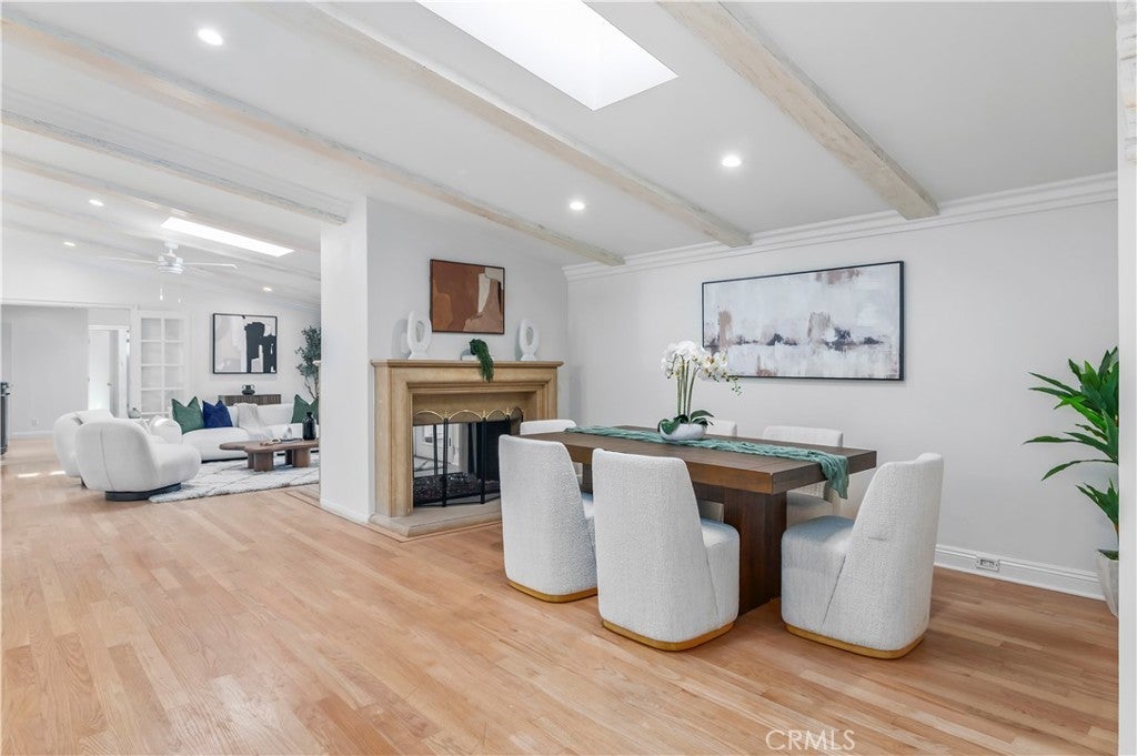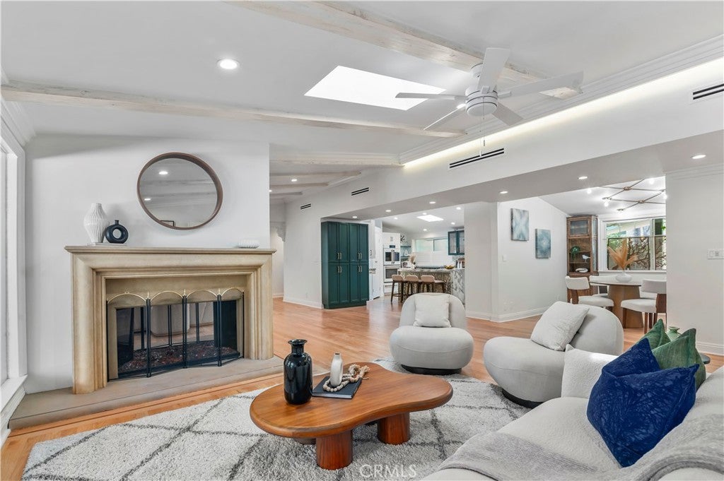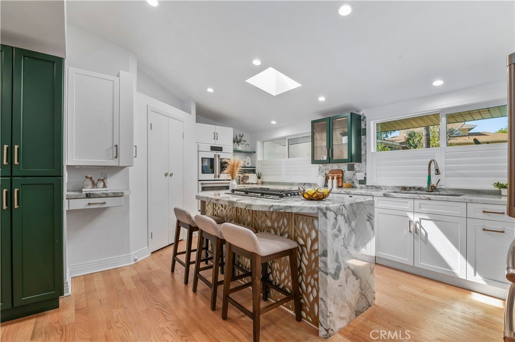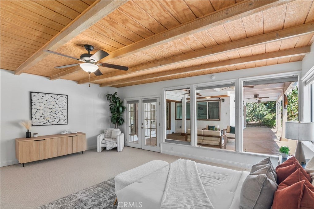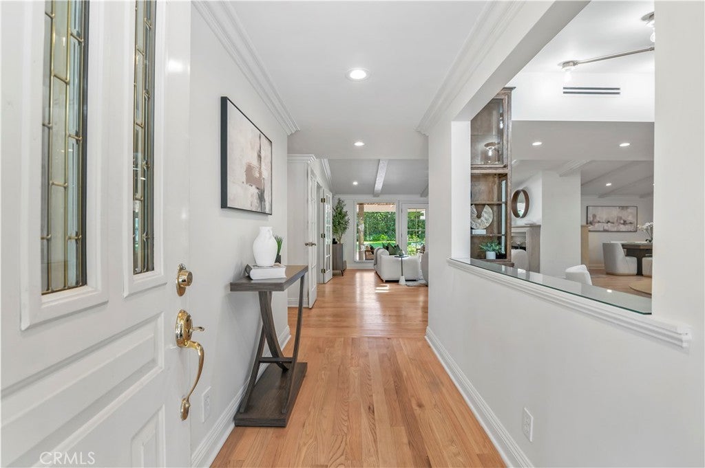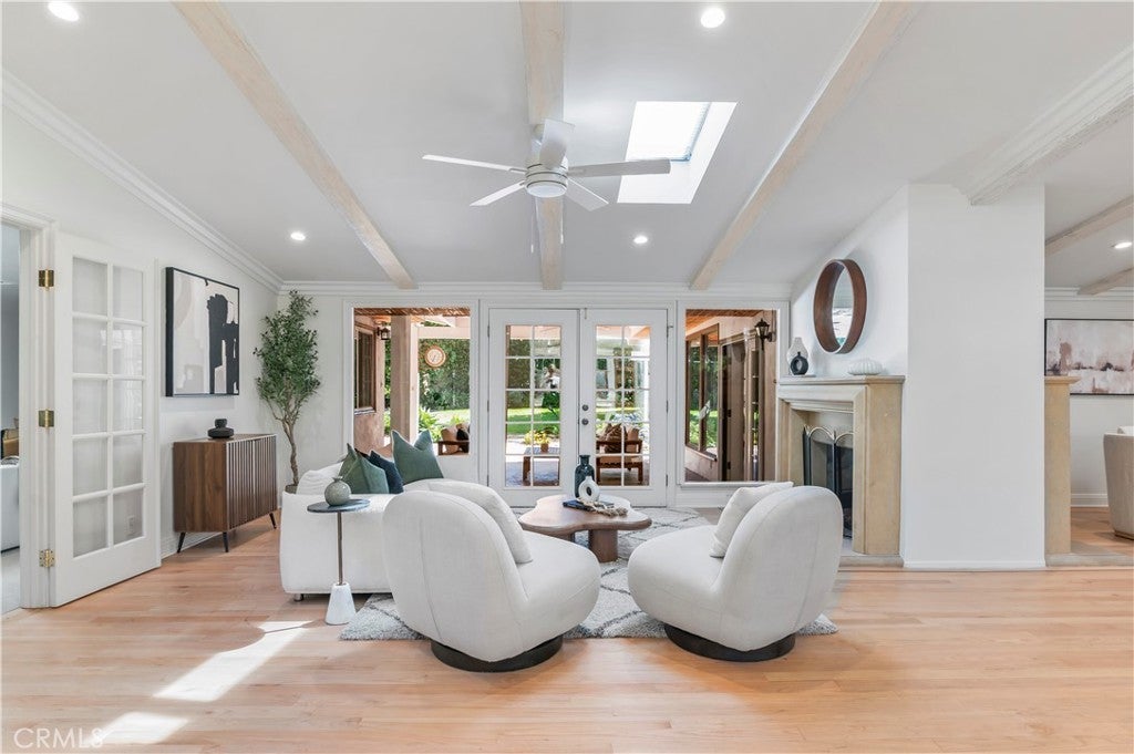 New Price! Rare opportunity to score the best deal in Woodland Hills on this amazing property! Positioned on a serene cul-de-sac, this sprawling, single level mid-century estate with nearly 3,600 sq. ft. combines space, privacy, and style in one of Woodland Hills’ most sought-after neighborhoods. Set on a flat 16,000 sq. ft. lot with a grand circular driveway, this unique property has so much to offer at an incredible price! A charming brick front porch creates a warm and welcoming entrance. Inside, natural light pours in through endless windows & skylights, generous public rooms with vaulted beam ceilings and wide open spaces. A beautifully appointed designer kitchen anchors the home with modern finishes, top of the line Cafe’ appliances, custom cabinetry, and a layout that balances design and function. The large primary suite boasts gorgeous wood ceilings, a large bathroom and expansive closets all overlooking the property’s lovely grounds. Enjoy cozy nights in the Movie theater, or conversations around the stunning dual sided fireplace, and hosting parties with the indoor-outdoor flow. Step outside to a huge rear wood beamed covered patio with water & gas hook-ups already in place for your outdoor kitchen. A tranquil water feature w/ babbling brook & waterfall leading to a beautiful pond sets the scene for this expansive yard with ultimate privacy! The grounds also feature a shuffle board court & an awesome enclosed dog run! This residence provides an abundance of square footage and versatile living areas, ready to be tailored to any lifestyle vision—whether reimagined as a contemporary showpiece, a timeless retreat, or an entertainer’s dream, your possibilities here are endless! Convenience is unmatched: the property is located very close to the coveted Lockhurst Elementary, Hale Charter Academy, and El Camino Real Charter High School, and just minutes from the 101 freeway, Calabasas Commons, Westfield Topanga & The Village, a premier destination for dining, shopping, and entertainment! Even more notable, this home is offered at the lowest price per square foot in the neighborhood—a remarkable opportunity to secure both size and value in a highly desirable location.