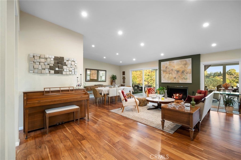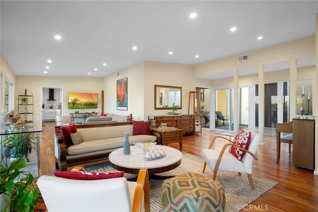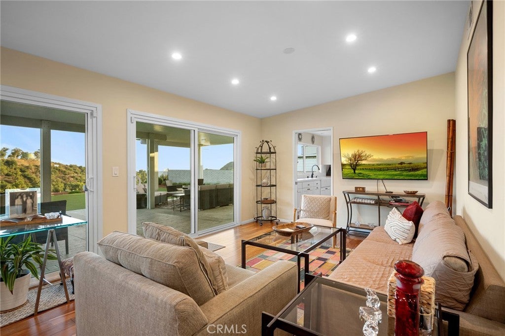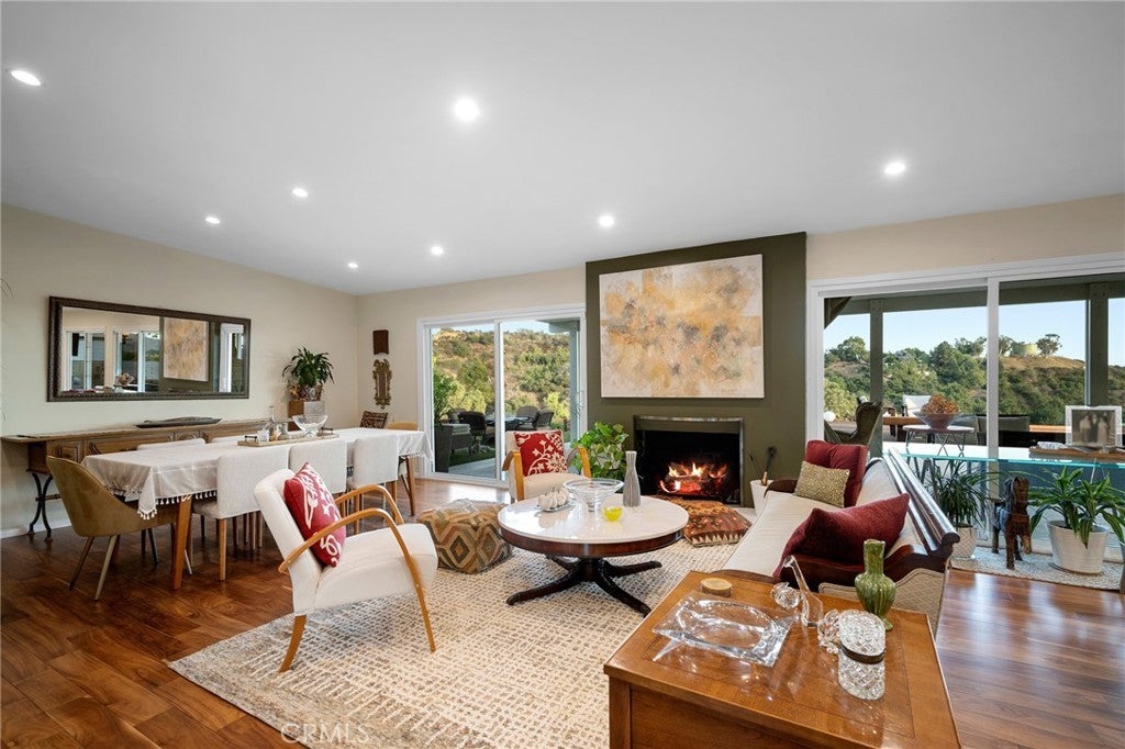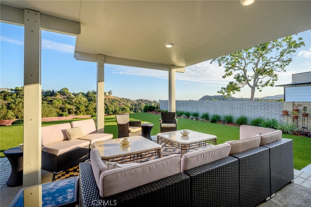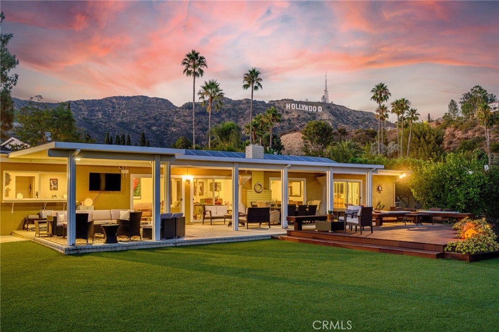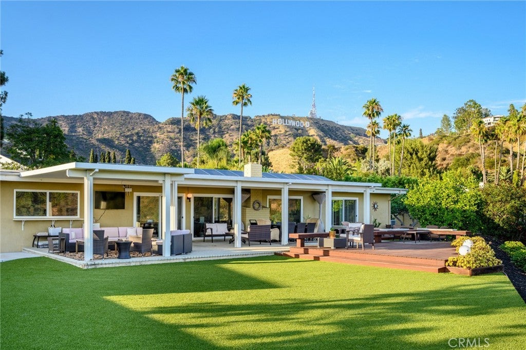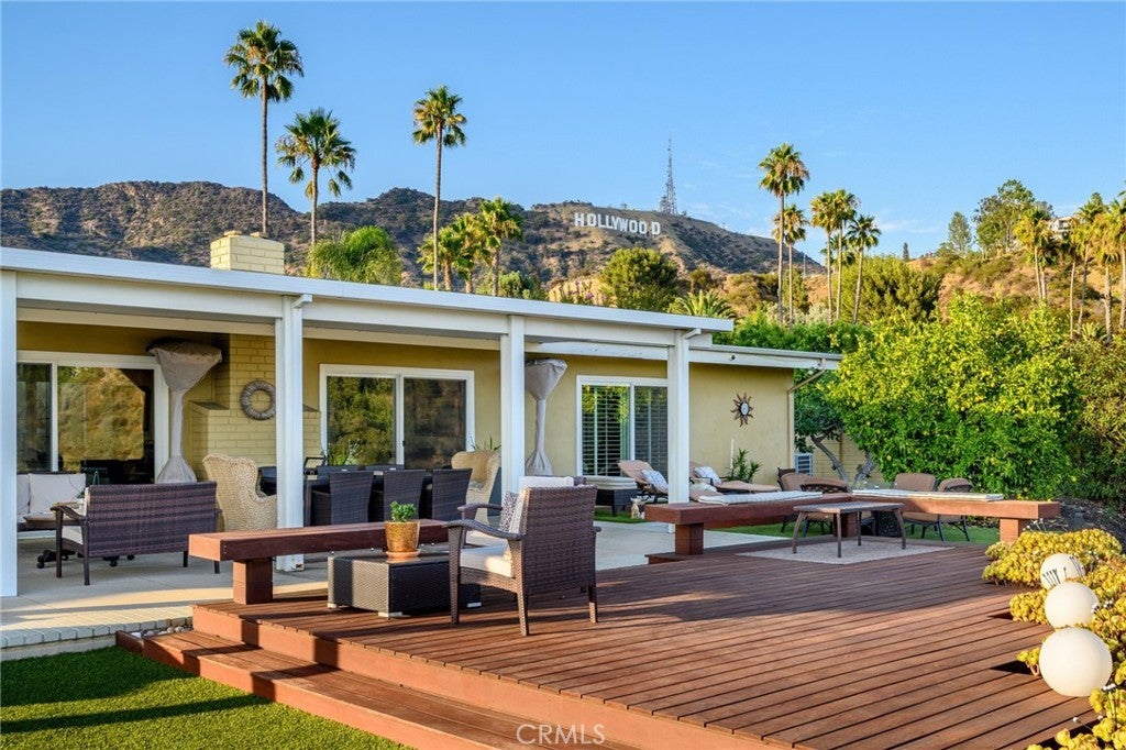 Perched in the highly sought-after Hollywood Hills, Built in 1966, this beautifully updated single-level Mid Century Modern home offers sweeping panoramic views of Lake Hollywood and the surrounding hillsides. Enter through a sun filled atrium, this homes features 3 spacious bedrooms and 2.5 luxurious baths, this residence effortlessly blends classic California elegance with modern comfort. Step inside to find an open-concept living and dining area bathed in natural light, with floor-to-ceiling windows that frame breathtaking vistas and bring the outdoors in. The gourmet kitchen boasts high-end appliances, sleek cabinetry, and ample counter space—perfect for entertaining or everyday living. The spacious primary suite features sliders to a private yard and en-suite bath. Outdoors, enjoy multiple terraces and patios ideal for al fresco dining, relaxing, or taking in the iconic LA sunsets. A flat yard space and lush landscaping complete the picture. Located minutes from studios, hiking trails, and the vibrant heart of Hollywood, this rare view property combines privacy, style, and convenience in one of Los Angeles’ most iconic neighborhoods.