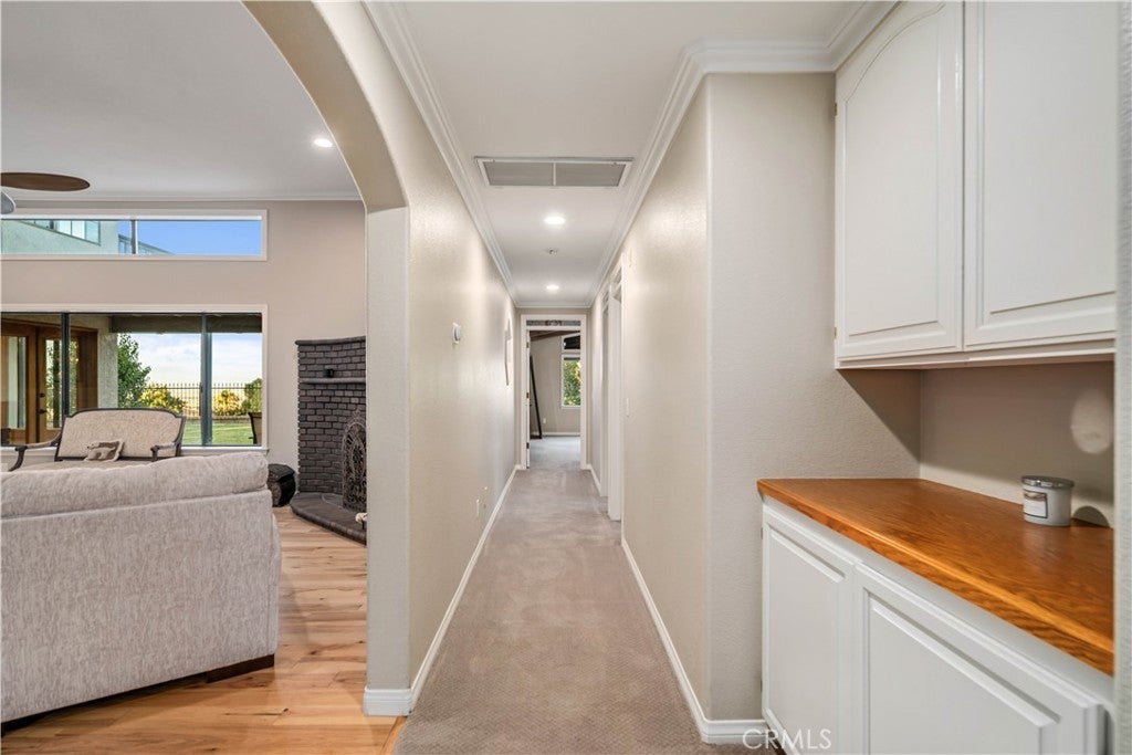 • Interior FeaturesAll Bedrooms Down, Balcony, Beamed Ceilings, Bedroom on Main Level, Breakfast Bar, Granite Counters, High Ceilings, Main Level Primary, Separate/Formal Dining Room, Walk-In Pantry, Wet Bar