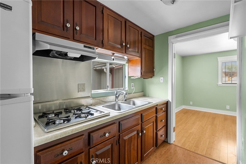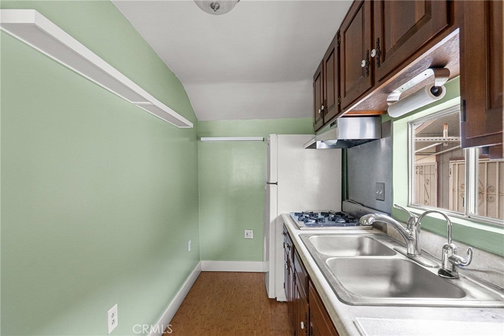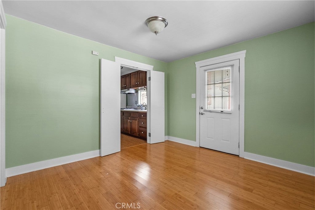 Opportunity is Knocking! Outstanding Highland Park property featuring 2 homes on 1 lot, Zoned LARD2. This is the one you have been waiting for! Family owned for almost 50 years! The front house draws you in with the charming raised covered front porch providing ideal views of the neighborhood. Step back in time to this meticulously maintained home complimented by old and new charm. The stunning hardwood floors and bold baseboards throughout are impressive, crown molding and curved ceiling with ceiling fan in the living room are inviting features. The dining room boasts a functional built in buffet with lights and glass fronts, quite the statement and period piece. The decorative glass doors leading to the kitchen open and close giving a different feel to each room. The kitchen has been updated and your solid surface counters with seamless sink are in impeccable condition and the amount of cabinet space is perfect. The remodeled hall bath was designed with a large jetted tub with detachable wand, the primary is generous in size and allows for a large walk in closet, both bedrooms have ceiling fans and mirrored wardrobe closets. Other improvements include a tankless water heater, copper plumbing, most windows have been updated, electrical panel and roof (approx 11 years old) The Back House - Super cute 1+1 with kitchen and living room! Wow, what incredible space. Upgrades and features of this home include roof (approx 11 years old), bamboo floors in living room, plush berber carpeting in the bedroom, kitchen with cook top, fridge and sink. 2 split unit air conditioners, copper plumbing, updated windows, ceiling fans and paneled doors. Bathroom with tiled floors and a walk in shower. This completely fenced and gated yard is designed to accommodate multiple cars, has incredible fig and Meyer lemon trees, storage areas, outside laundry cabinet, the second home has its own electric and gas meter, water is shared. A must see to appreciate the love and care that this home has received!