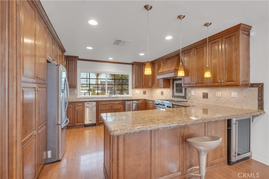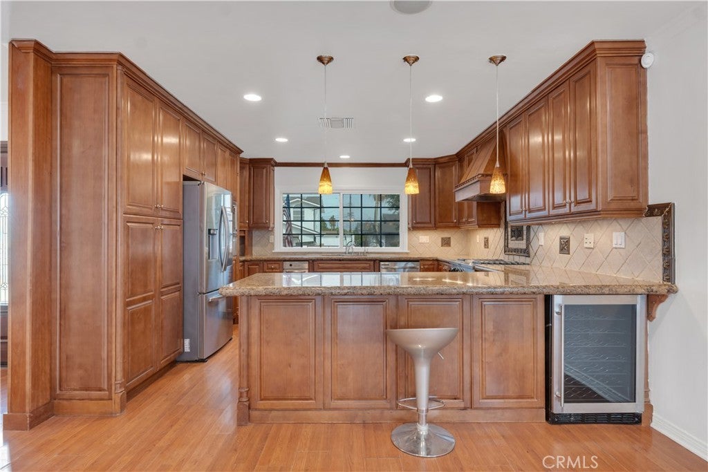 Location, Location, Location! This beautiful home in the heart of Northridge offers 3,137 sq. ft. of open living space on an 11,000 sq. ft. lot. The expansive floor plan combines a spacious living room, dining area, and family room, creating a bright and inviting atmosphere. The large kitchen features granite countertops, slide-out drawers, a trash compactor, wine refrigerator, modern refrigerator, and 6-burner stove. The home includes 3 bedrooms and 3.5 bathrooms, each with its own private bath. The oversized master suite boasts a huge walk-in closet, recessed lighting, sound system, water softener, central vacuum, and abundant storage in the large garage. The backyard is a true showpiece, designed for both relaxation and entertainment. A custom spa—professionally installed on a special foundation—comfortably fits 10–15 people and features wave functions, jumping water, and stunning night lighting, creating a private resort experience at home. There is also room to build an ADU or guest house, plus ample parking with space for an RV.