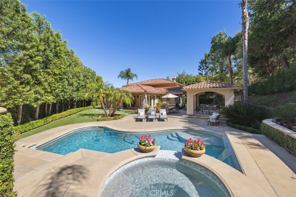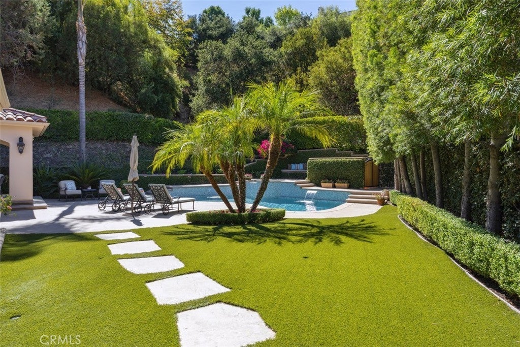 Is it possible to have modern design, resort-style living, & suburban charm all in one? This Calabasas gated two story pool home says yes. Four bedrooms, three baths, & a spacious backyard retreat that feels like your own private resort—this is Calabasas living redefined. Completely reimagined with modern finishes & an open floor plan built for today’s lifestyle. Natural light floods the home as part of the WOW moment of entry. All new European Oak Hardwood Floors. Smart (app based) lighting system from KASA throughout. Completely remodeled baths & a kitchen perfectly located to serve inside & out. One bedroom & adjoining full bath down, the upstairs sanctuary boasts large primary suite with two closets & chic elegant bath overlooking the backyard. Two other bedrooms share another sleek refined bath. Outdoors an expansive private yard spreads out with plenty of room to roam, a large inviting pool with raised spa, BBQ, dining area & covered Cabana with fireplace. From lively poolside parties to intimate evenings under the lights—this backyard is designed for every moment. too many upgrades throughout to mention. Imagine mornings filled with natural light, afternoons by the pool, & evenings entertaining in a sleek open floor plan—this home is built for the life you’ve been dreaming of.