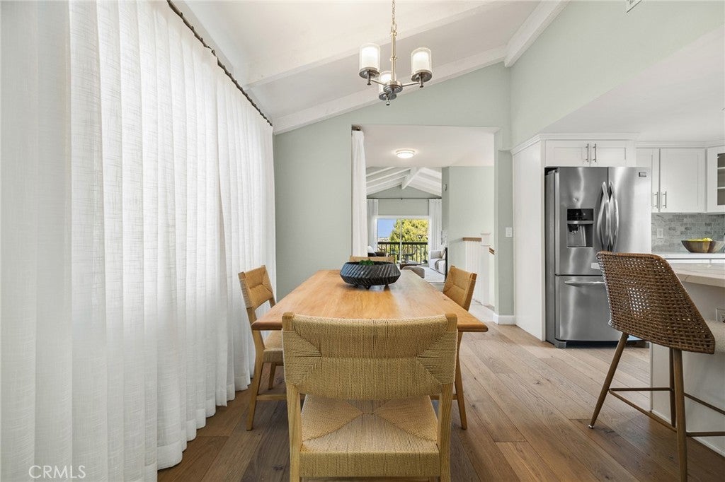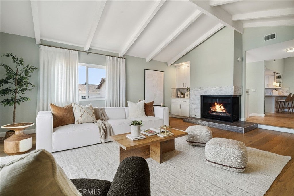 Perched at the highest point of Golden Hills, this spacious family home offers sweeping mountain and city views with unbeatable coastal convenience. Just one block from Hermosa Beach and a short walk to Hermosa Pier, it sits in the heart of the South Bay—offering walk- and bike-friendly access to surf, dining, and entertainment, plus convenient freeway access for easy commutes, 15 minutes to LAX. The upper-level features vaulted ceilings and abundant natural light, with European oak flooring throughout the home providing an airy, open feel. Relax or entertain in your bright oversized living room, leading to your panoramic view balcony. Even at night, this view never disappoints- pour a glass of wine and watch the planes touch down on the horizon, framed by twinkling city lights. The updated kitchen includes a farmhouse kitchen sink, stainless steel appliances, and quartz countertops. The upper-level primary suite offers vaulted ceilings, a private balcony and dual-vanity bath, while the two generously sized lower-level bedrooms are ideal for kids’ rooms, play space, or flexible family living that grows with you. Step outside to a private, bamboo-lined backyard patio with turf—a tranquil, low-maintenance retreat perfect for morning coffee, summer barbecues, or evening relaxation. The high ceiling, epoxy-coated garage floor adds polished durability, and extra storage, making it perfect for a gym, playroom, or extra living space. Central air has been added as well. Families will appreciate being close proximity to Jefferson Elementary, a 2023 California Distinguished School consistently ranked among the top 5% of elementary schools in the state. Beyond the home itself, the neighborhood hosts an annual Halloween block party, creating a warm, welcoming community where neighbors connect and lasting memories are made.