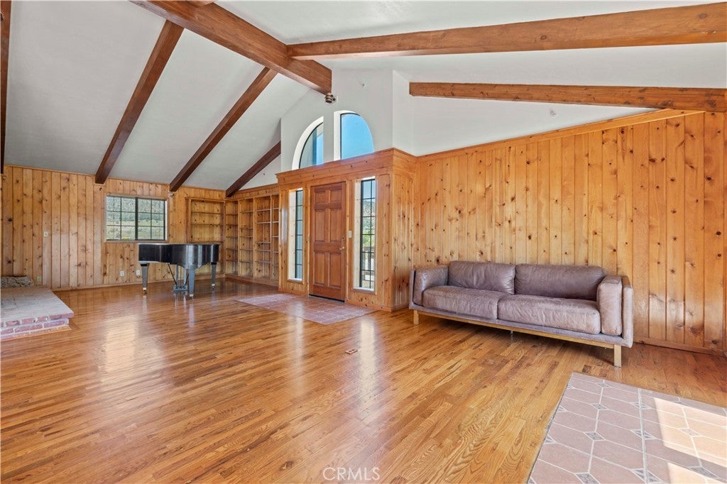 Nestled in the mountains and surrounded by natural beauty, this magnificent estate combines timeless craftsmanship with modern updates on over 5 acres bordering 600 square miles of National Forest. Recently refreshed with new exterior and interior paint and beautifully refinished hardwood floors, the single story custom home offers sweeping panoramic views and trails right outside your door. The residence features 5 bedrooms, 2.5 bathrooms, and nearly 3,600 square feet of thoughtfully designed living space. The expansive living room showcases vaulted ceilings with exposed beams, while the chef’s kitchen is equipped with a walk in pantry, double oven, marble countertops, artistic backsplash, custom cabinetry, and a striking butcher block island. Radiant heated floors warm the kitchen and dining areas, and three fireplaces add inviting charm throughout the home. The primary suite is a private retreat with vaulted ceilings accented in exotic Asian birch, a cozy fireplace, and a spa inspired bath with a cast iron tub and oversized shower. Built for both beauty and resilience, the property includes a lifetime metal roof, full sprinkler system, dual propane tanks, boxed in eaves, complete fencing with an electric gate, and a backup generator powering the entire home and well pump. Equestrian facilities include corrals and a powered tack room, offering a ready made retreat for horse enthusiasts. Located just 45 minutes from Santa Clarita, this rare estate delivers the perfect blend of seclusion, modern updates, and timeless natural beauty.