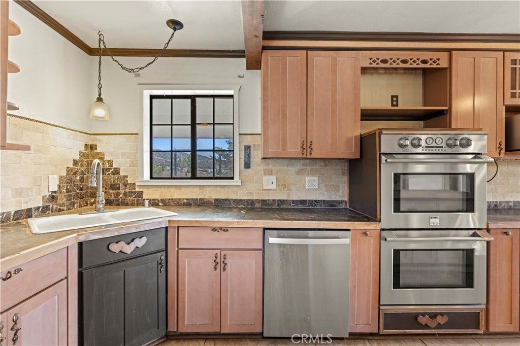 • AppliancesDouble Oven, Dishwasher, Disposal, Propane Oven, Propane Range, Vented Exhaust Fan