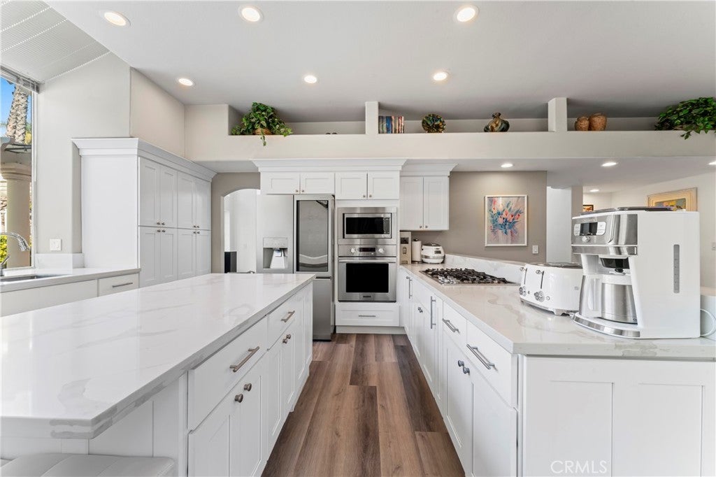 Great price for an great house. Now reduced by $100,000 from the original asking price! Come & See this beautiful home! Brand New Heater just installed.The property has been beautifully updated inside and out, starting with a new paper on the roof, whole-house PEX plumbing system, upgraded toilets, new door hardware, outlets, and much more. Downstairs highlights include SPC wood flooring throughout the main living areas and bedroom, custom shutters, new lighting, and upgraded fans. The kitchen was fully remodeled with $40k in high-end LG Signature appliances, new cabinetry, quartz countertops, and a redesigned bar with quartz. The downstairs bathroom, laundry room, and bedroom also received modern updates, plus both garage doors, mechanisms, and finishes have been replaced. Additional upgrades include a new water heater, water softener, and refreshed garage with painted floors and walls. Upstairs features new Stainmaster VINEART carpet, darkwood flooring in secondary bedrooms, fresh paint, custom window treatments, and upgraded lighting. The primary suite boasts custom curtains, upgraded shutters, a spa-like bath, quartz countertops with new stone/tile flooring, updated mirrors, lighting, faucets, shower head, and a Coway bidet toilet. Closets were enhanced with new finishes, carpet, and a chandelier. The backyard retreat is perfect for entertaining, with a lower deck gazebo with dual fans, and nine palm trees. The upper deck offers a resurfaced and rebuilt pool with new heater (heats in 1 hour vs. 8), spa, fountain, new lighting, and expanded lounging areas. This home combines style, function, and luxury with no detail overlooked! Per seller, over $140,000 in thoughtful upgrades make this home a rare find!