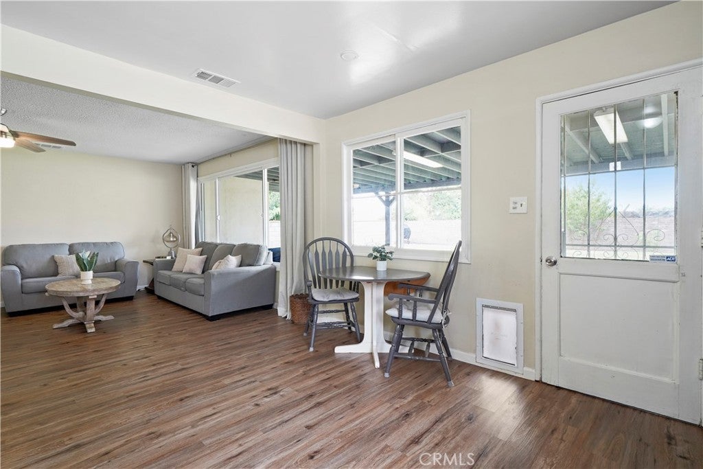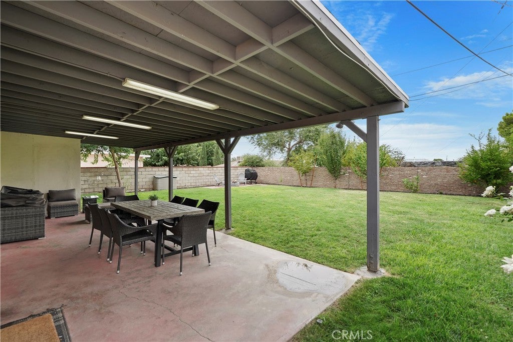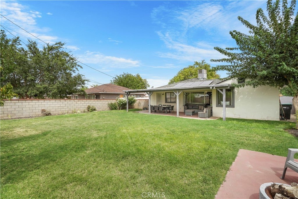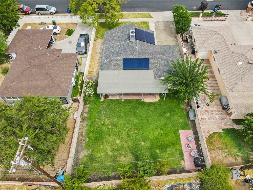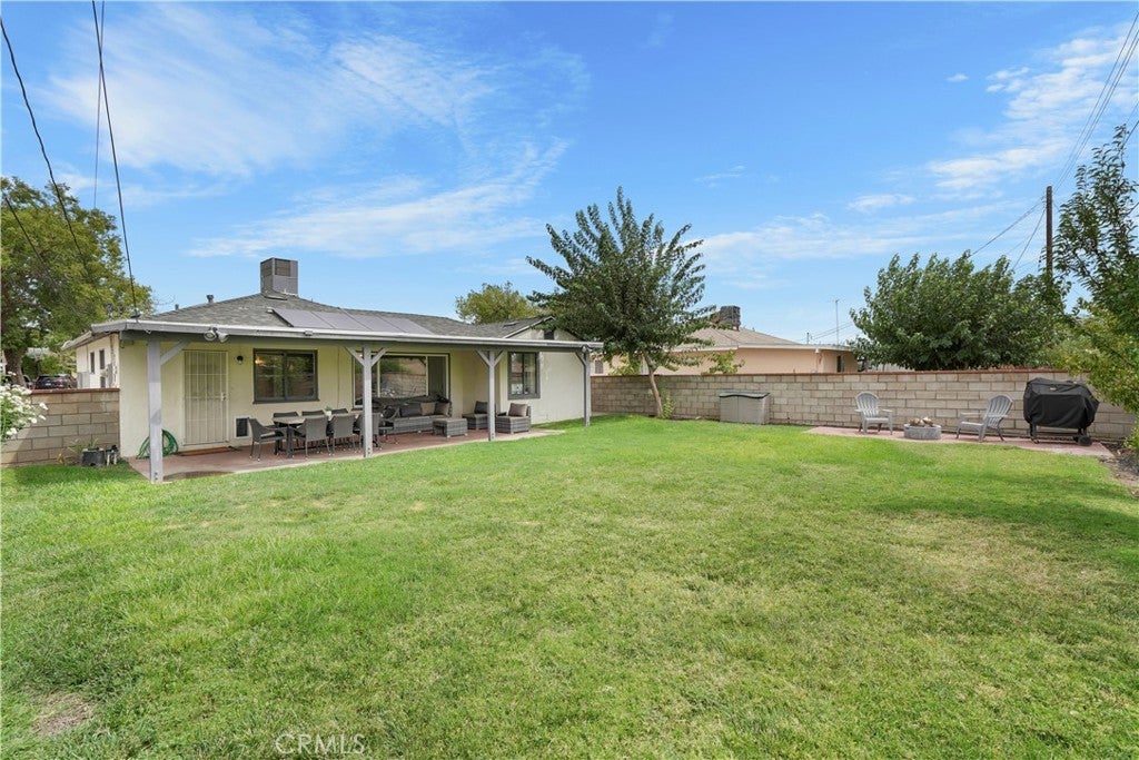 Welcome to this beautifully upgraded 3-bedroom, 1-bath home, featuring 1,184 sq ft of living space. Situated on a 5,921 sq ft lot with lush green lawns, this property offers a fantastic outdoor lifestyle with a covered patio perfect for entertaining. Inside, you'll find a remodeled bathroom with a new shower, toilet, and stylish vinyl plank flooring. The kitchen has been enhanced with upgraded appliances, and a stackable washer and dryer are included. Recent improvements include a new HVAC system, water heater, copper plumbing, and roof, ensuring peace of mind. The home also comes with an existing solar system, to be assumed by the buyer. This move-in-ready home combines modern comfort with timeless charm.