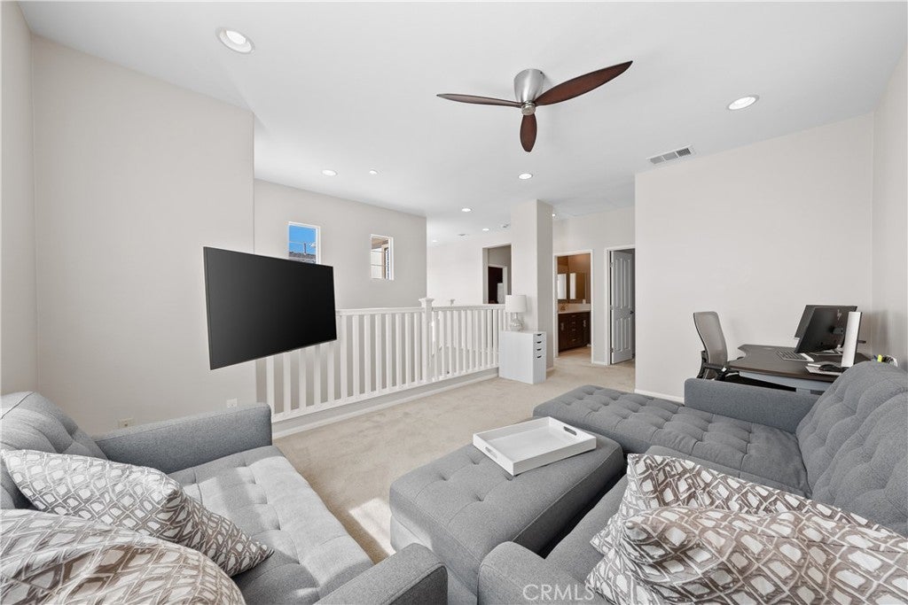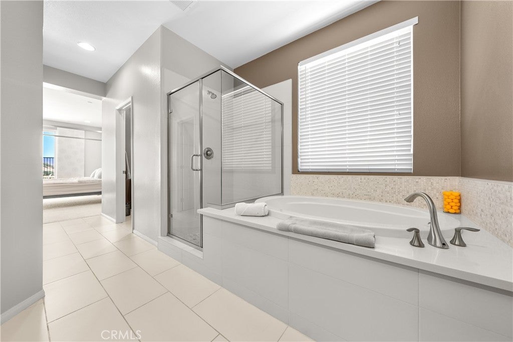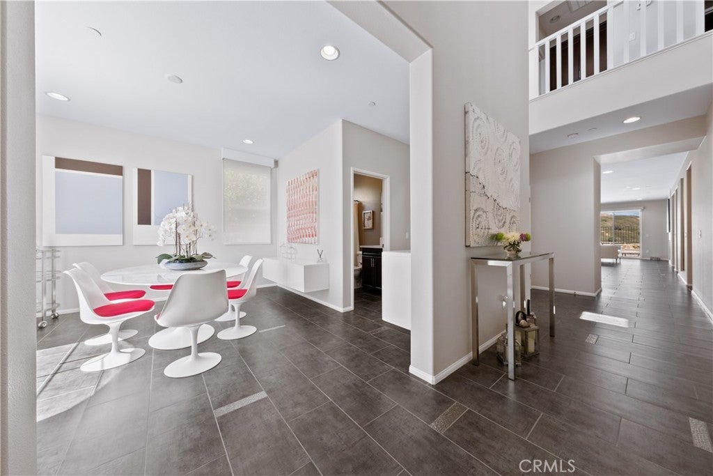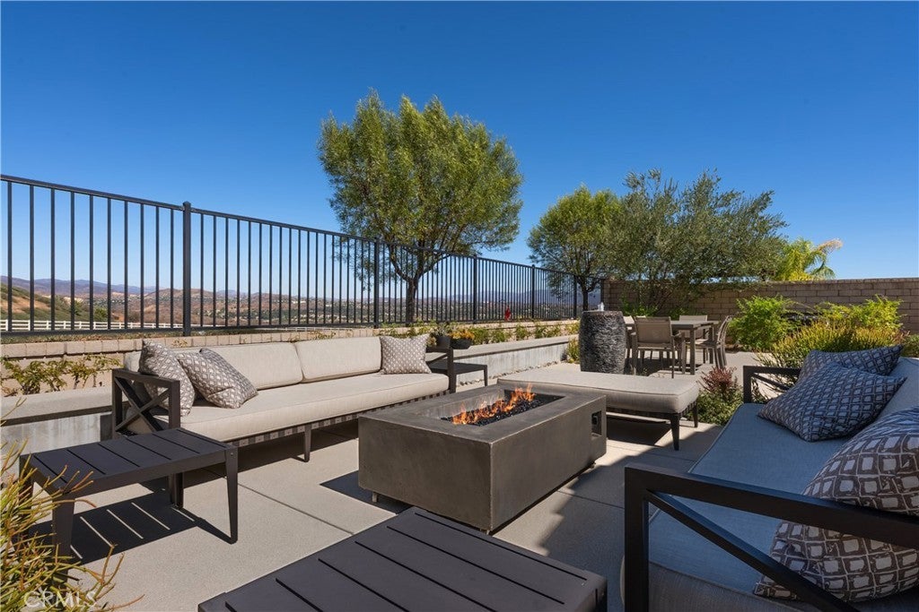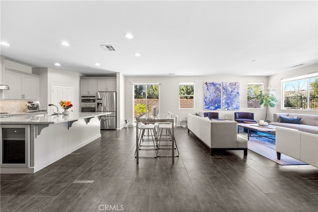 MAIN FLOOR PRIMARY SUITE, in Gated Valencia West Hills with, BREATHTAKING VIEWS. Welcome to your dream home: beautifully designed with sweeping valley and hillside views in one of Valencia’s most sought-after gated communities! This stunning property blends elegance, comfort, and functionality, with modern fininishes, tall doorways, and expansive windows offering plenty of natural light. The open-concept family room boasts a sleek modern fireplace with custom recessed wall features, and seamlessly flows into the living spaces on the main floor. The kitchen features a generous center island with seating, a built-in wine fridge, elegant granite countertops with mosaic tile backsplash, under-cabinet lighting, built-in range, double ovens, walk-in pantry, and stainless steel appliances. A formal dining room with custom European cabinetry provides the perfect setting for gatherings, with a full guest bath on the main level. The spacious main-floor primary suite is a true retreat, featuring an open layout, walk-in closet with custom built-ins, and direct backyard access where you can soak in the gorgeous views! The luxurious ensuite bathroom offers dual sinks, abundant counter space and storage, a soaking tub, separate shower, and a private water closet. Upstairs, a well appointed loft offers flexible living space, with two additional bedrooms featuring walk-in closets plus access to a full bath with dual vanities and a tub/shower combo. The backyard is a luxe low-maintenance entertainer’s paradise, thoughtfully landscaped with hardscape accents, a built-in fire pit, and plenty of space to relax or host, all framed by incredible panoramic views! Convenient indoor laundry room + 2 car garage. The Valencia West Hills HOA offers resort-style amenities including 3 pools, spas, sports court, playground, clubhouse, miles of walking paths, and gated access. All this, just minutes from top-rated schools, shopping, dining, and freeway access—while still enjoying the privacy of a gated community.