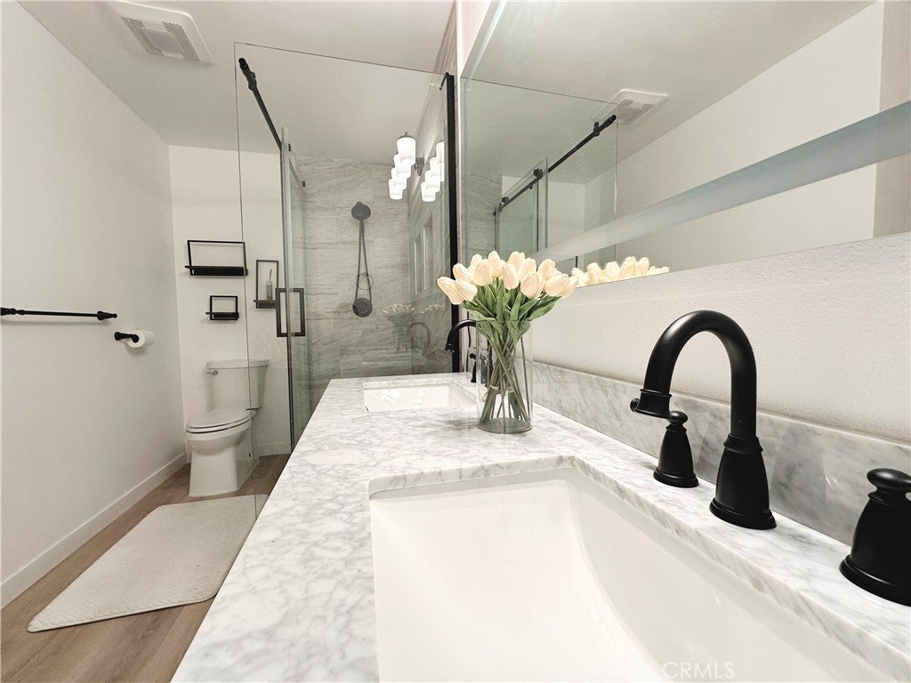 Welcome to Calabasas Living – Updated, Bright, and Ready to Move In! Nestled in one of Southern California’s most sought-after communities, this beautifully refreshed 3-bedroom, 2-bath home offers the perfect blend of modern comfort and classic Calabasas charm. Just moments from the lake and tucked into a peaceful, well-maintained complex, this second-floor unit is a hidden gem waiting for its next chapter. Step inside to discover a light-filled space that’s been thoughtfully updated from top to bottom (January 2025). The kitchen features gorgeous quartz countertops, contemporary cabinetry, and a full suite of new appliances, including an electric oven, fridge, dishwasher, and microwave. Central A/C throughout. The open living area flows seamlessly to a private balcony, perfect for your morning coffee or evening unwind. Throughout the home, you’ll find fresh finishes, soundproofing underlayment for quiet enjoyment, and a modern design that feels both stylish and inviting. Every bedroom features updated lighting and a crisp, clean feel. Both bathrooms are tastefully upgraded, one with a soaking tub, the other with a sleek glass-enclosed walk-in shower and double-sink vanity in the primary suite. Enjoy in-unit laundry with your own washer and dryer, and new doors throughout. The unit also comes with two assigned carport spaces just behind the unit. Enjoy peace of mind that comes with a 24/7 Security Guard patrolling the complex and security cameras throughout. Community amenities include a sparkling pool, a relaxing Jacuzzi, a fitness center, and indoor/outdoor common areas. Private lake access is also available, and all utilities, including water, trash, and sewer, are included in your HOA fees. Located in the award-winning Las Virgenes Unified School District, this home is ideal for anyone seeking a great location, a strong community, and a turnkey living space. With Calabasas Lake, Calabasas Tennis & Swim Center, and the Calabasas Commons just minutes away, this is your chance to experience SoCal living at its finest.