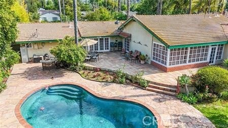 Entertainers delight one story house with pool and huge circle drive way. Offers 3 large bedrooms and 3.5 Bathrooms. Master suite with Jacuzzi tub and lots of closets. Open floor plan with huge living-dining room combo, French doors and windows. Custom Wet Bar has marble floors. Big kitchen with Break fast area and family room overlooking a resort like back yard with sparkling pool, manicured lawns and inviting patio. This beautiful home is located on the Tarzana/Woodland hills boarder, quite neighborhood, close to Ventura, walk to shops and restaurants. Great curb appeal with circular drive way. must see to appreciate. The property can be rented furnished or unfurnished, short or long terms.