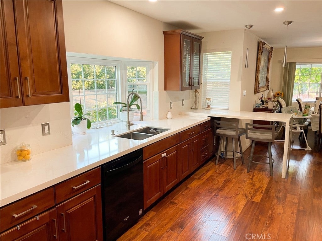 North Hills West!! Location location,MOVE-IN READY, UPGRADED 3+2 HOUSE , large 8399 sq ft lot, huge sparkling pool, central A/C, upgraded bathrooms from top to bottom, elegant wood vanities w/quartz counter tops & double sinks, 3/4 " glass shower doors, rainfall cascade 10" high pressure rainfall shower heads, wall mount shower faucet with handheld spray.THIS IS NOT A FLIPPED. Expanded large remodeled kitchen with beautiful quartz counter tops,new kitchen wood cabinets with soft close hardware,custom made bay window, Kraus double sink,new modern faucet,breakfast bar with quartz top, stainless steel wall-mounted range hood, A/C with Nest thermostat ensures comfortable temperatures year-round. The home features a giant sparkling in-ground pool with child proof fence, Outdoors gas BBQ island w seating for 10 people.Cover patio, new hardwood floors(not laminated), recessed lights,smooth ceilings.Rheem natural gas thankless water heater. Secured access with sliding gate opener system with remote control. New roof, new cooper pipes, 2 washer & dryer hook ups, in the garage and kitchen. The property also features mature fruits bearing trees, including tangerines,plums,orange & papayas.Electric sliding gate with parking space up to 7 cars. This home offer style and functionality, with the potential to expand your living space ,ready to build the attached garage into an ADU. Make this home your own and enjoy the perfect blend of comfort, convenience, and luxury in a quiet area of North Hills West. This home is ideally situated near schools, shopping, parks, dining and easy access to many freeways. Do not wait!!