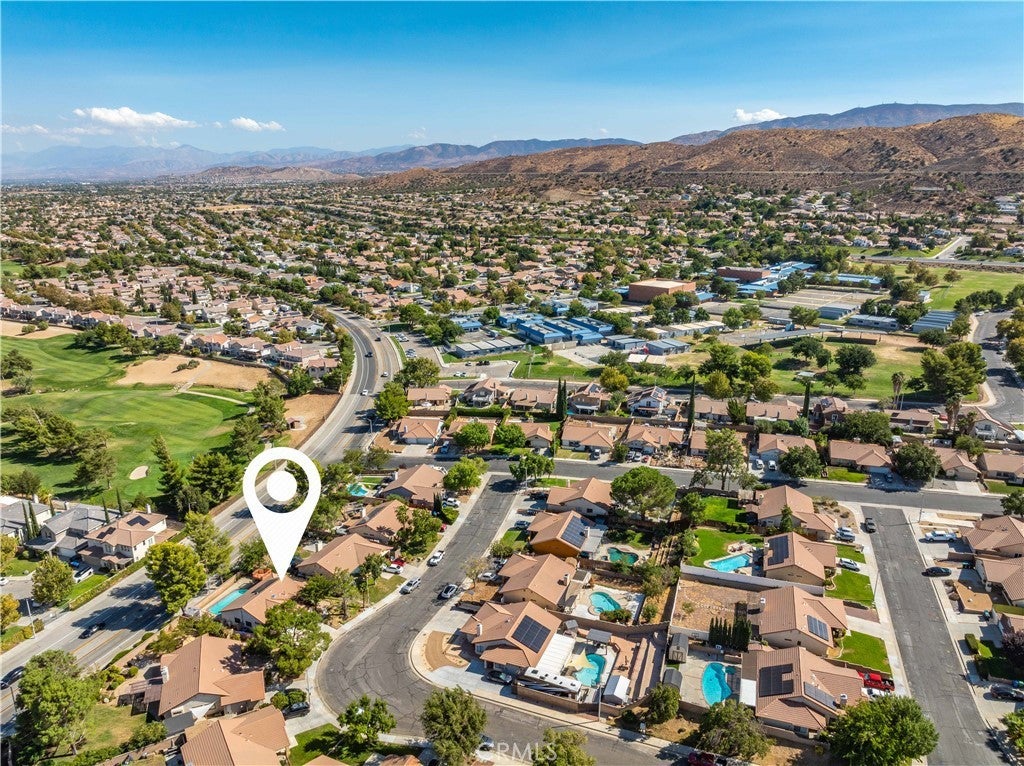 Ranch Vista pool & spa home with solar! Fantastic location near Rancho Vista Golf Course, desirable schools and new park. 3 car garage. Fireplace in the living room. Primary bedroom features two closets and a sliding glass door leading to the backyard. New interior paint throughout with new carpet in the bedrooms. Spacious kitchen with newer stove. Ceiling fans throughout. Bedrooms have mirrored closet doors. The backyard is complete with an inground pool & spa, shed, block walls, covered patio with observation deck on top!
