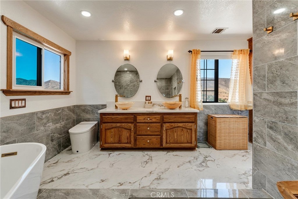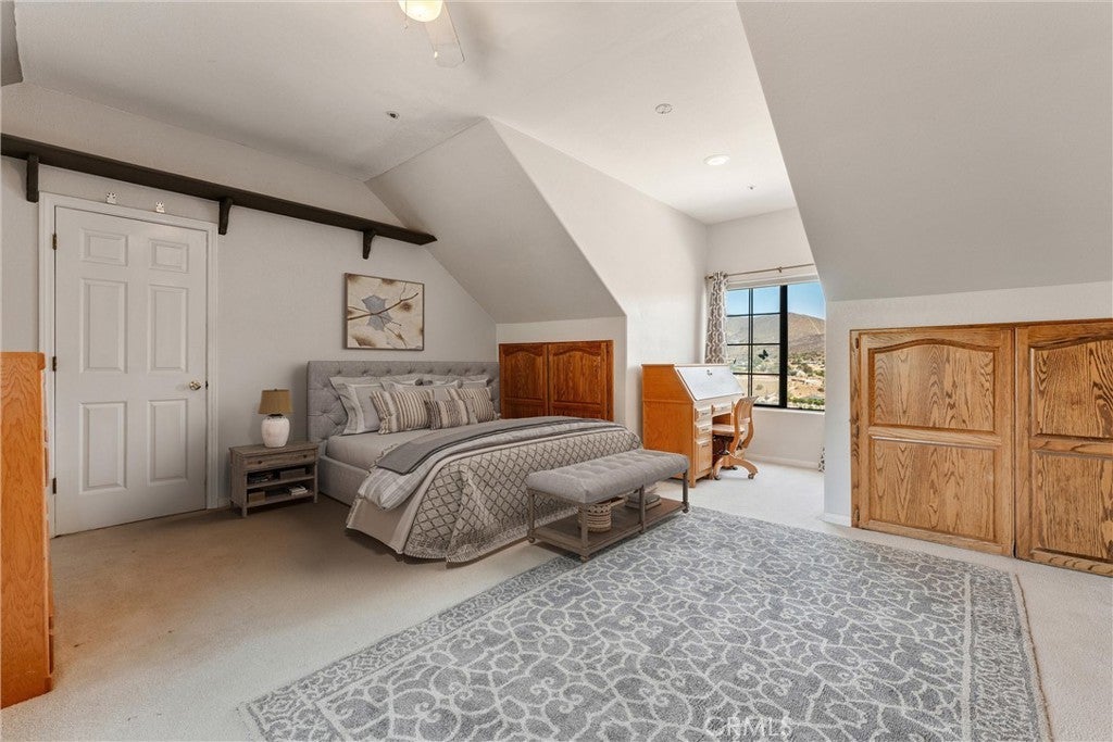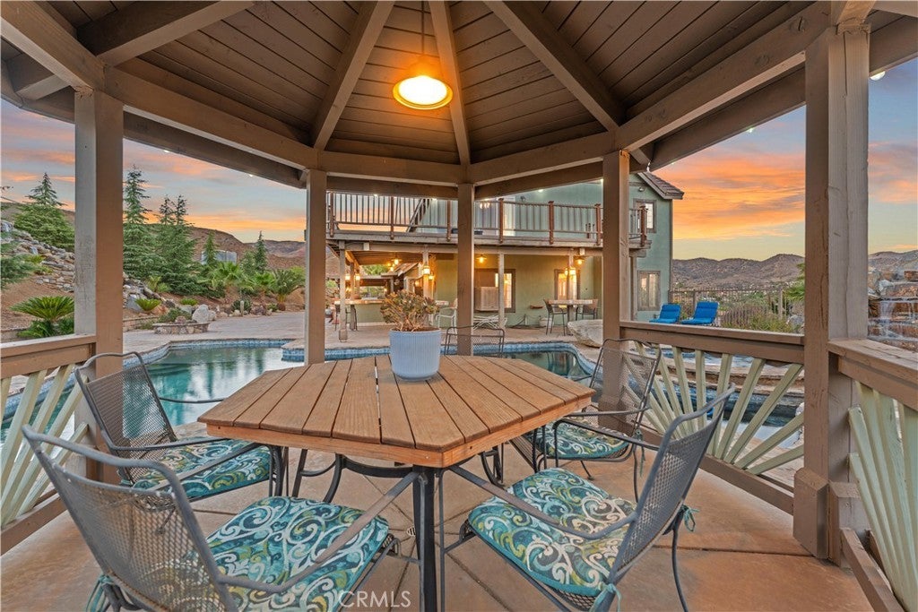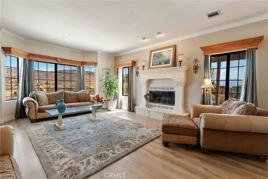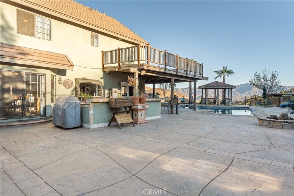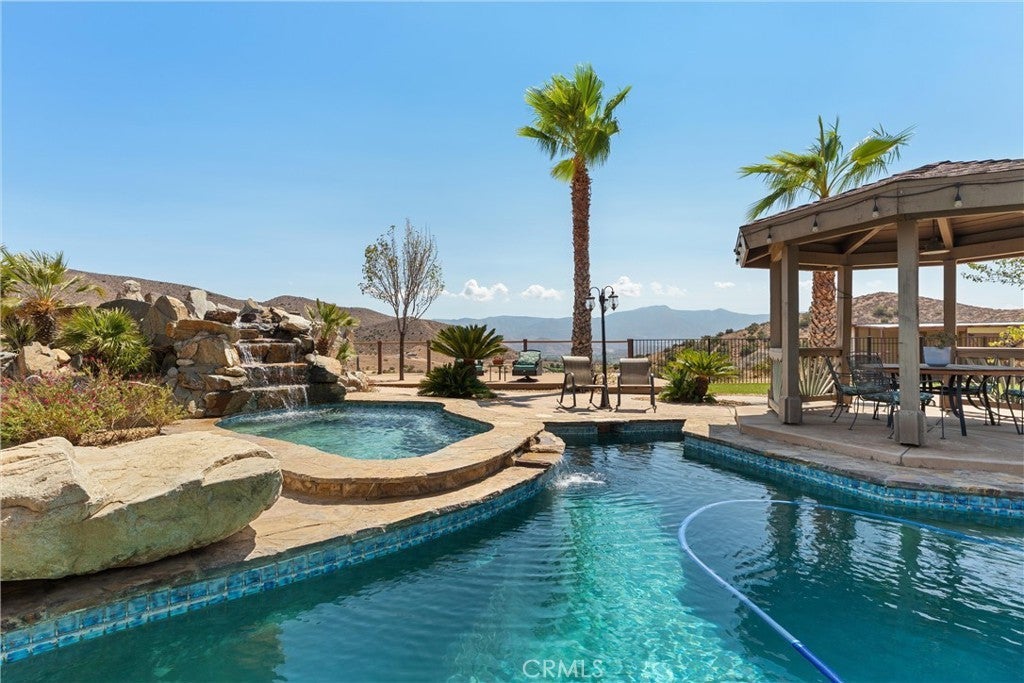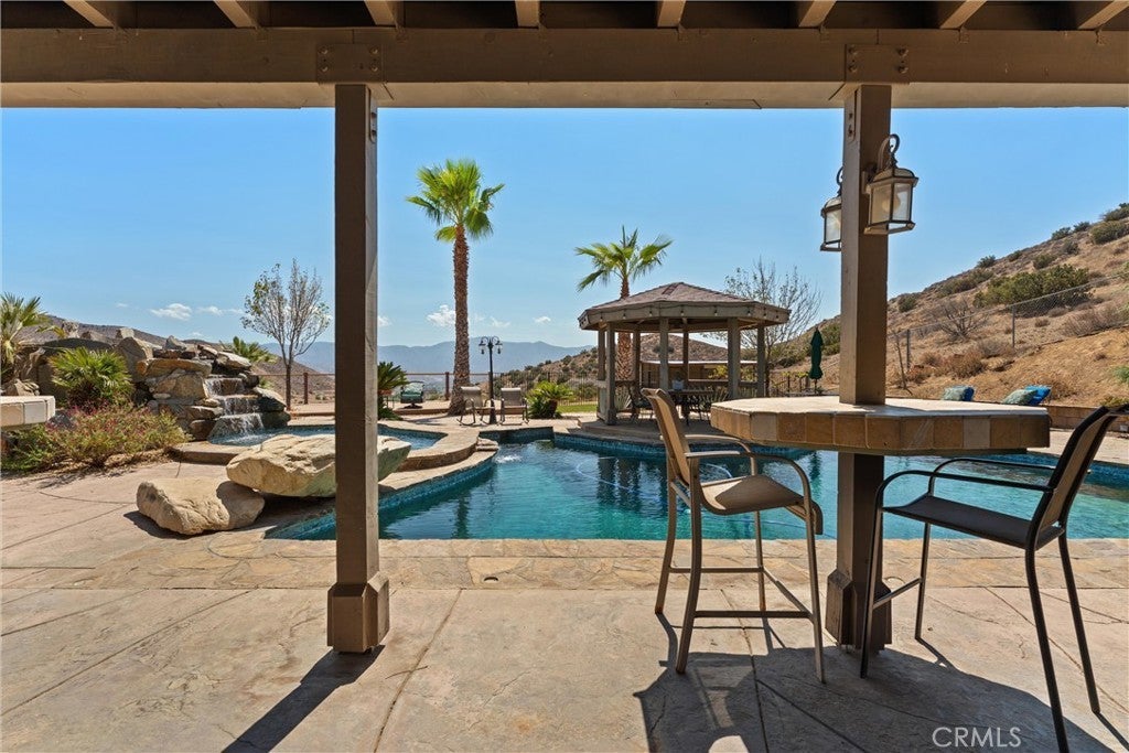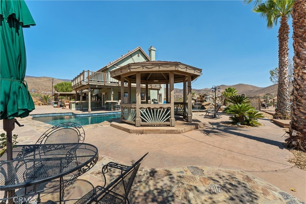 Over 5 acres of private grounds with 365 degree sweeping views of the golden California foothills. Safe and secluded, this elegant property can be your forever home, a private party location, or your equestrian estate. Located in upscale Acton, the elevated hillside terrain affords panoramic views with soft morning sunrises and stunning red sunsets. The 3194 s/f home features large picture widows and, during the day, sunbathed light in every room. With no streetlights nearby, you'll see the night sky filled with millions of stars and hear nothing but the peaceful quiet. Enjoy these breathtaking views with morning coffee or afternoon cocktails on the (12x60) deck overlooking Acton, or on the second-story wrap-around balcony! The professionally landscaped yard includes lush desert scape, mature pine trees, massive boulders, and a rock waterfall built into the hillside. These encircle a huge, finished outdoor area with heated pool, spa (seats 14 comfortable), custom built-in barbecue, and six built-in high-top tables for that elegant wedding reception, family reunion, or holiday event. The outdoor sound system and cozy fire pit will bring a warm ambience to the chilly evenings. The elegant cobblestone driveway welcomes you to the home's expansive front door and cozy wood beam and brick façade. Inside are formal and family living areas, five spacious bedrooms, four baths (large bed and full bath downstairs for guests), each of which include windows or doors that open to the magnificent views and office leads to the stunning wrap-around balcony. The newly renovated master ensuite boasts a gorgeous stand alone tub, walk in shower with floor to ceiling marbled tile. Need more space? There is a huge walk-in attic (29Lx15W) A 30x60 workshop with bathroom inside; also a 200 amp panel with 50/30 amp RV hook ups. Have horses? There's room for them too! 8x24 chicken coop and 20xx24 chicken run. Tesla solar system and back up battery. Private well 6k gal. tank and MUCH MORE!