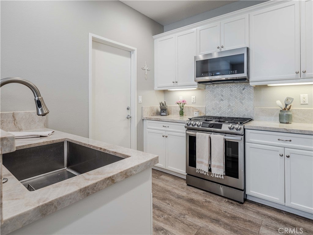 PRICE JUST REDUCED!! STUNNING REMODELED TOWNHOME with PRIVATE BACKYARD in the Heart of the Santa Clarita Valley! Welcome to this beautifully updated townhome offering 1,440 sq ft of bright spacious living in the desirable family-friendly Mariposa neighborhood! Thoughtfully designed with comfort and modern living in mind, this home features an open-concept layout with a stylish kitchen equipped with stainless steel appliances, flowing into a cozy dining area. The family room opens directly to your backyard, with no rear neighbors, making it perfect for your morning coffee, entertaining guests, or enjoying a little gardening retreat. Upstairs, you’ll find two generously sized bedrooms, including a luxurious master suite with a full private dual vanity bathroom and a spacious walk in closet. The second bedroom also offers ample space, great natural light, and its own en-suite full bathroom ideal for guests or family members. Additional highlights include: New water heater, attached one-car garage + assigned additional parking space, private in-unit laundry room and trash is covered by HOA. This community offers resort-style amenities such as a sparkling pool, relaxing spa, stylish clubhouse, playground, dog park, and beautifully maintained landscaping. Conveniently located near shopping, dining, parks, and excellent schools! This turn-key townhome is ready to welcome you home!