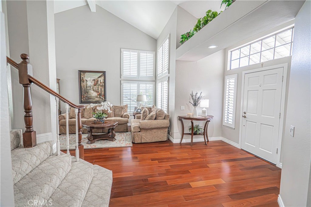 Welcome to this beautifully updated home featuring 3 bedrooms and 2.5 bathrooms along with an office, perfect for comfortable living. The spacious interior boasts high ceilings upon entry, creating an inviting and airy atmosphere. The entire downstairs showcases stunning hardwood flooring, complemented by elegant shutters throughout for added privacy and style. The chef's kitchen has been thoughtfully updated with gleaming granite countertops, a modern sink and faucet, stylish cabinets, and hardware — making meal prep and entertaining a delight. The home’s fireplace mantle has been tastefully upgraded with beautiful tile work, adding a touch of sophistication to the living space. All bathrooms have recently been updated, including reglazed bathtubs and modern vanities that enhance functionality and aesthetic appeal. Step outside to the private backyard, featuring a patio cover ideal for outdoor gatherings, while the front yard boasts new pavers and a charming staircase leading up to the front door from the street — perfect for curb appeal and easy access.This lovely home combines contemporary updates with classic charm, offering both comfort and style in a desirable location.