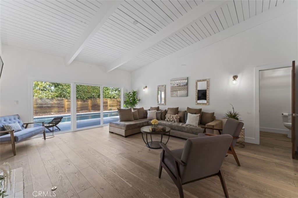 Welcome to 23761 Ladrillo, a serene Charles Du Bois architectural gem located in one of the most unique and sought-after neighborhoods in Woodland Hills***Nestled at the end of a private cul-de-sac, this remodeled single-story home offers 4 bedrooms, 3 bathrooms, and a perfect balance of privacy and community***Designed with modern living in mind, the open layout features clean lines, a neutral palette and seamless indoor-outdoor flow***A sparkling pool and spacious entertaining areas make it ideal for gatherings or peaceful evenings at home***The property sits on almost 15,000 square feet, offering endless opportunities to expand and make it your own***With its welcoming neighborhood, and abundant space to grow, 23761 Ladrillo is more than a home… it’s a lifestyle***