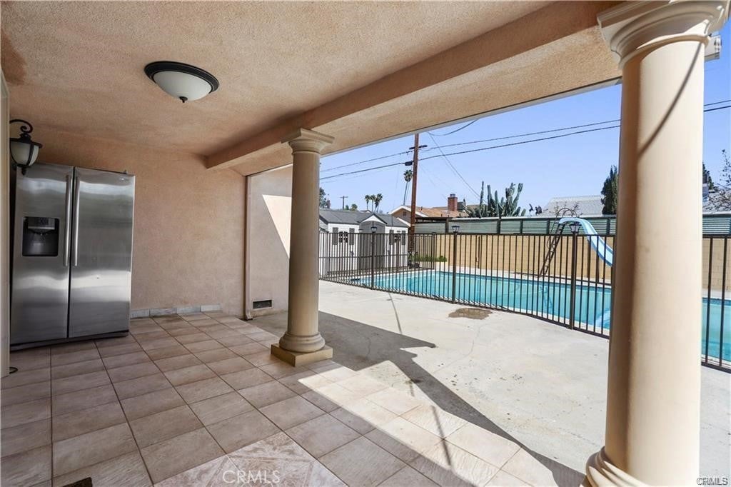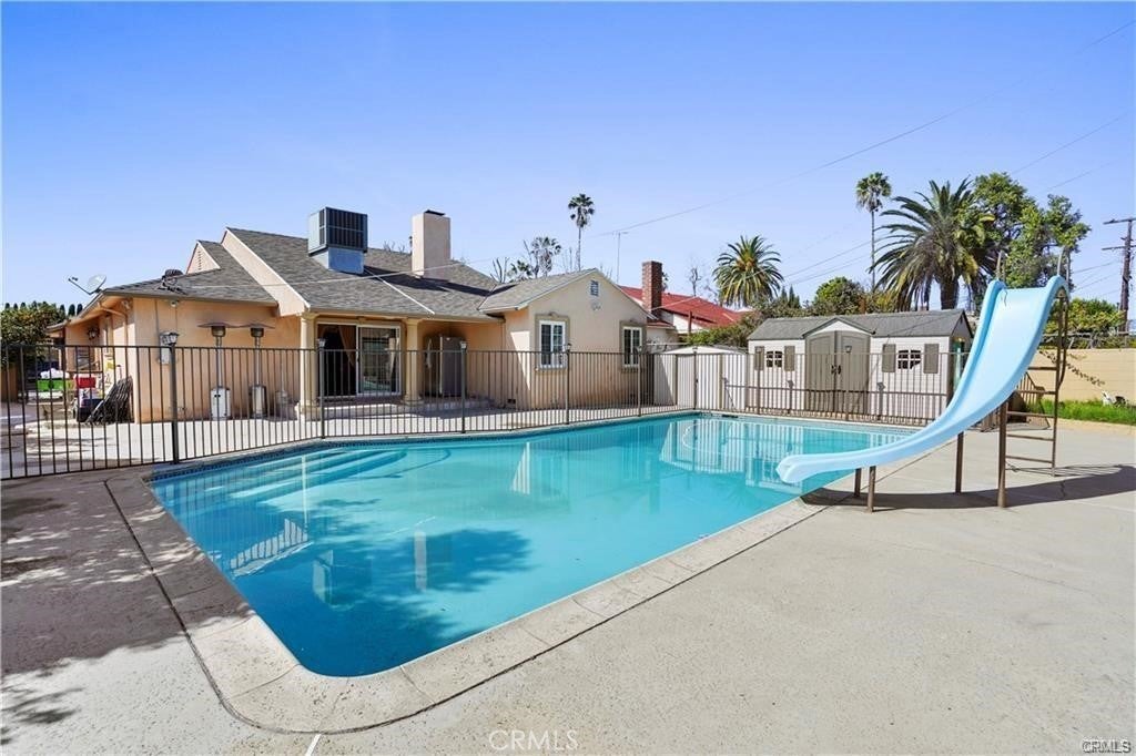 Located in a highly desirable North Hollywood neighborhood, this beautifully updated pool home has so much to offer. Features include 4 bedrooms, 3 bathrooms, a cozy living room with a fireplace that opens to the dining area, and a remodeled chef's kitchen with quartz countertops and stainless steel appliances. Enjoy updated bathrooms, wood flooring throughout, crown molding, and recessed lighting. Step outside to the entertainer’s backyard with a covered patio and a sparkling pool. The property is gated and features a circular driveway for added convenience and curb appeal. The garage has been converted into a guest unit, with potential for an ADU conversion to generate additional income (Buyer to verify).