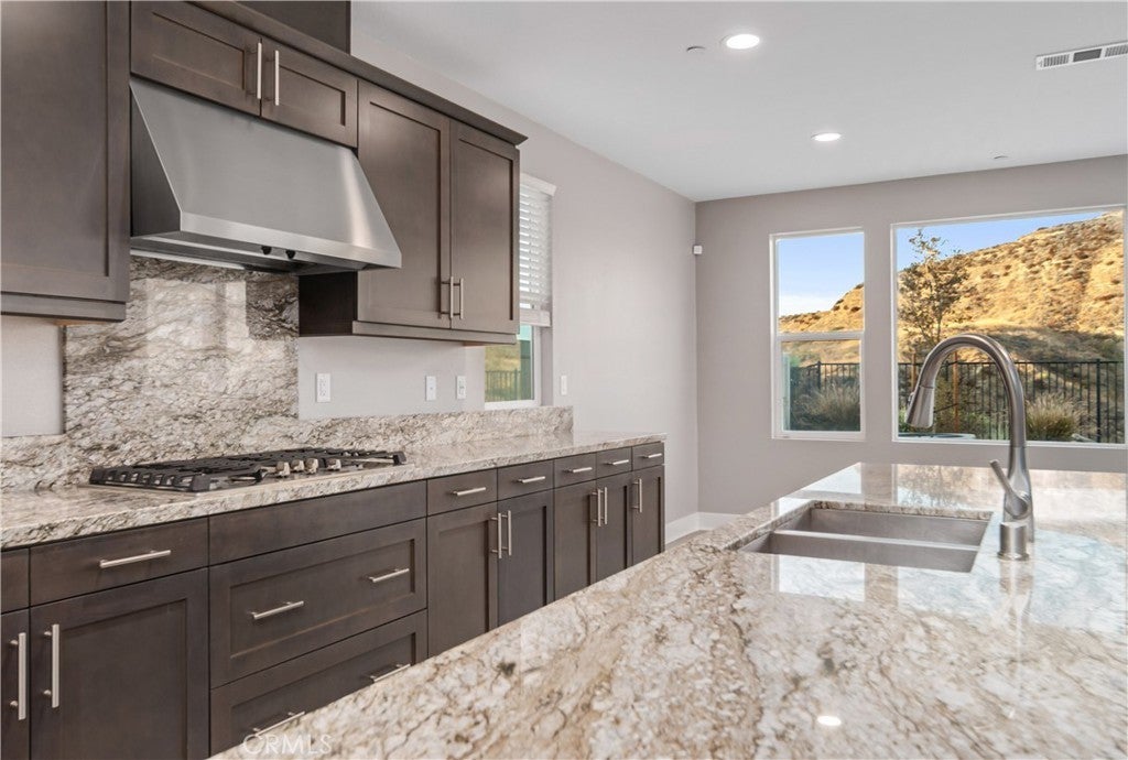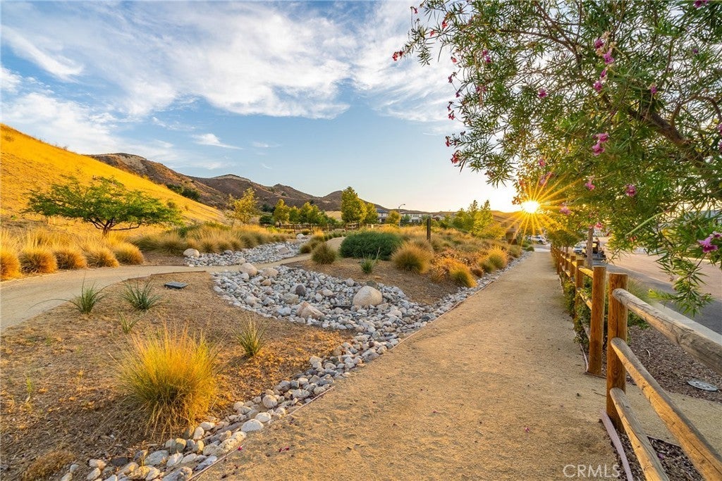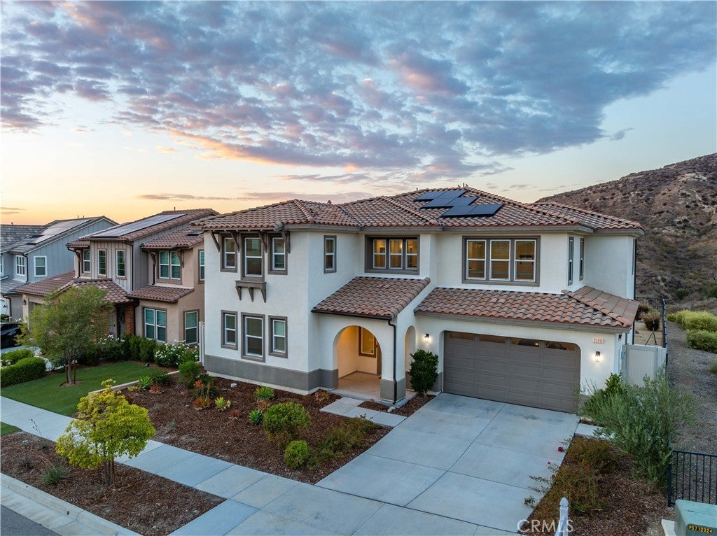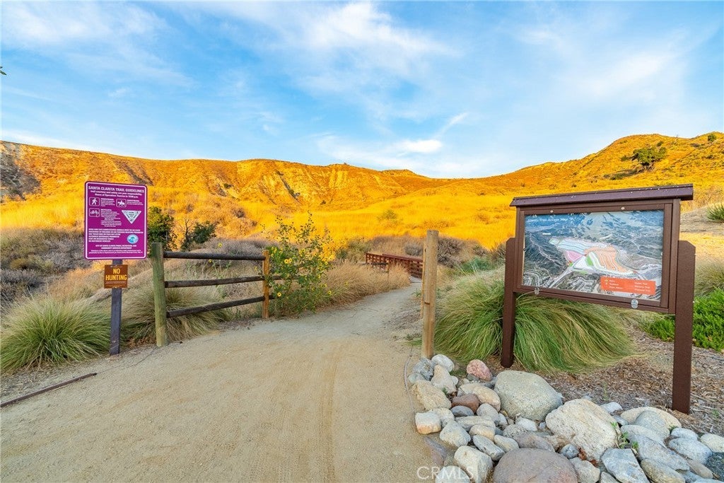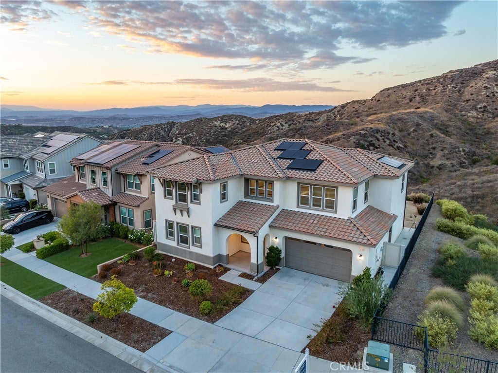 Motivated seller, make an offer. Don't Miss Out! Exceptional corner residence in the prestigious, gated Aliento community of Canyon Country. This spacious executive home boasts nearly 3,500 sq ft of living space with 4 bedrooms, 3.5 bathrooms, a dedicated office, formal dining room, and a versatile upstairs loft - perfect for living and entertaining. This home sits on the best lot in Aliento. Nestled against a majestic canyon with expansive views of the Santa Clarita Valley, it is truly a nature lover’s dream. Located near the Golden Valley Open Space, serenity surrounds you with only the sounds of nature. Deer and wildlife are often seen right from your windows, a property you must see to believe. Step inside the grand entryway, where soaring ceilings open to the second floor, and your eyes are drawn to the stunning mountain view showcased through a 15-ft stacking sliding glass door. This seamless indoor-outdoor connection expands the great room to the backyard, highlighting your breathtaking setting. With only one neighboring home, privacy is unmatched. The open floor plan is filled with natural light, featuring upgraded plank flooring downstairs and plush carpet upstairs. The chef’s kitchen offers a GE Café stainless steel appliance package with double ovens, granite countertops, custom roll-out cabinetry, under-cabinet lighting, and a walk-in pantry. An upgraded open-tread staircase leads to the loft and wrap-around hallway. The luxurious primary suite showcases oversized windows to celebrate its premier location. The spa-like bath includes a marble-tiled shower with seat, soaking tub with marble deck surround, and a deep walk-in closet. Additional highlights: a downstairs office/bedroom with half bath, upstairs laundry with cabinetry, and a Jack-and-Jill bath with dual sinks. Modern upgrades include Cat 6 wiring, flat-screen pre-plumbed in the great room and loft, LED recessed lighting, ceiling fans, ample storage, and owned solar grandfathered into NEM2.0 for incredible long-term savings. The 3-car tandem garage provides a sub-panel, 220V outlet for EV charging, plus an upgraded 8-ft rear garage door for backyard access. The zeroscaped yard blends into panoramic canyon views for a low-maintenance outdoor lifestyle. As an Aliento resident, enjoy resort-style amenities: clubhouse, fitness center, pool, spa, parks, trails, and dog parks — all just steps from home. Truly one of the best lots and most upgraded homes in Aliento!