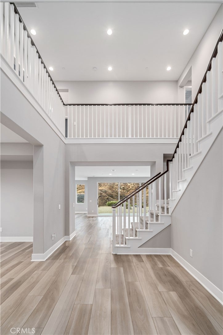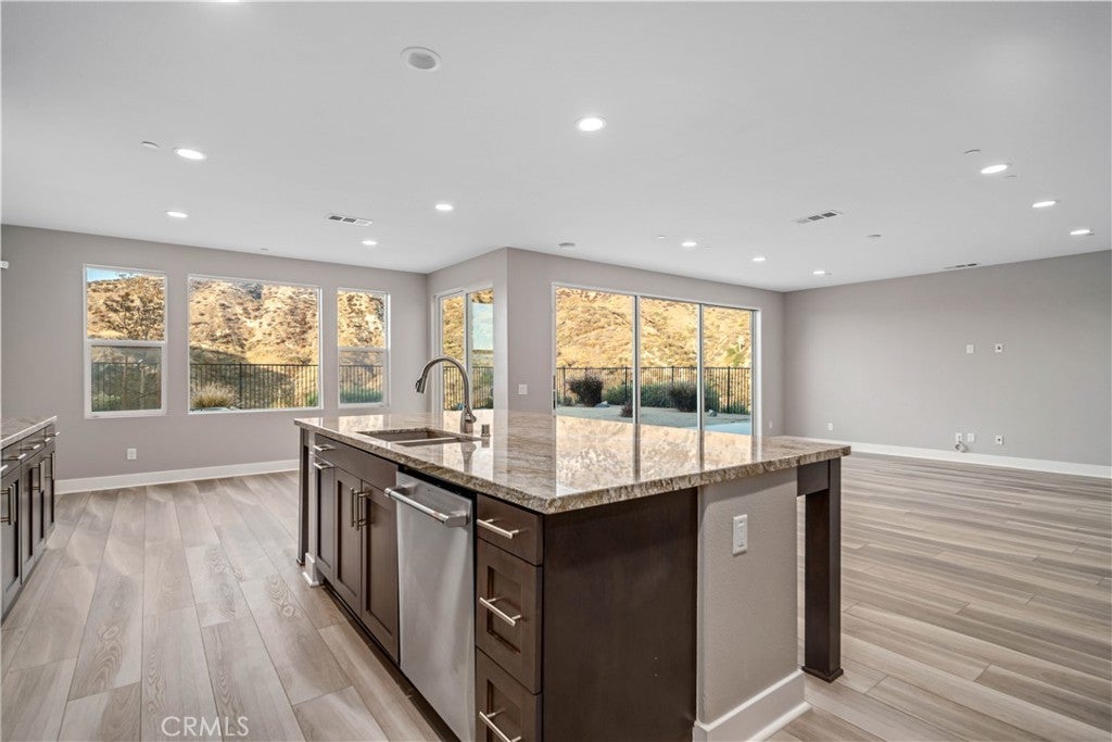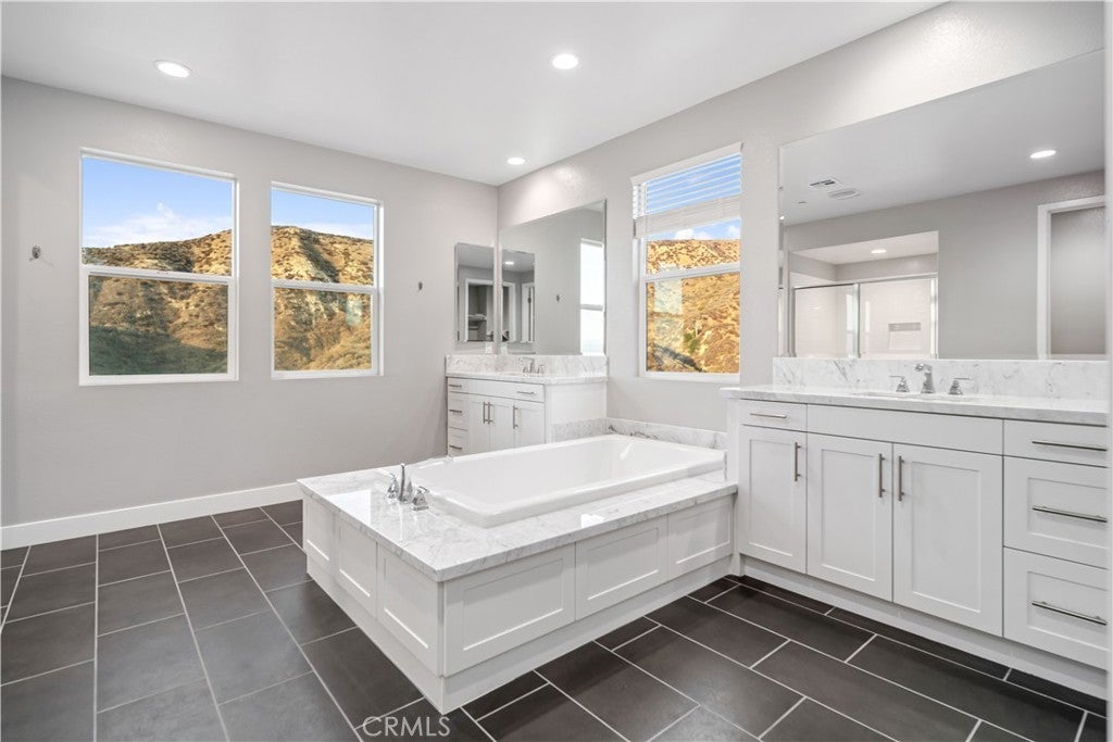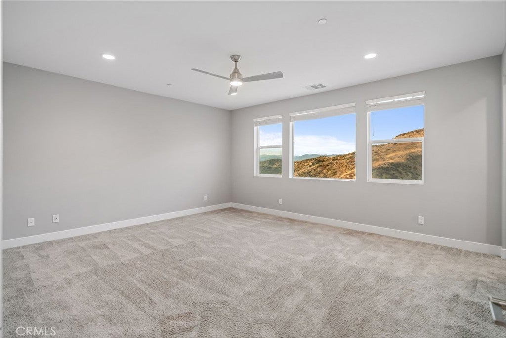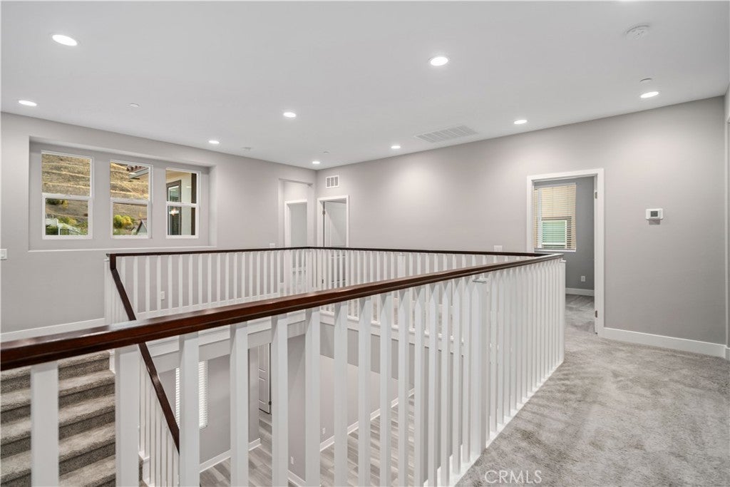 Motivated seller, make an offer. Don't Miss Out! Exceptional corner residence in the prestigious, gated Aliento community of Canyon Country. This spacious executive home boasts nearly 3,500 sq ft of living space with 4 bedrooms, 3.5 bathrooms, a dedicated office, formal dining room, and a versatile upstairs loft - perfect for living and entertaining. This home sits on the best lot in Aliento. Nestled against a majestic canyon with expansive views of the Santa Clarita Valley, it is truly a nature lover’s dream. Located near the Golden Valley Open Space, serenity surrounds you with only the sounds of nature. Deer and wildlife are often seen right from your windows, a property you must see to believe. Step inside the grand entryway, where soaring ceilings open to the second floor, and your eyes are drawn to the stunning mountain view showcased through a 15-ft stacking sliding glass door. This seamless indoor-outdoor connection expands the great room to the backyard, highlighting your breathtaking setting. With only one neighboring home, privacy is unmatched. The open floor plan is filled with natural light, featuring upgraded plank flooring downstairs and plush carpet upstairs. The chef’s kitchen offers a GE Café stainless steel appliance package with double ovens, granite countertops, custom roll-out cabinetry, under-cabinet lighting, and a walk-in pantry. An upgraded open-tread staircase leads to the loft and wrap-around hallway. The luxurious primary suite showcases oversized windows to celebrate its premier location. The spa-like bath includes a marble-tiled shower with seat, soaking tub with marble deck surround, and a deep walk-in closet. Additional highlights: a downstairs office/bedroom with half bath, upstairs laundry with cabinetry, and a Jack-and-Jill bath with dual sinks. Modern upgrades include Cat 6 wiring, flat-screen pre-plumbed in the great room and loft, LED recessed lighting, ceiling fans, ample storage, and owned solar grandfathered into NEM2.0 for incredible long-term savings. The 3-car tandem garage provides a sub-panel, 220V outlet for EV charging, plus an upgraded 8-ft rear garage door for backyard access. The zeroscaped yard blends into panoramic canyon views for a low-maintenance outdoor lifestyle. As an Aliento resident, enjoy resort-style amenities: clubhouse, fitness center, pool, spa, parks, trails, and dog parks — all just steps from home. Truly one of the best lots and most upgraded homes in Aliento!
