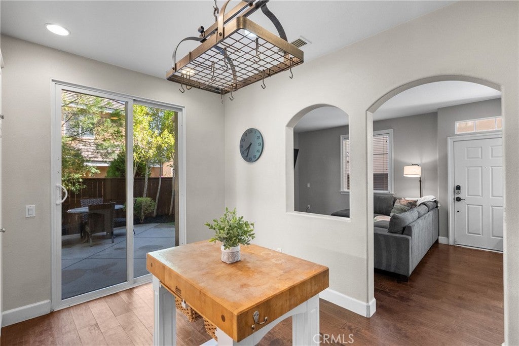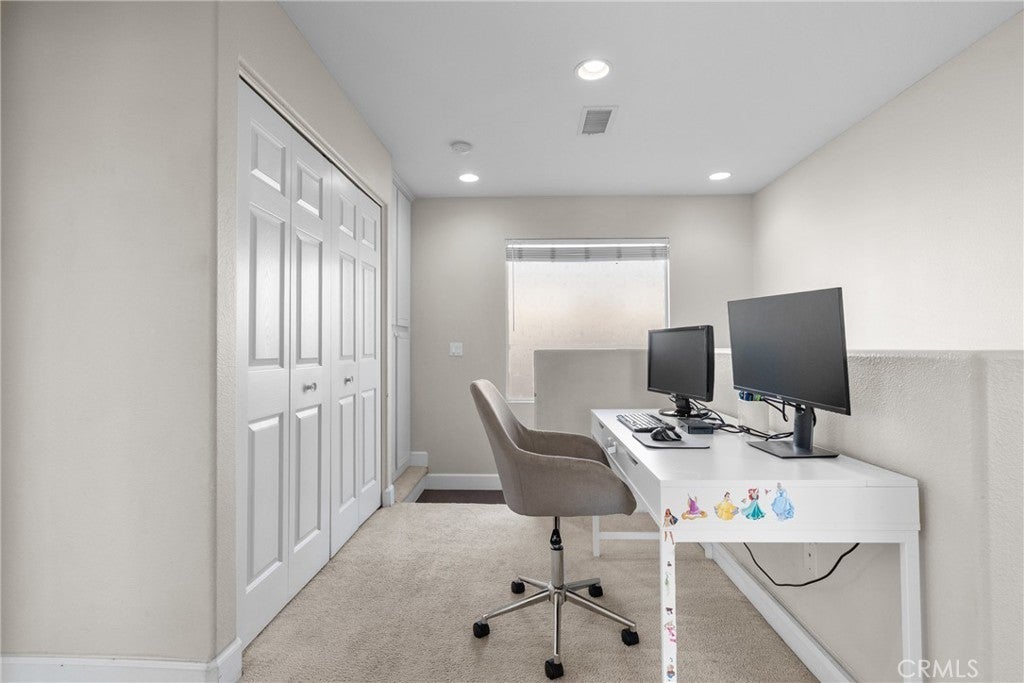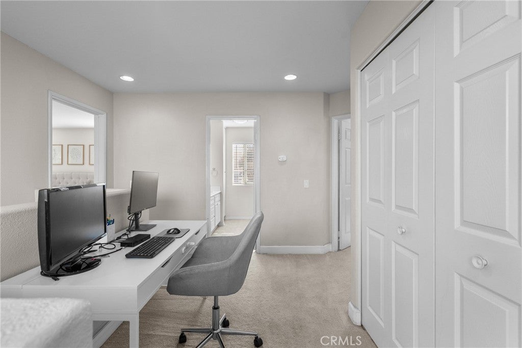 MOTIVATED SELLERS!! Well-maintained owner-occupied home, EASY TO SHOW, PLEASE GIVE ME (ERIC OLES-OWNER AND LISTING AGENT) 15 MINS NOTICE BEFORE SHOWING. Welcome to Valencia Montevista, tucked in a quiet mini-cul-de-sac with low HOA fees and no Mello-Roos. This home features the most extensive floor plan in the community, offering 3 bedrooms, 2.5 bathrooms, an attached two-car garage with a full driveway, and a private patio for outdoor enjoyment. The main level includes wood flooring, a mosaic-tiled fireplace with a custom mantle, and upgraded door casings. The kitchen offers white cabinetry, granite countertops, and an efficient layout ideal for daily living and entertaining. Upstairs features three spacious bedrooms, a convenient laundry area, and an office niche perfect for remote work or study. The primary suite includes a walk-in closet, soaking tub, separate glass-enclosed shower, and dual sinks. Additional highlights include a washer and dryer, ample garage storage, and thoughtful updates throughout. Move-in ready and located close to Valencia High School, Rio Norte Junior High, shopping, dining, and top community amenities. A cooperative seller, excellent value, and a highly desirable neighborhood make this home an outstanding opportunity. Schedule your showing today.