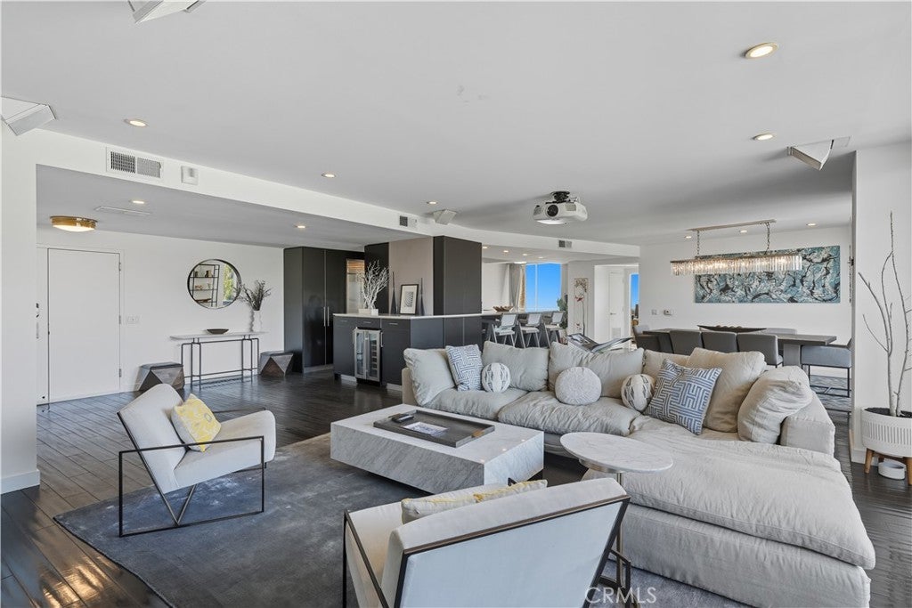 Experience penthouse living at its finest in the prestigious Franklin Towers. This rare offering features sweeping, unobstructed views that span from Century City and the Hollywood Hills to the Pacific Ocean, all framed through two expansive balconies with dramatic floor-to-ceiling glass panels. A double-door formal entry welcomes you into a light-filled open floor plan designed for both grand entertaining and everyday elegance. The living and dining areas feature integrated surround sound, a ceiling-mounted projector with retractable screen, and seamless indoor-outdoor flow; perfect for hosting in true Hollywood style. Featured in HBO’s Entourage, this residence embodies cinematic glamour. The chef’s kitchen is a statement in modern design, outfitted with sleek custom cabinetry and premium built-in appliances. Two luxurious ensuite bedrooms, each with private balcony access and panoramic views, and spa-inspired bathrooms and generous size walk-in closets. Additional highlights include a powder room, in-unit laundry, hardwood flooring throughout, and 3 assigned parking spaces. Franklin Towers is a Hollywood landmark, offers white-glove amenities including 24/7 concierge and onsite valet service, heated lap pool and spa, steam room, sauna, rooftop fitness center, clubhouse, dog run, and an expansive rooftop deck showcasing 360-degree views from cityscape to ocean. Perfectly positioned near the iconic Sunset Strip, Hollywood Bowl, Walk of Fame, and Runyon Canyon trails, this penthouse embodies the ultimate blend of luxury, lifestyle, and location.